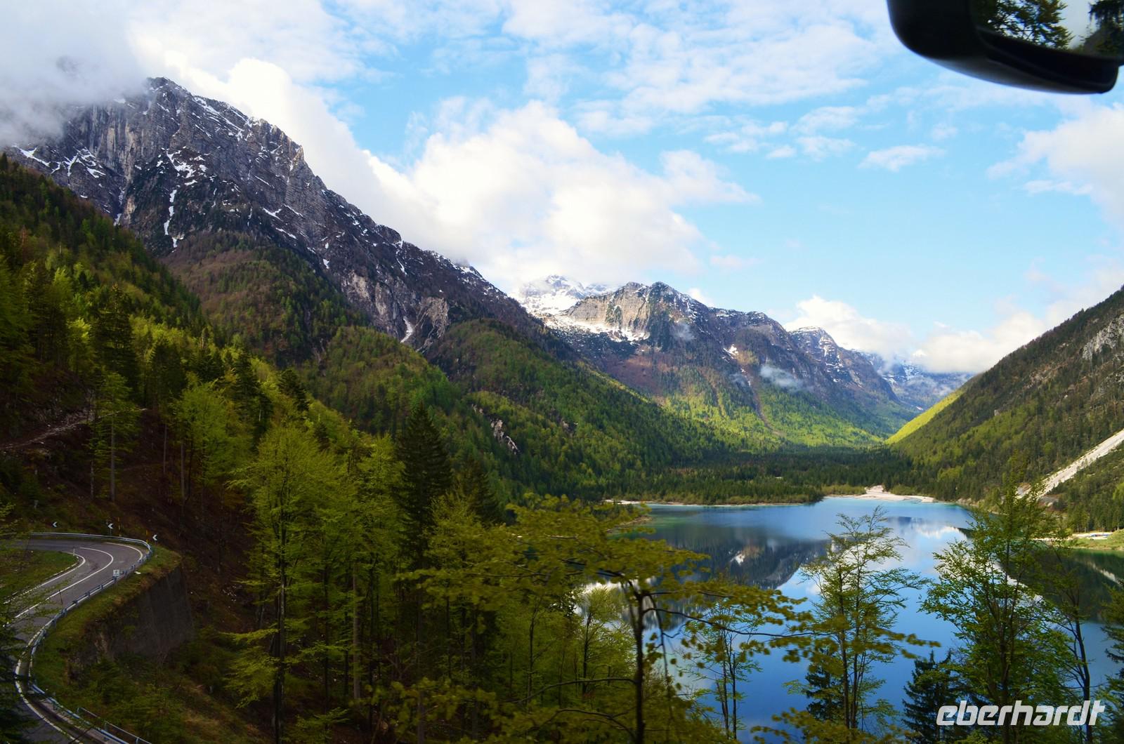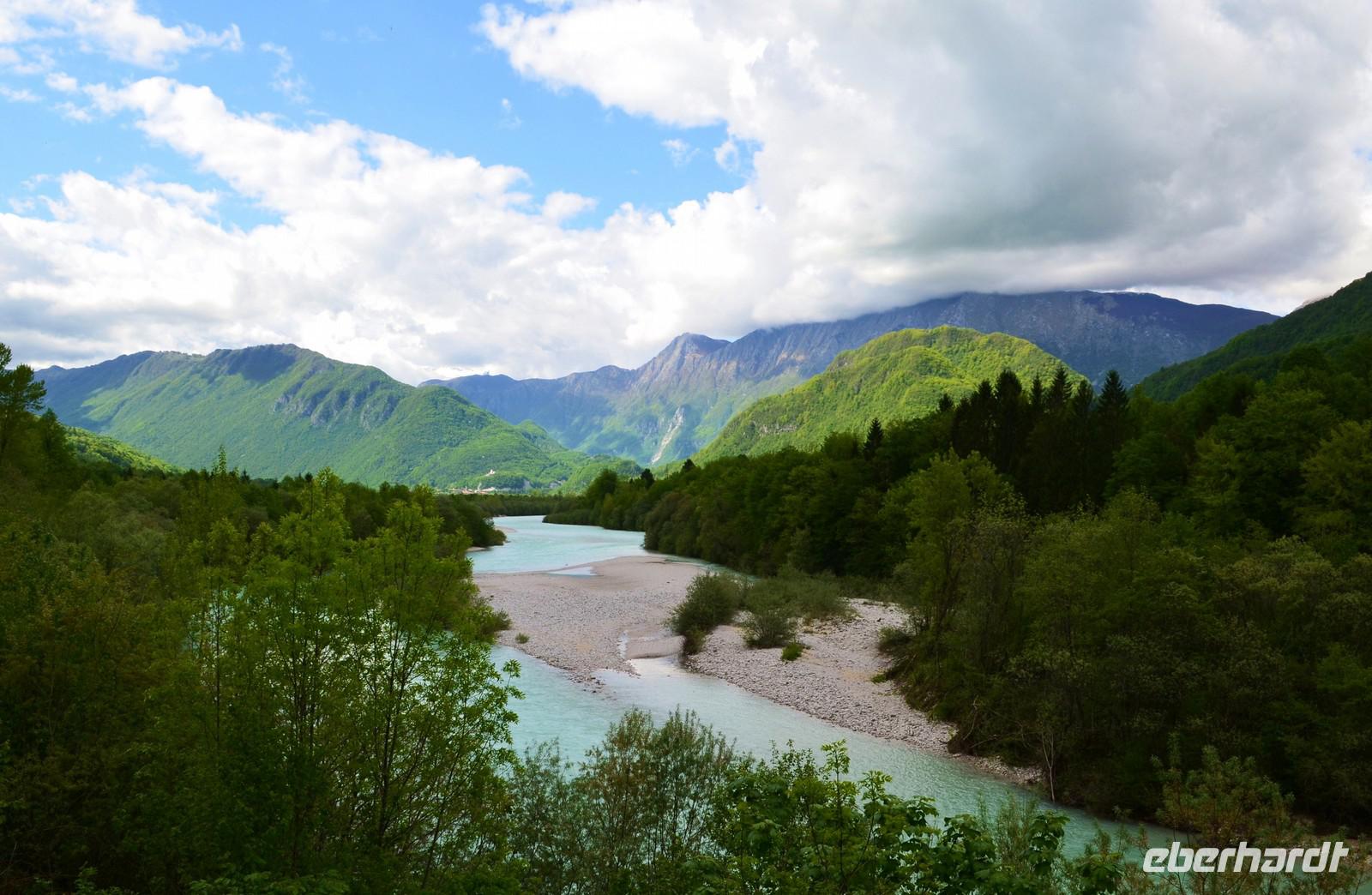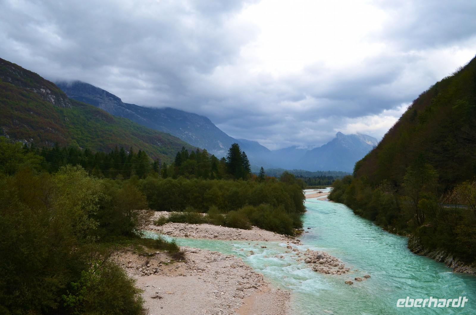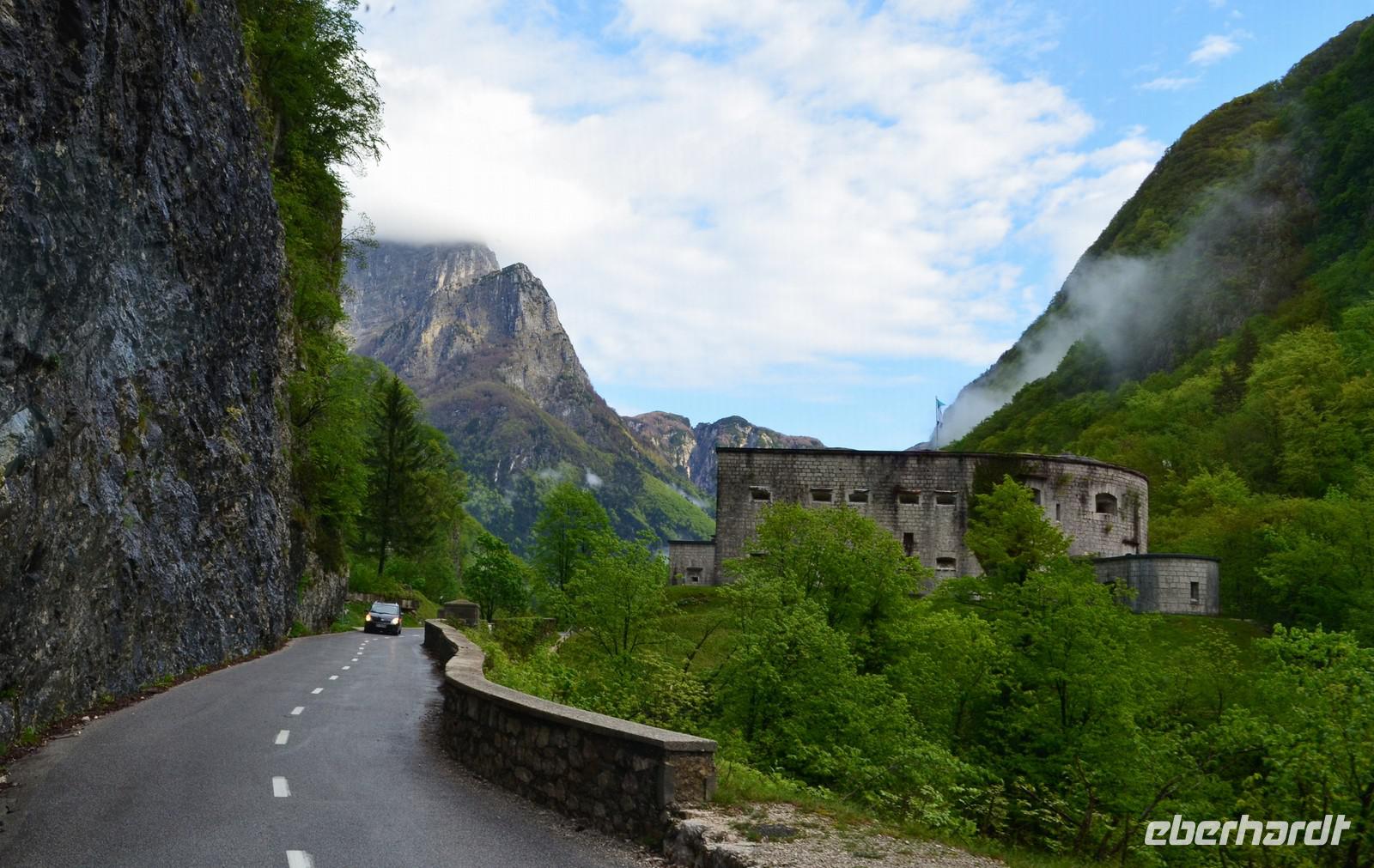 Heute beginnt leider schon die Heimreise. Mit der Fähre fahren wir bei ruhiger See über, dann die Küstenstraße weiter Richtung Rijeka. Bei einer schönen Aussicht an der Küste vor Senj machen wir einen Fotostopp. Mittag ist an einer Raststätte bei Rijeka. Dann kommt die Ausreise aus Kroatien, die Weiterfahrt durch die slowenischen Mittelgebirge bis Postojna und hier auf die Autobahn Richtung Nova Gorica. Es geht hinab in das Vipava-Tal und darin bis Nova Gorica. Hier beginnt die wunderschöne Fahrt durch das Soca-Tal. Leider verbergen sich die Berggipfel in dichten Wolken und Dauerregen setzt ein. Zuerst geht die Fahrt bis Kanal, dann weiter bis Tolmin und weiter durch das Soca-Tal flussaufwärts, über Kobarid und am Boka-Wasserfall vorbei. Am Nachmittag empfängt uns das Hotel Kanin im reizvoll gelegenen Bovec, über dem heute dichte Regenwolken hängen. Am Abend gibt es noch ein heftiges Gewitter und der Blitz schlägt drei Mal in die Stromversorgung ein, wodurch die Sicherungen herausspringen.