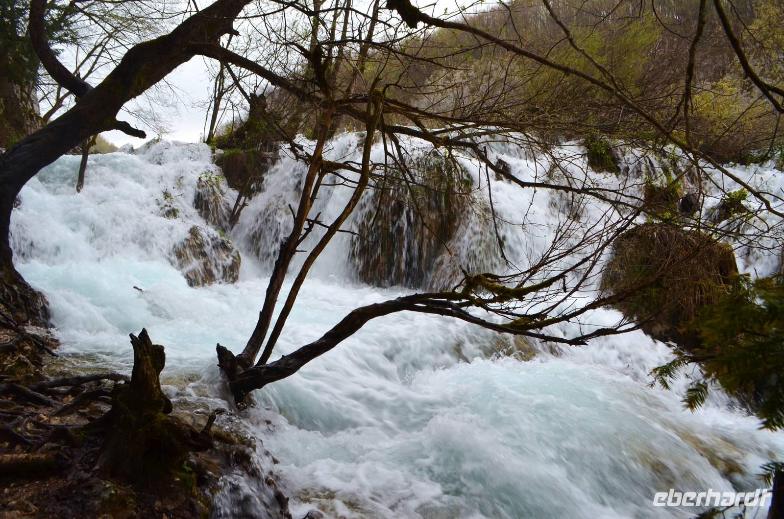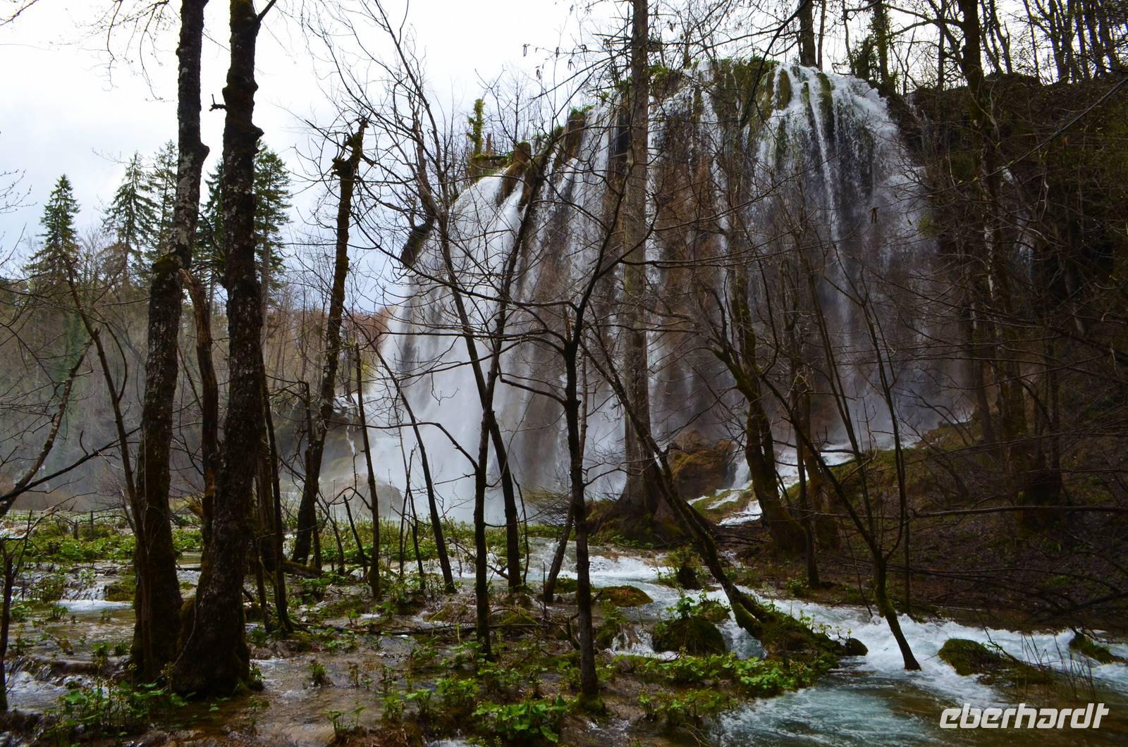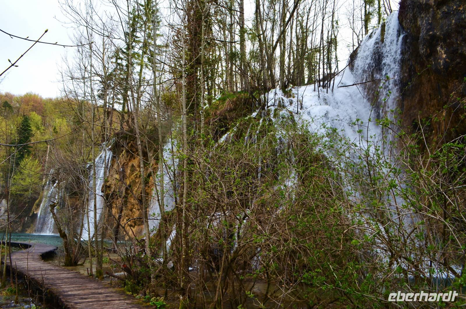 Gewaltige Mengen Schmelzwasser ließen die Wasserfälle gewaltig tosen und überschwemmten manchen Wegabschnitt.