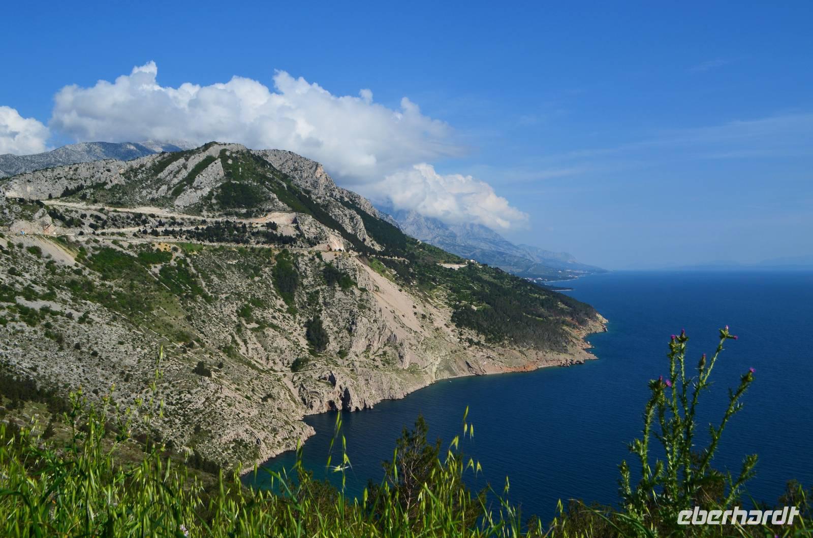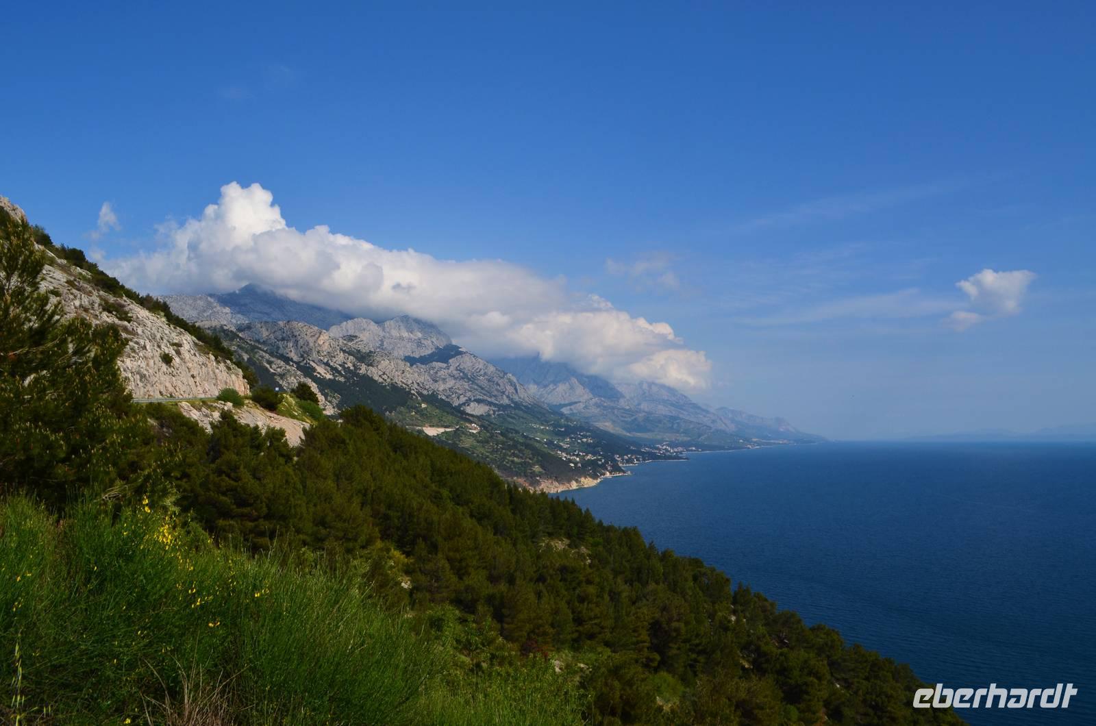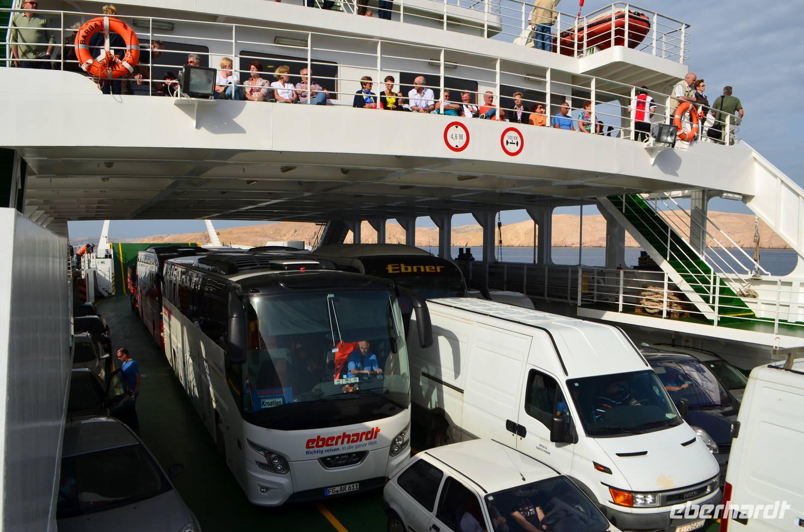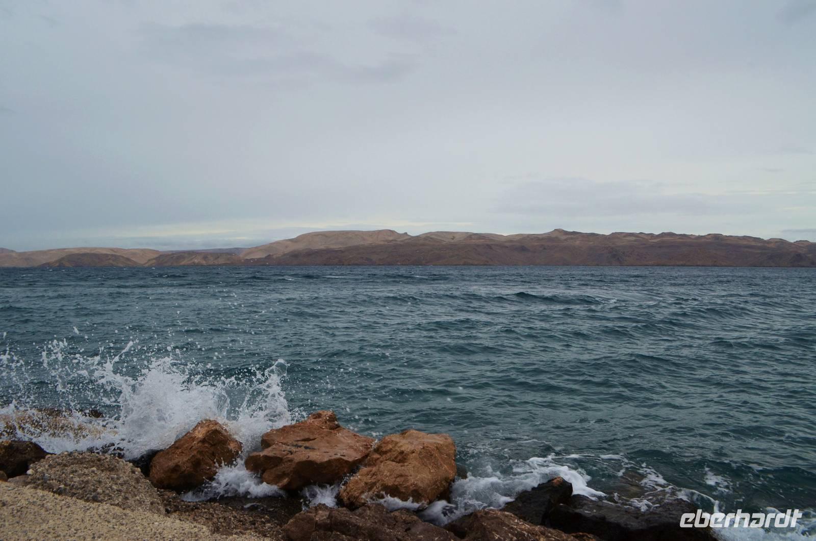 Die Fähre bringt uns ans Festland und unter den hohen Bergen des Velebitgebirges schlängelt sich die Küstenstraße über Senj nach Rijeka. Die Blicke auf die davor in der Adria liegenden Inseln sind überwältigend.