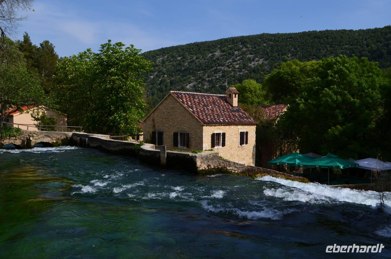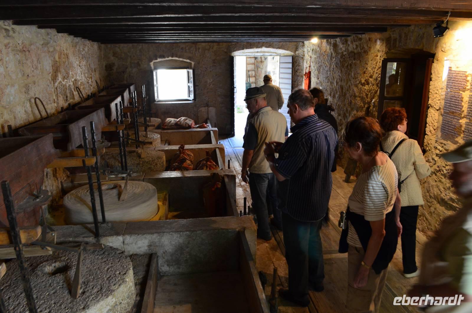 Der dritte Reisetag war die herrliche Fahrt durch die Mala Kopala zu den Plitwitzer Seen, vorbei an der Wassermühlensiedlung Rastoke bei Slunj, wo uns die Müllerin einen Einblick in die Funktion der Wassermühle gab. Gern kosteten wir das frisch gebackene Brot.