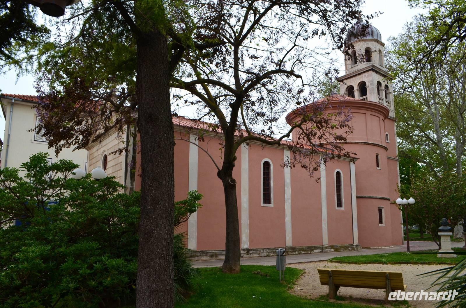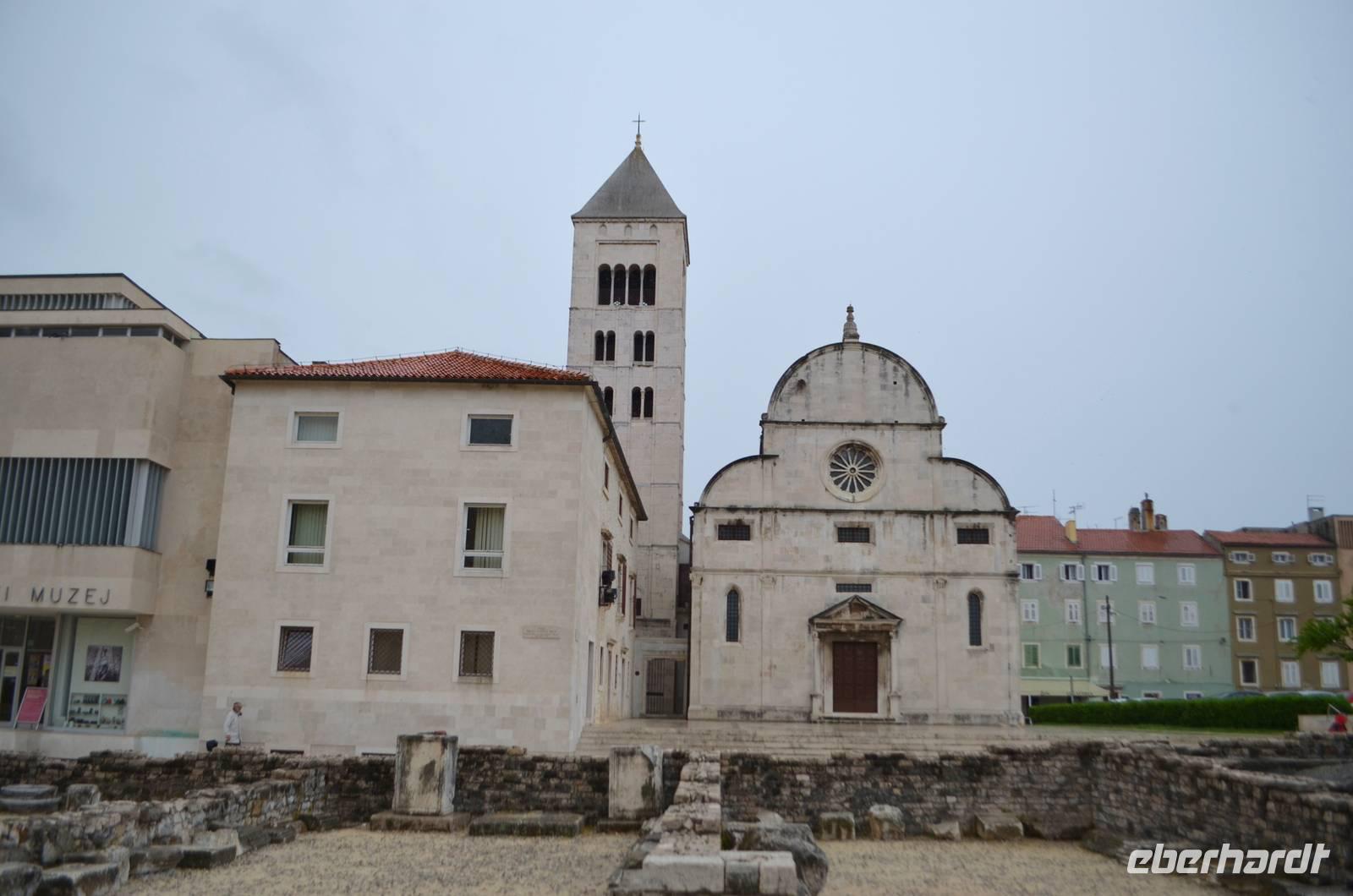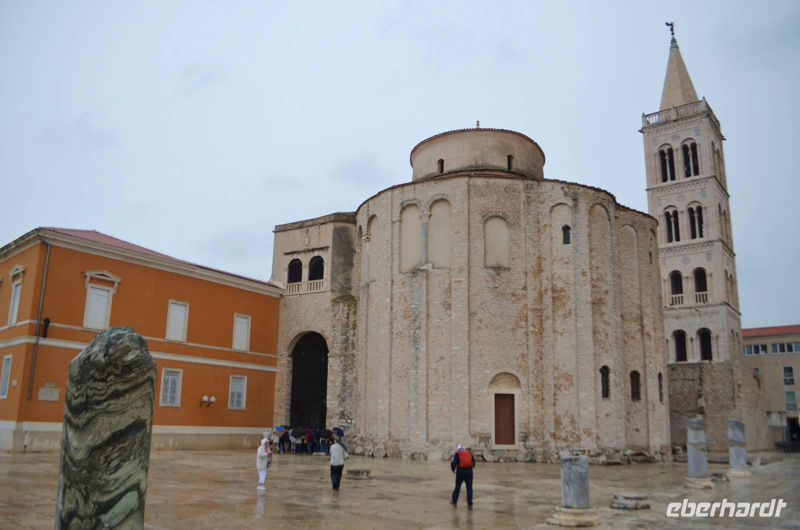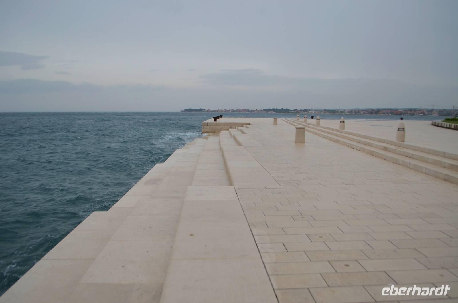 Und immer weiter nach Norden, mit Stadtführung von Thea in Zadar, der sehenswerten Stadt mit der Wasserorgel und dem „leuchtenden" Planetensystem, dem römischen Forum und den schönen Gassen und Kirchen - leider stürmt der Schirokko und der Regen prasselt auf uns nieder.