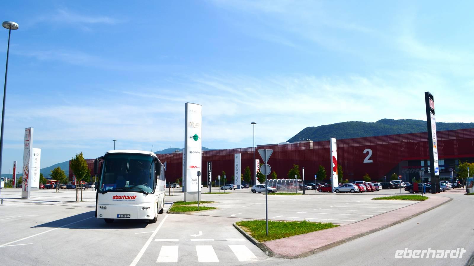 Die Weiterfahrt bringt uns an Maribor vorbei, über die Drau und hinein in die Berge der Hrvatsko Zagorje. An der Grenze nach Kroatien hissen wir die Flagge des kleinen Landes in unserem Reisebus. Die Grenze ist schnell passiert, Zollkontrollen sind entfallen und kurz vor Zagreb erreichen wir das Einkaufscenter „West Gate", wo wir unsere Mittagspause für Geldumtausch und einen kleinen Einblick in die kroatische Einkaufswelt nutzen.