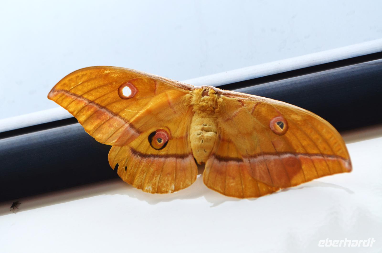 Wieder ein Tag mit schönem Sommerwetter. Ein schöner Schmetterling sitzt an unserem Reisebus.