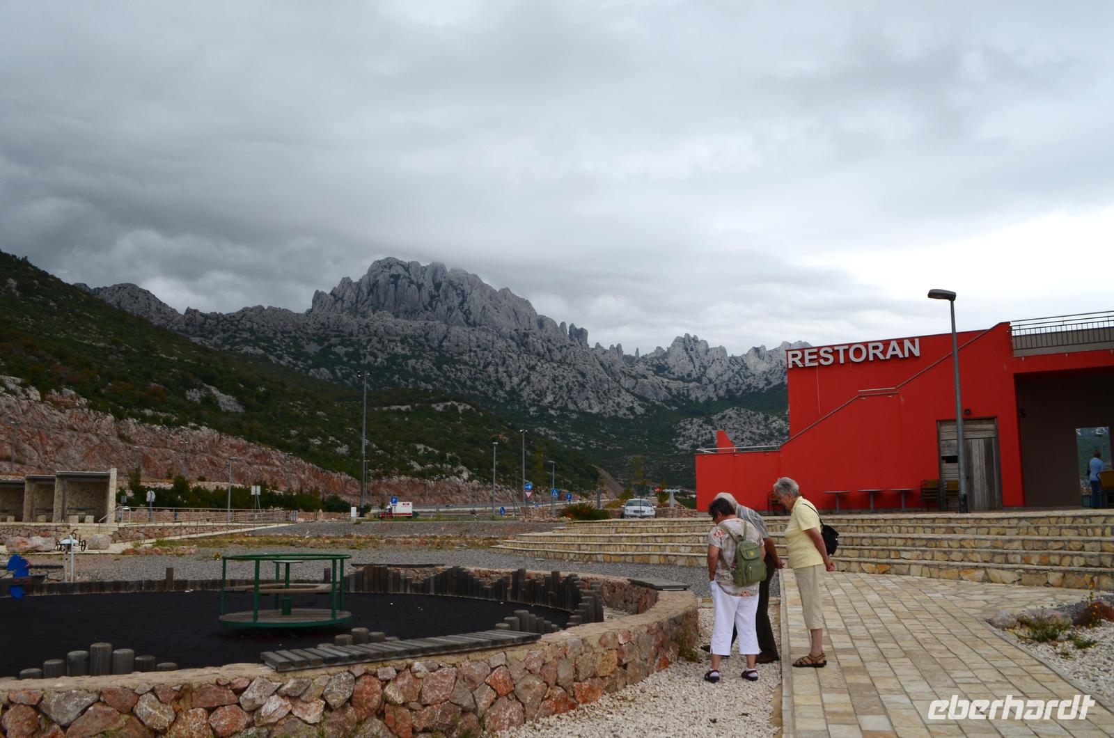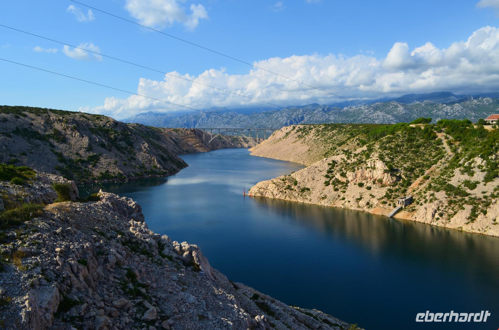 Die Weiterfahrt führt uns auf der Küstenstraße bei Sonnenschein bis Karlobag und Jablanac, wobei wir einen Fotostopp an den Maslenica-Brücken einlegen.