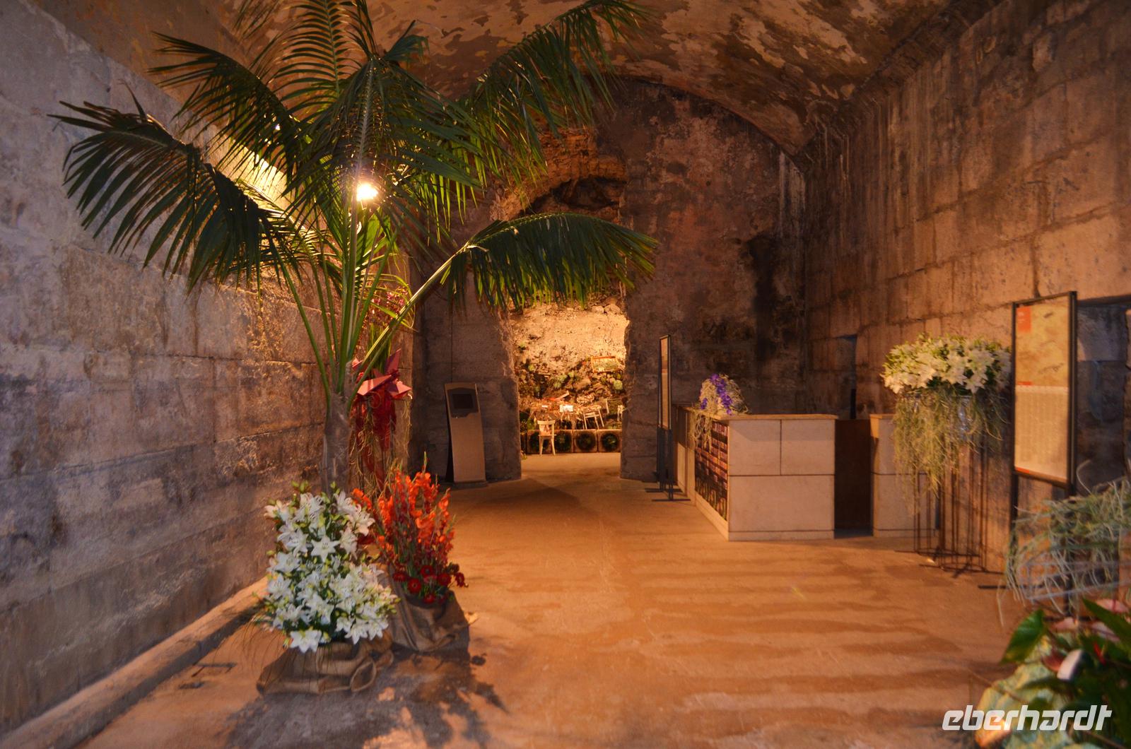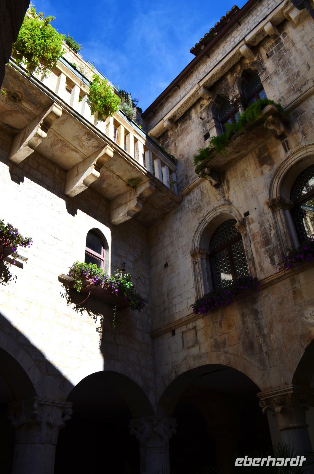 Die Fahrt geht durch das Gebiet der Großen Kopala Richtung Autobahn und mit einer Tunneldurchfahrt im Velebitgebirge hinaus zur Adria, hinein nach Dalmatien. Zum Mittag erreichen wir Split, wo uns an der Riva vor der Altstadt Vesna schon erwartet, um uns die in den alten römischen Kaiserpalast errichtete Altstadt der Metropole Split zu zeigen. Eine grandiose Blumenausstellung lässt die sonst kahlen Kellerräume von Diokletian´s Palast erstrahlen. Absolut sehenswert die engen Gassen, Tore, Säulen und Treppen, die aneinandergereihten Stadtpaläste.