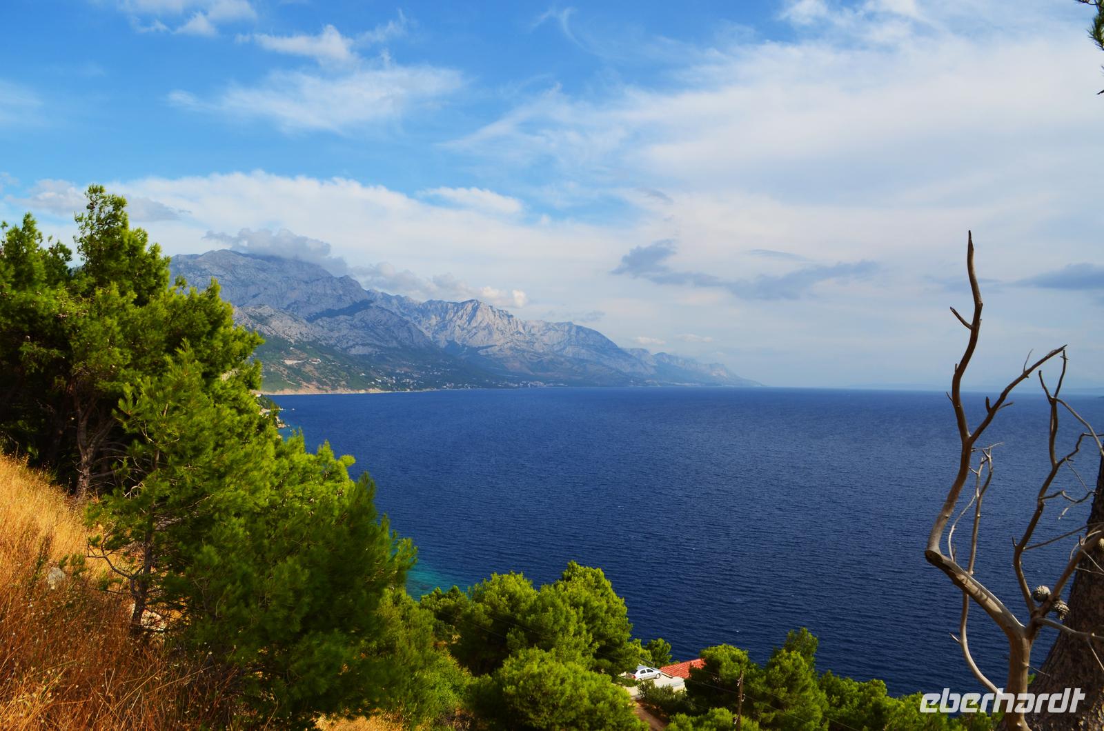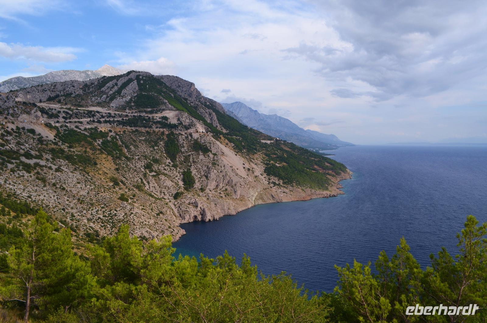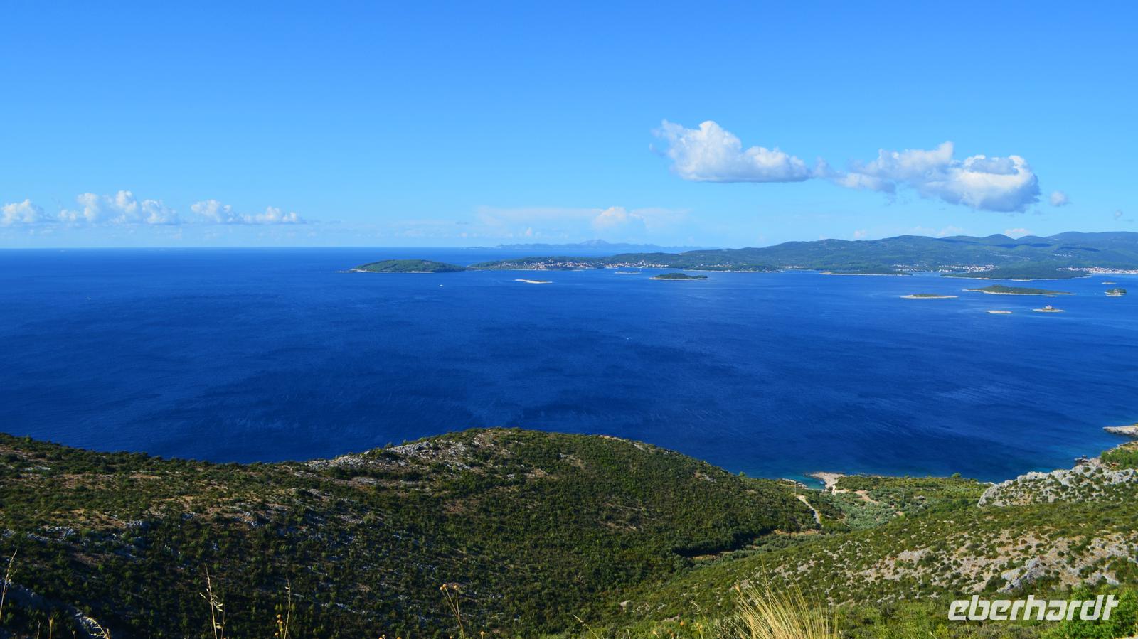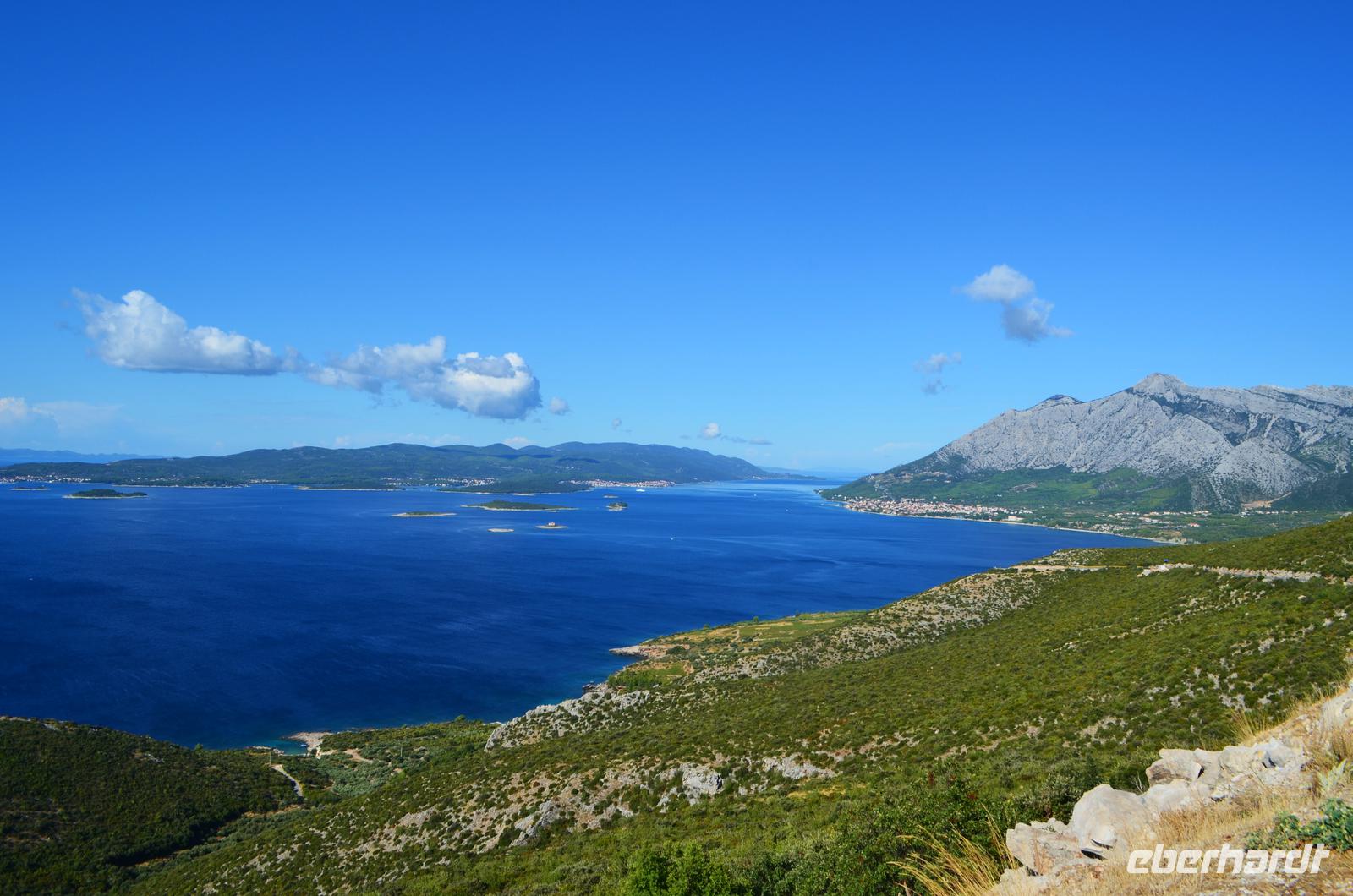 Dann ging es die kurvenreiche Straße über die Berge der Halbinsel Peljesac. Unsere Blicke fielen hinab in die Buchten und auf die anfangs terassenförmigen Hänge der Weinberge.