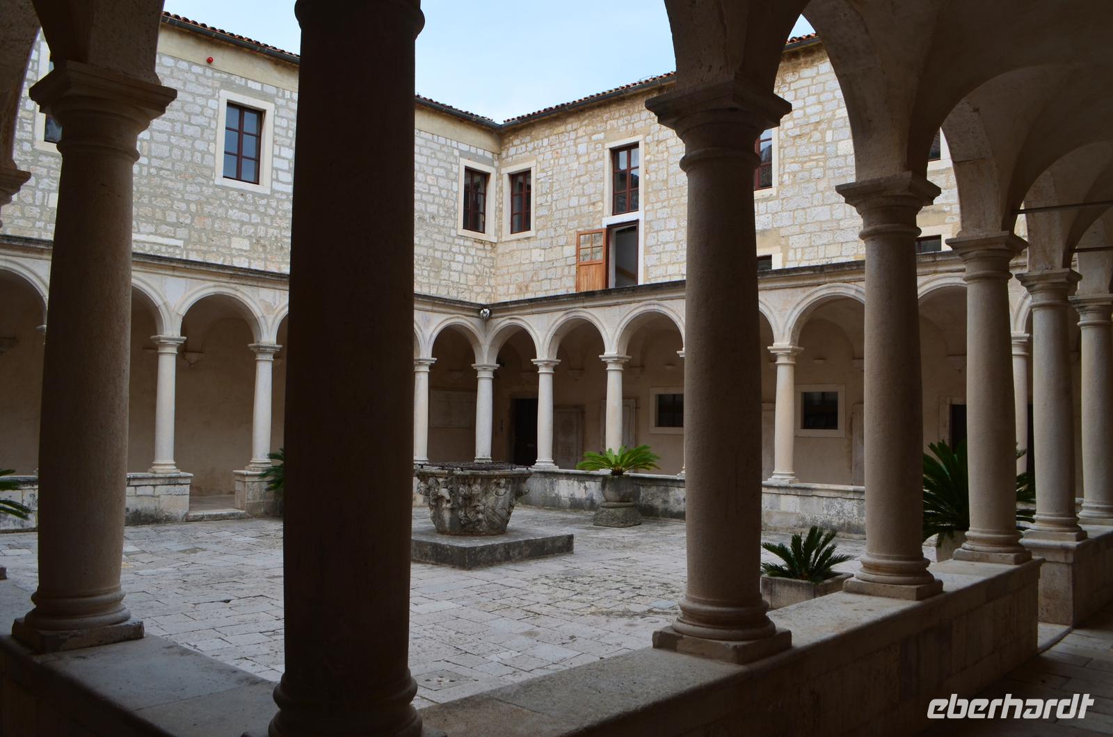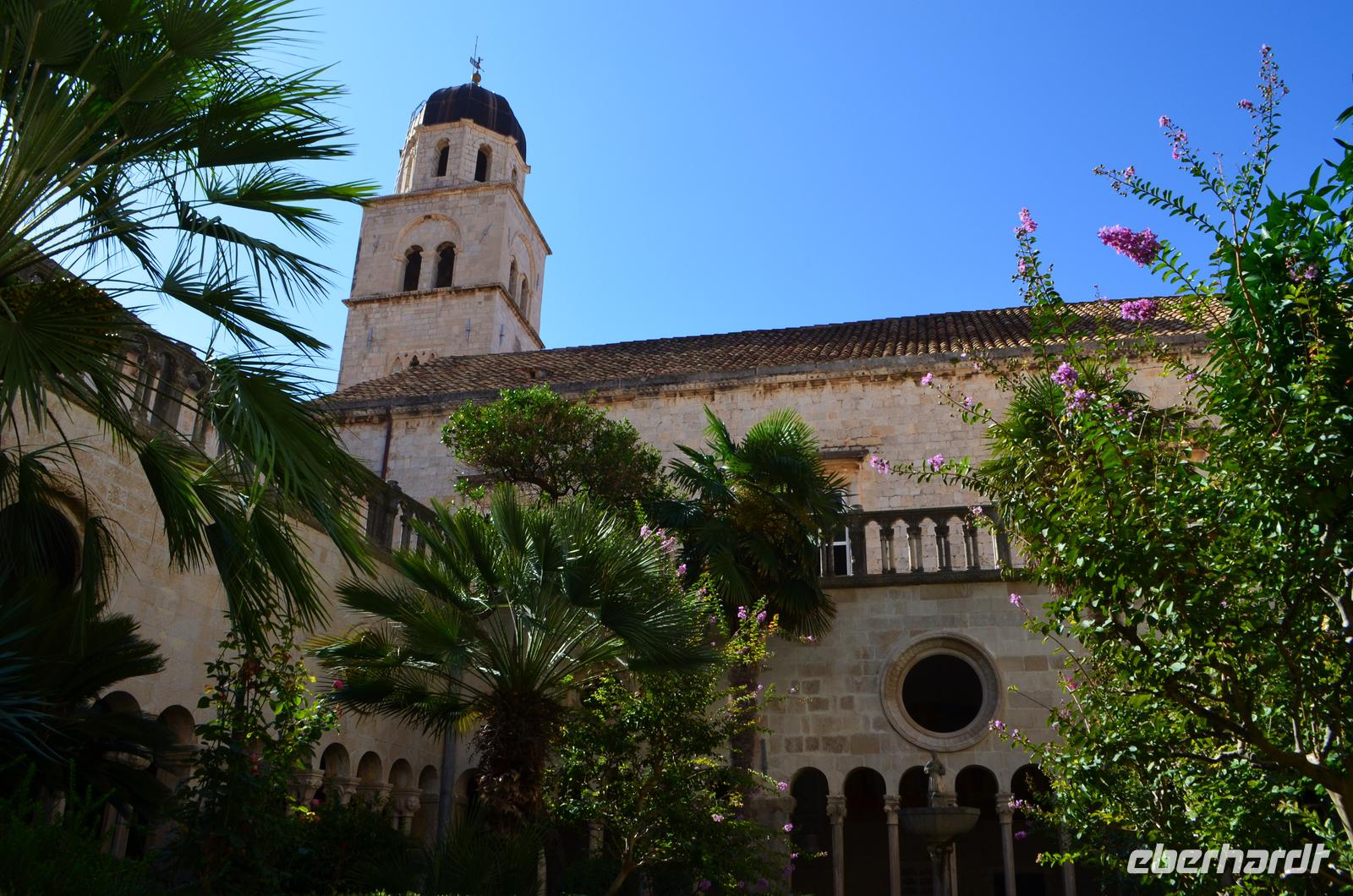Heute erfolgte die Abholung vom Hotel durch unseren Gästeführer Albin. Mit dem Linienbus fahren wir zum Pile-Platz und beginnen hier unsere heutige Stadtbesichtigung. Albin zeigt uns zuerst die ganzen Festungsbauwerke, die die Stadt sichern, dann geht es durch das Pile-Tor hinein auf den Stradun, die breite Hauptgasse von Dubrovnik. In dem glatten Steinpflaster spiegeln sich die Gebäude, wenn das auch bei den zahlreichen Besuchern der Stadt kaum zu sehen ist. Der Besuch des Franziskanerklosters mit seinem schönen Kreuzgang eröffnet die Reihenfolge der Sehenswürdigkeiten von Dubrovniks Altstadt.