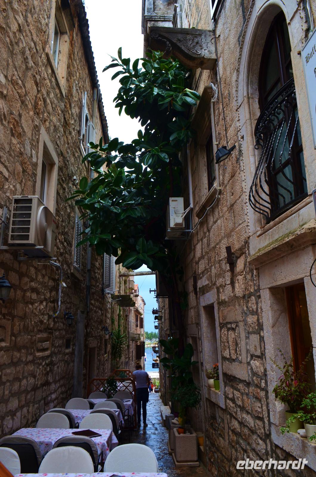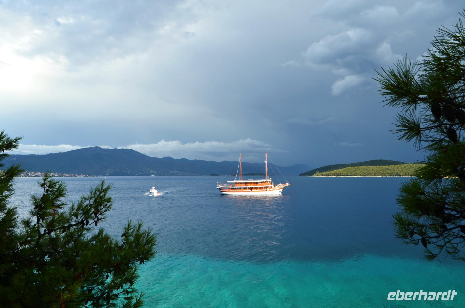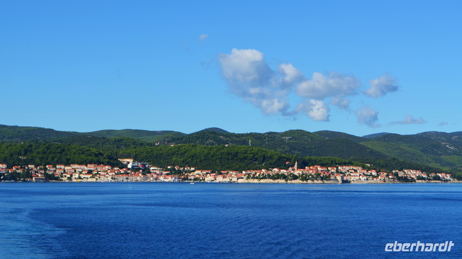 Am Mittag erreichen wir den Fährhafen in Orebic, noch ist schönes Wetter und ruhige See. Bei Beginn der Fährüberfahrt, beginnt auch ein heftiger Gewitterregen. Vom Busbahnhof in Korcula geht es mit Gästeführer Lujo zur Führung durch die Stadt Korcula, inklusive der Museen und der Kirche des Heiligen Marcus.