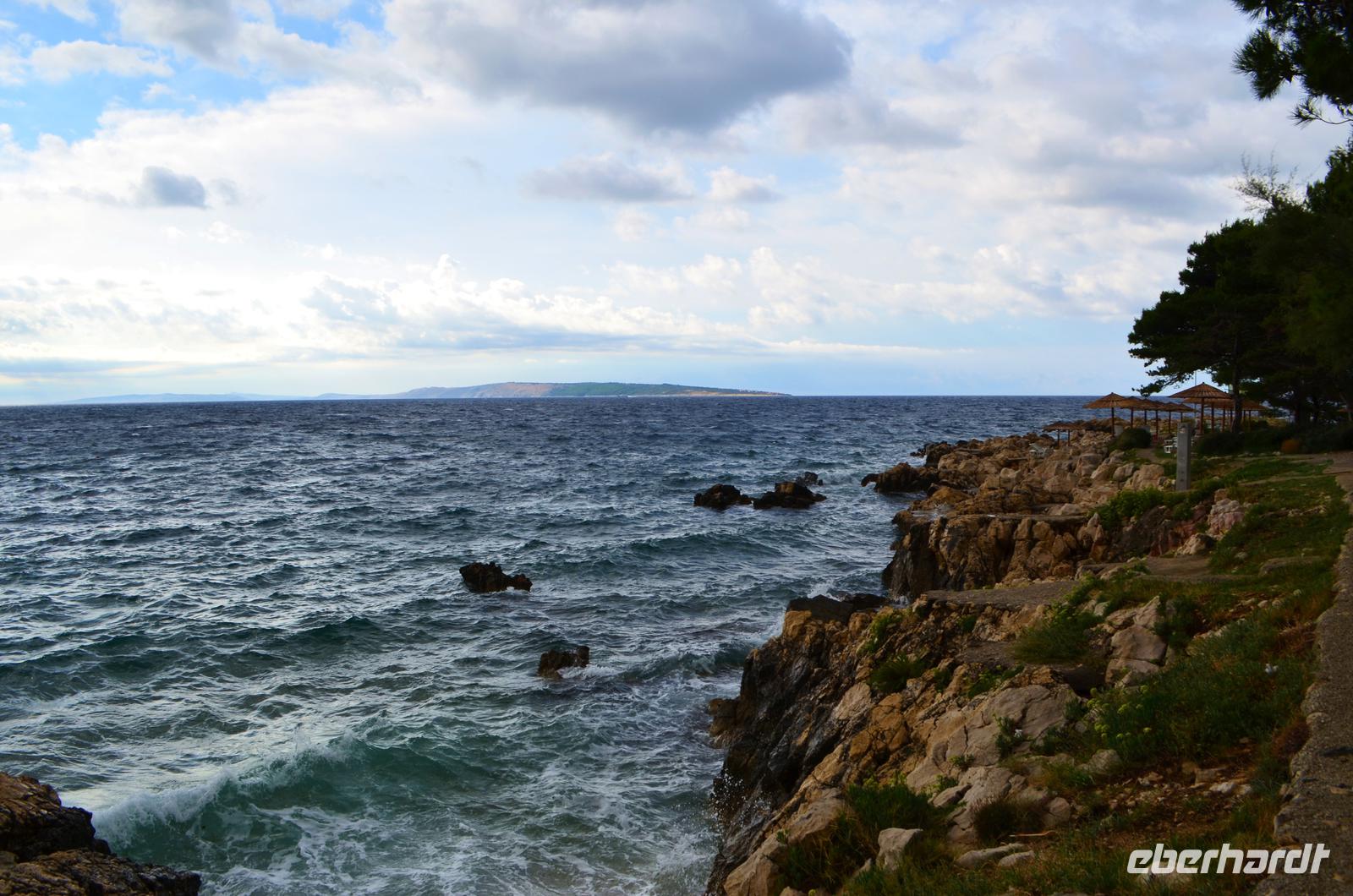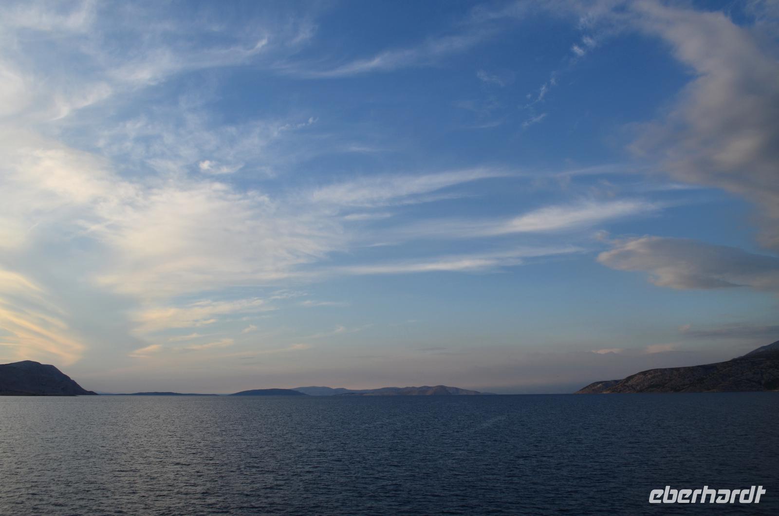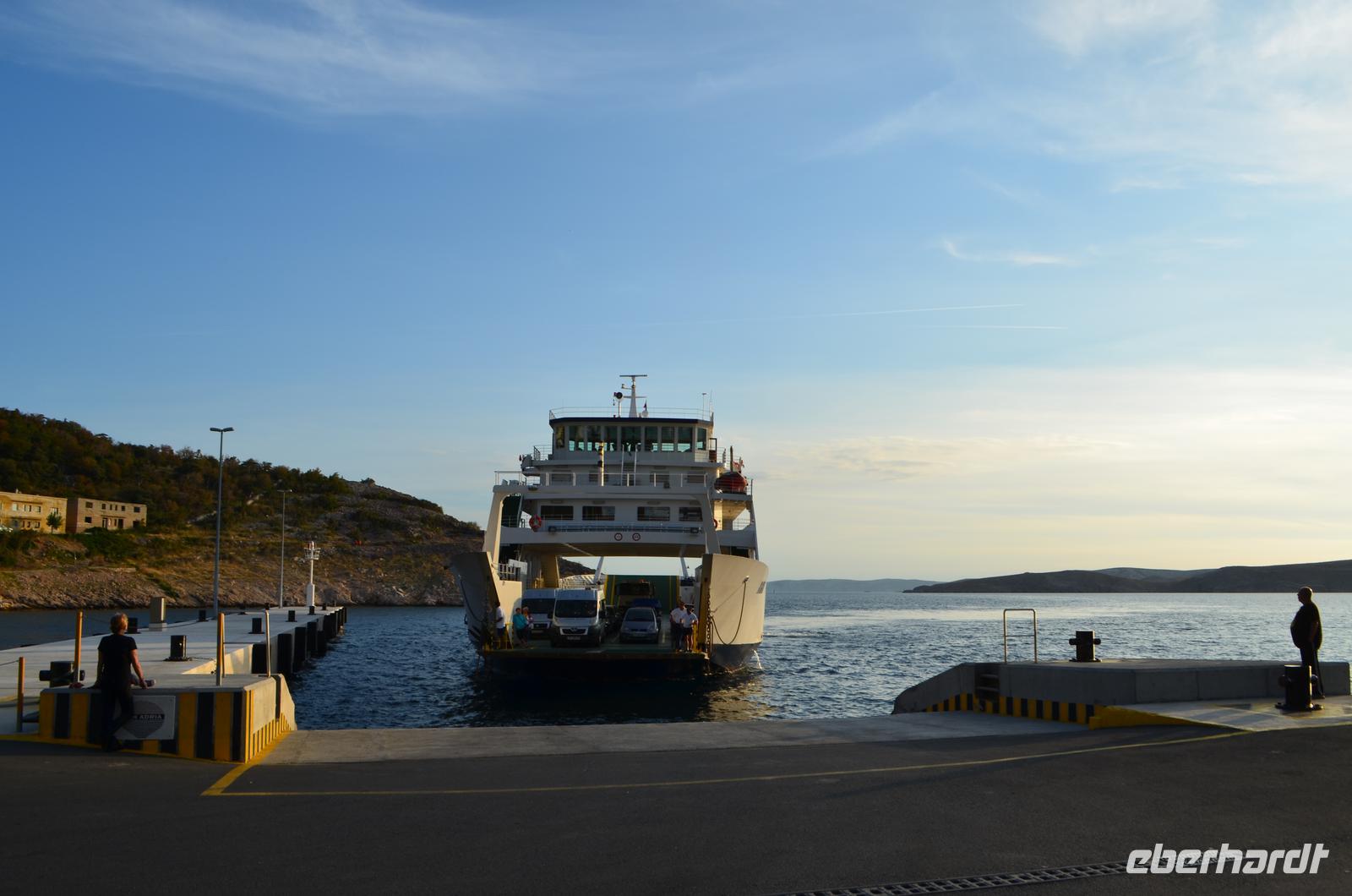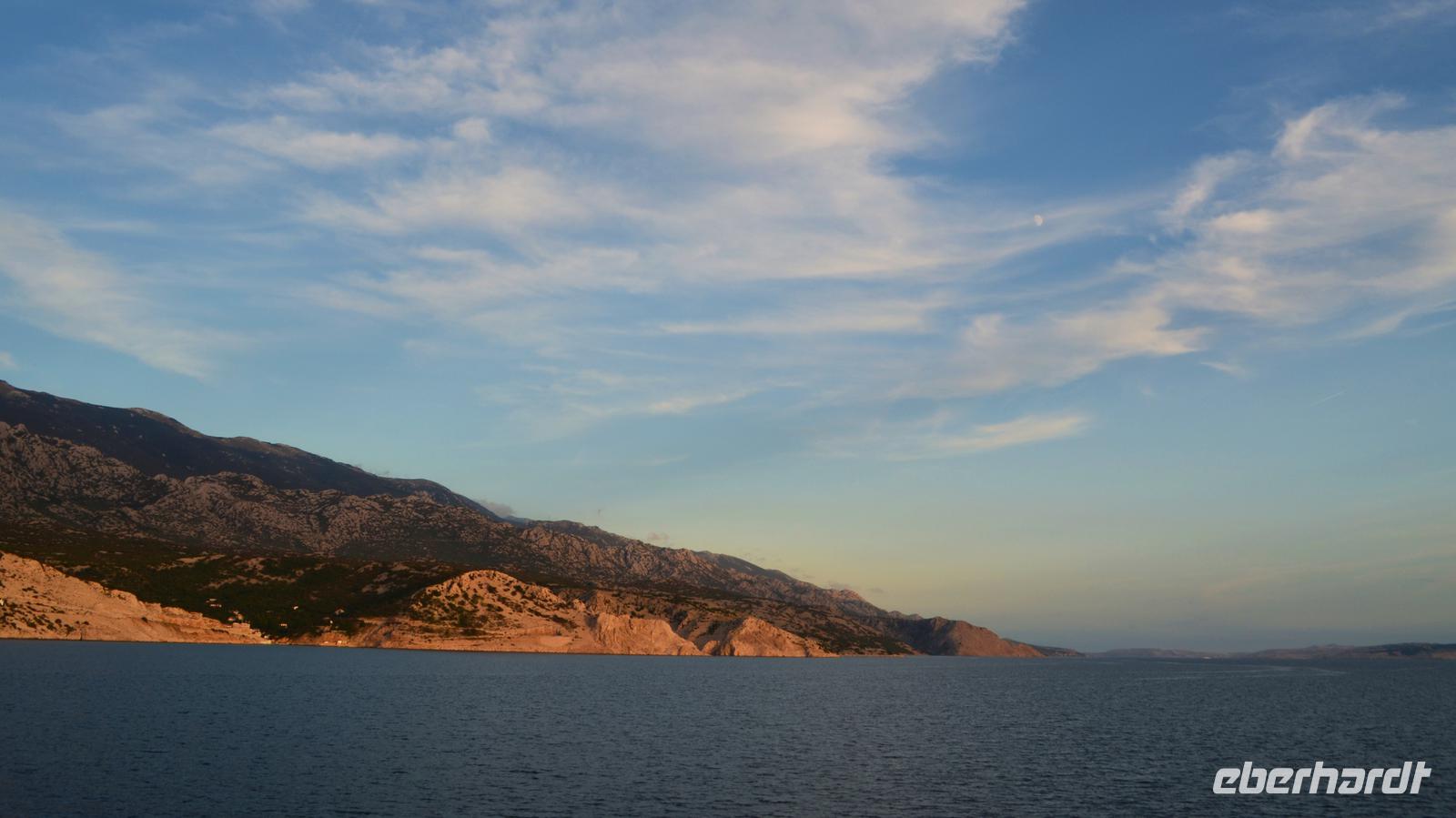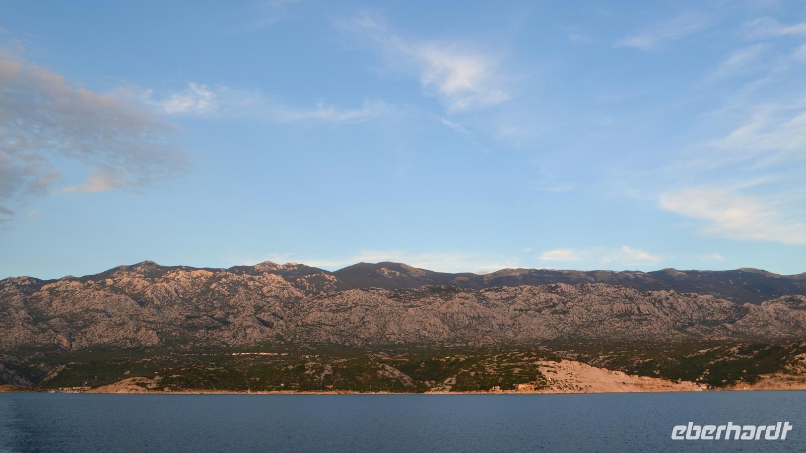 Vom neuen Fähranleger in Stinica geht es am Abend mit der Fähre hinüber nach Rab. Rau und kahl ist hier die Felsenküste unterhalb des Velebit. Bei Ankunft im Hotel Imperial fühlen wir uns einfach wohl.
