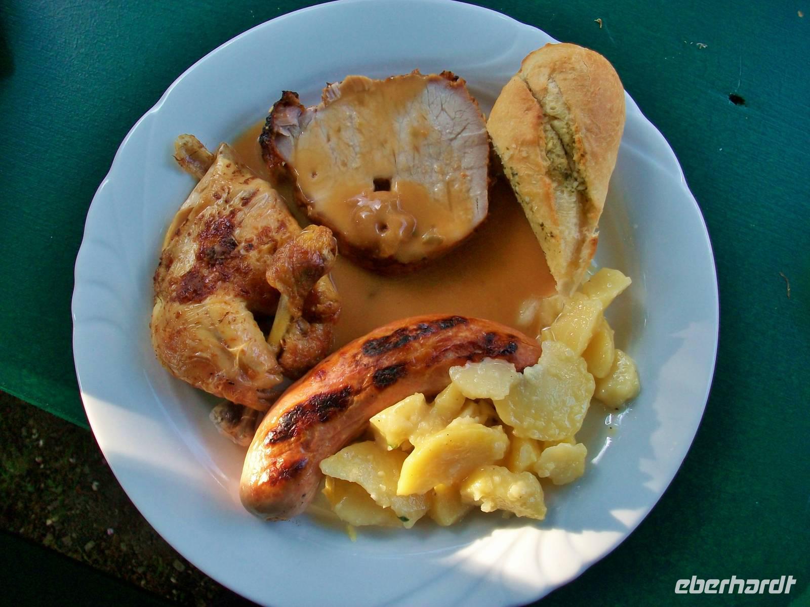 Als wir uns es so richtig schmecken lassen geht draußen noch ein kräftiger Schauer nieder, nun kann er uns nicht mehr stören.