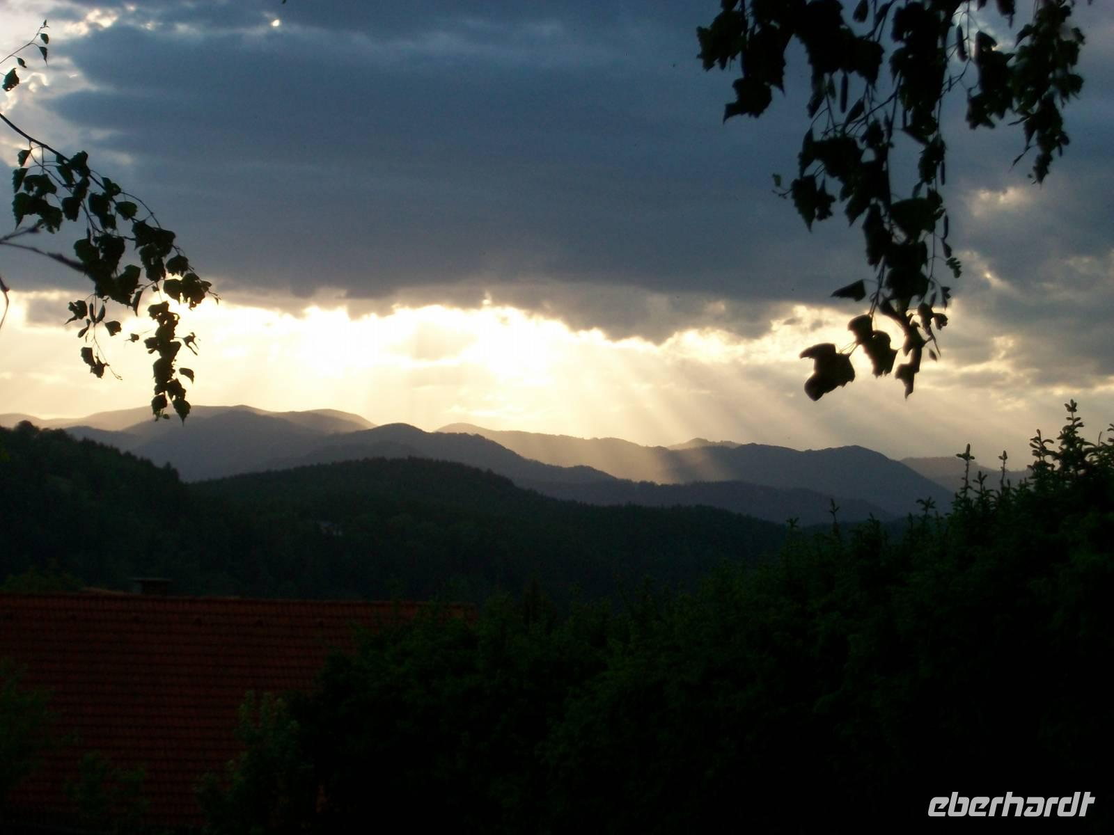 Kurz nach halb fünf gelangen wir nach Semriach, hier hat sich der Sommer erhalten, warme Luft empfängt uns beim Aussteigen; gerade richtig noch zu einem Spaziergang in dieser schönen Bergkulisse des steirischen Mittelgebirges.