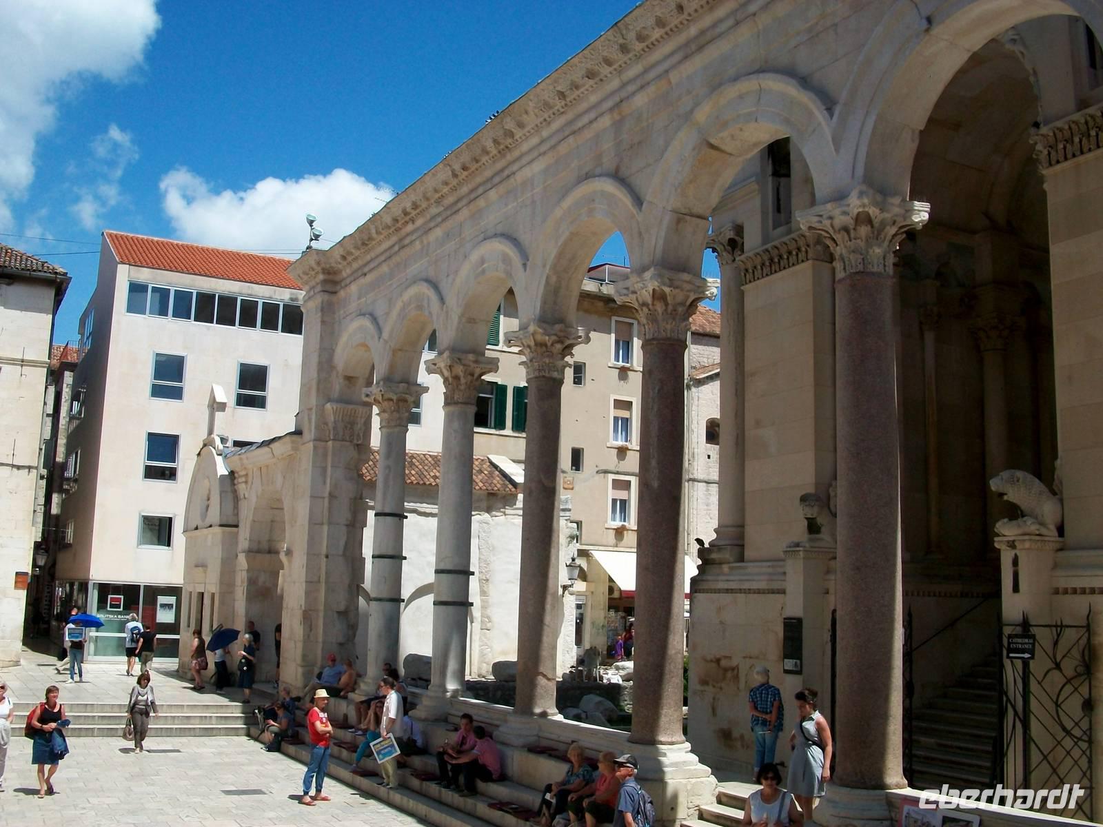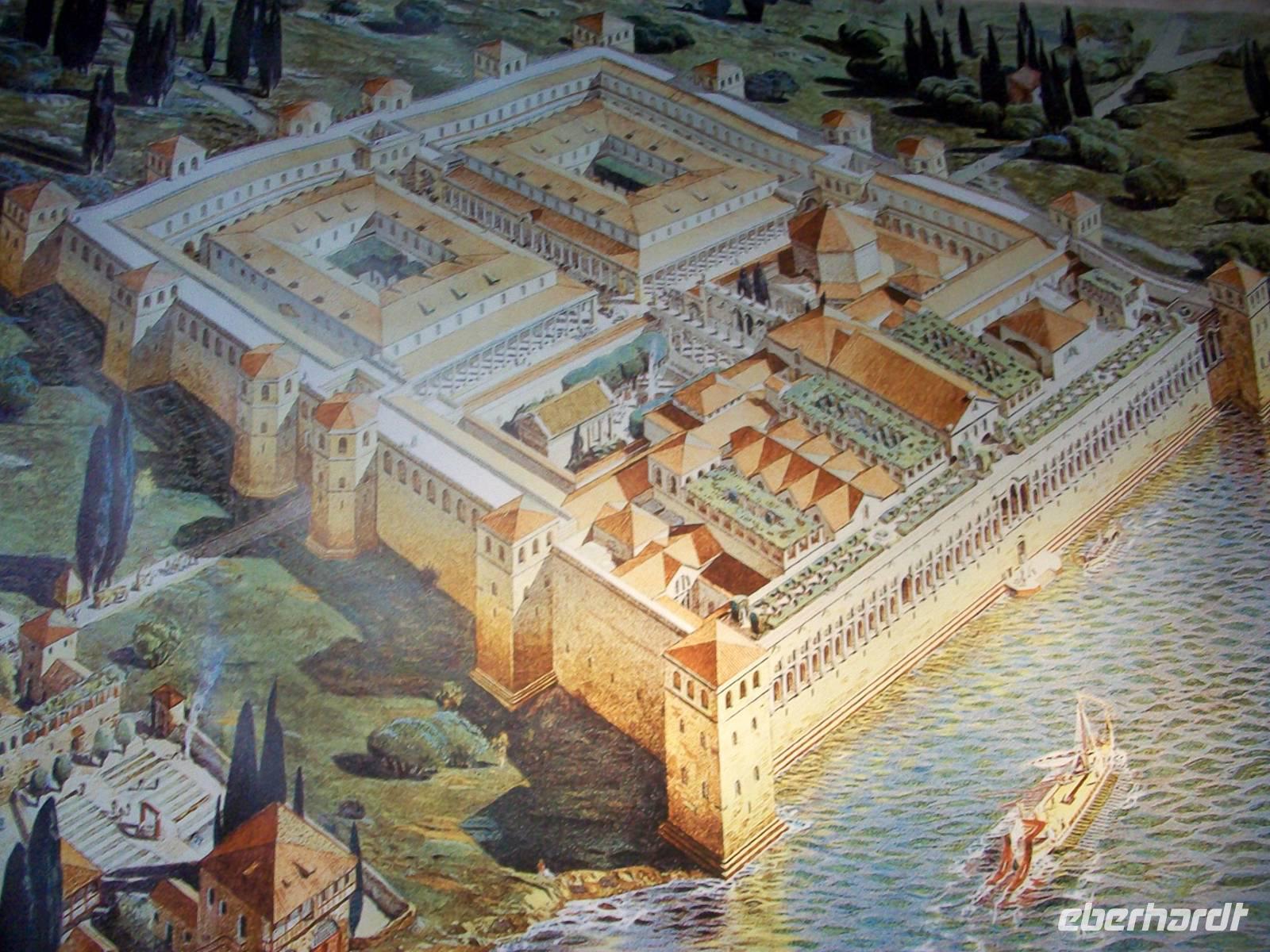 Hier werden wir von unserer Führerin Suzy erwartet, sie wird uns die nächsten gut 90 Minuten so wissenswert wie temperamentvoll durch fast 2 000 Jahre Geschichte geleiten. Zuerst betreten wir die Fundamente des Palastes den sich der Römische Kaiser Diokletian Anfang des 4. Jahrhunderts erbauen ließ. Wenn diese alten Mauern Geschichten erzählen könnten! Dennoch, auch die stummen Zeugen dieser Zeit geben uns Auskunft über das einstige Leben im alten Rom.