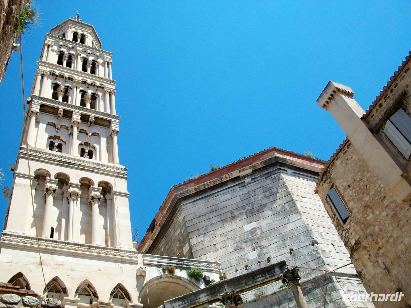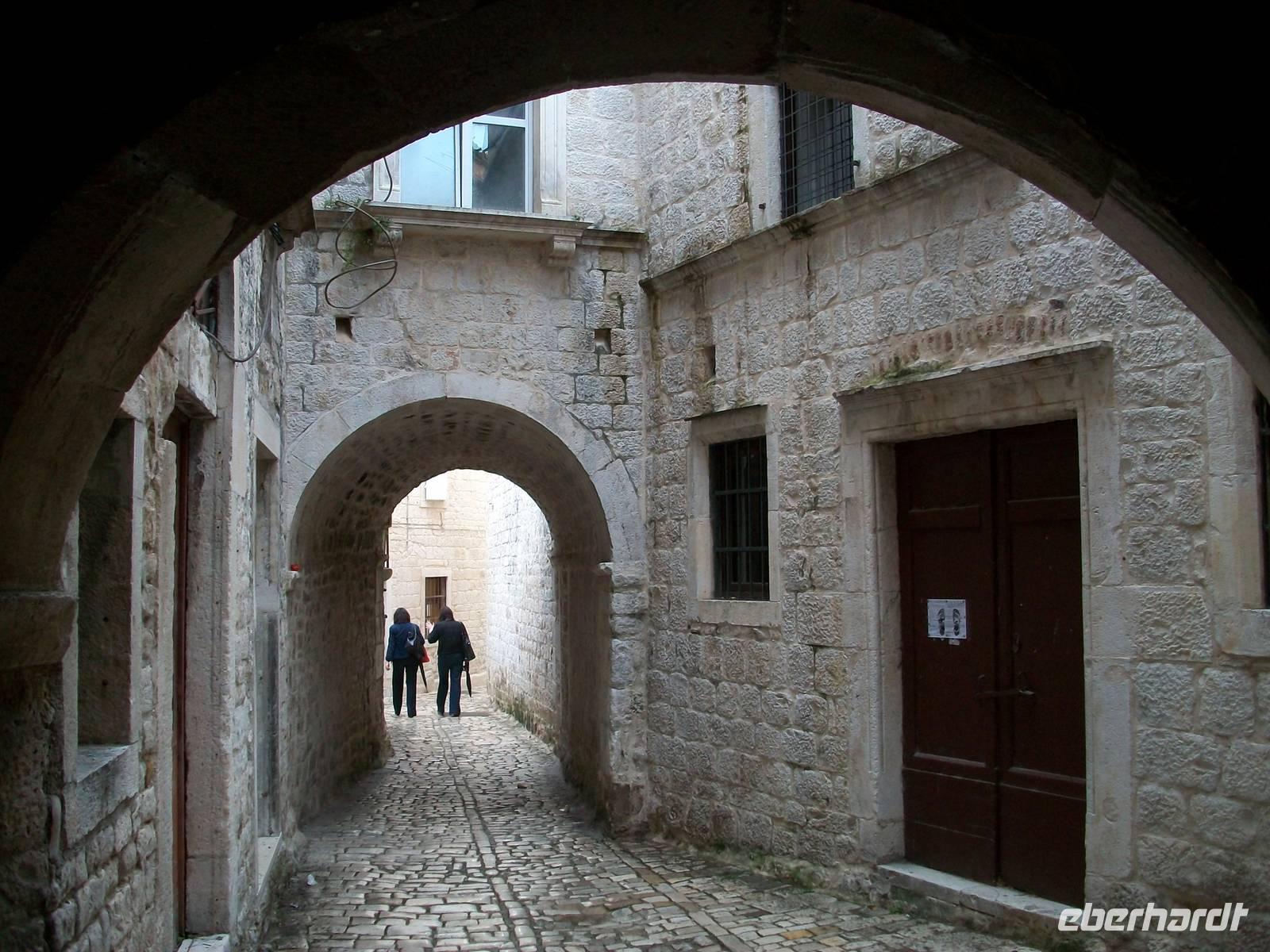 Dann tauchen wir wieder am Licht auf und sind urplötzlich in die venezianische Zeit versetzt; die meisten Gebäude wurden direkt in die römische Mauern gesetzt, hier oben erwartet uns diese einmalige Impression. Wir besuchen noch einige wichtige Plätze der Stadt, dann verabschiedet sich unsere Führerin und wir können bei strahlendem Frühsommerwetter eine schöne Freizeit in Split genießen.
