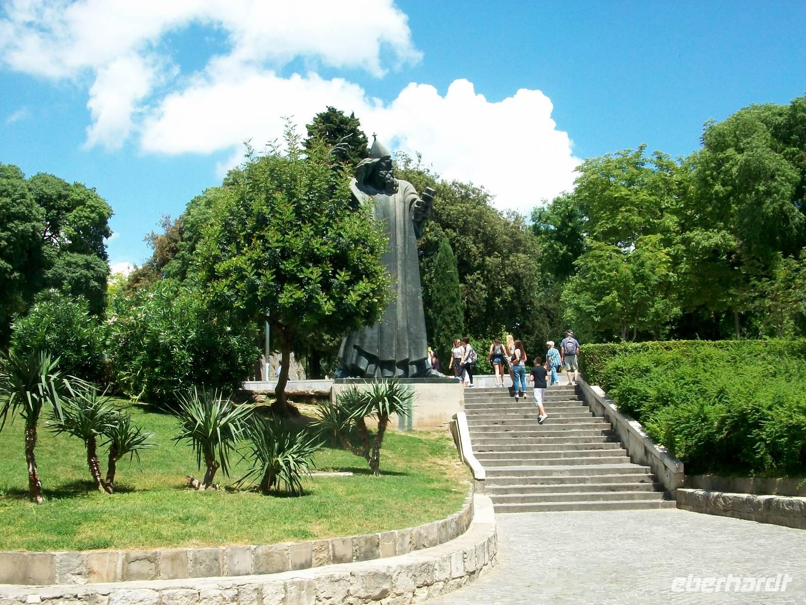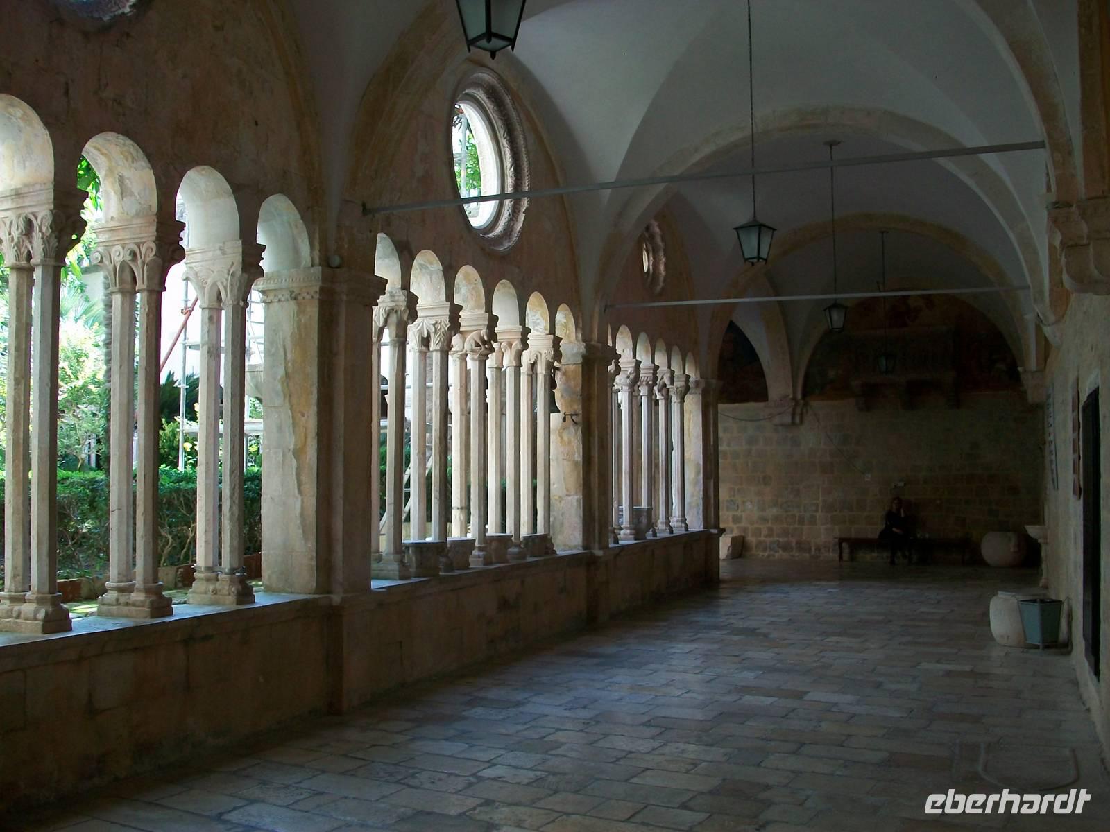 Zunächst mischen wir uns aber einmal unter die Einheimischen; der Linienbus bringt uns zum Pile- Platz, hier beginnt der Rundgang durch diese einmalige Stadt. Wir gelangen durch das Stadttor hinunter zur Stradun, das ist die Hauptgasse von Dubrovnik. Hier herrscht schon ein munteres Treiben, doch bevor wir die Stadt erkunden, besuchen wir noch das Franziskanerkloster mit dem schönen romanischen Kreuzgang und der sehr alte Apotheke. Im Klostergarten strahlt uns frisches Grün entgegen, einige Pampelmusen hängen hier noch an den Bäumen.