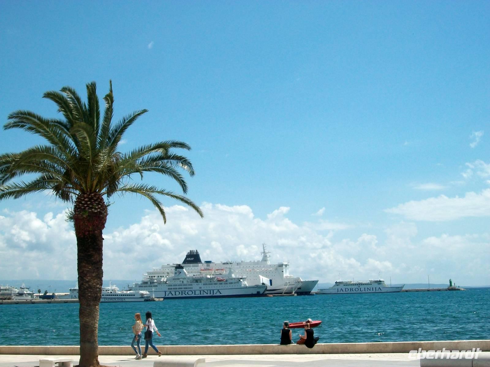 Bald verlassen wir den hinteren Teil des Landes, unterqueren das Velebitgebirge und sind bald danach an der Adria angelangt. Hier ist nun schon die mediterrane Vegetation zu bewundern, gegen Mittag langen wir in Split an.