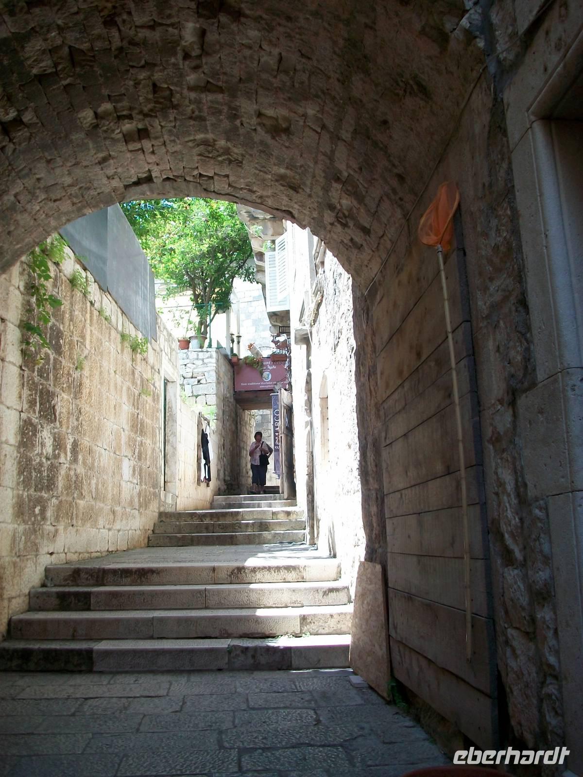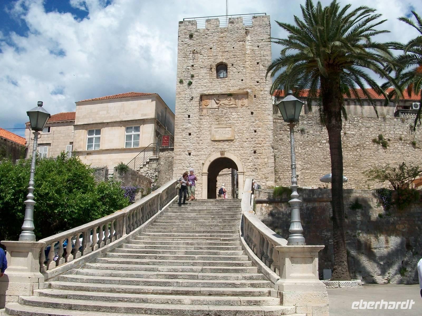 Am Eingang zur Altstadt werden wir schon von Lujo erwartet, er wird uns nun einen ganz besonderen Ort zeigen der denselben Namen trägt wie die gesamte Insel. Hier soll einst Marco Polo geboren sein, allerdings eine umstrittene Sache. Dennoch, der Rundgang durch die schmalen alten Gassen wird zum Hochgenuss; Lujo bringt uns hier eine Zeit näher die längst in den Tiefen der Geschichte versank. Das Leben war hier auch immer ein religiöses mit den zahlreichen Bruderschaften, sehenswerten Kirchen und einer gepflegten Promenade.