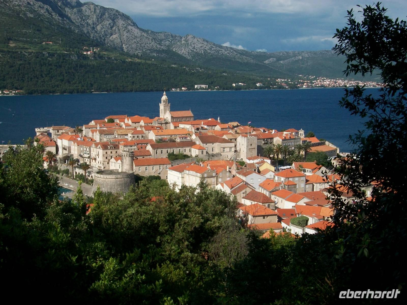 Unser weiterer Weg führt uns über die Halbinsel Pelješac an den Weingärten vorbei nach Orebic. Hier ließen sich früher wohlhabende Kapitäne nieder und von hier beginnt die Überfahrt bei ruhiger See und Sonnenschein zur Insel Korcula.