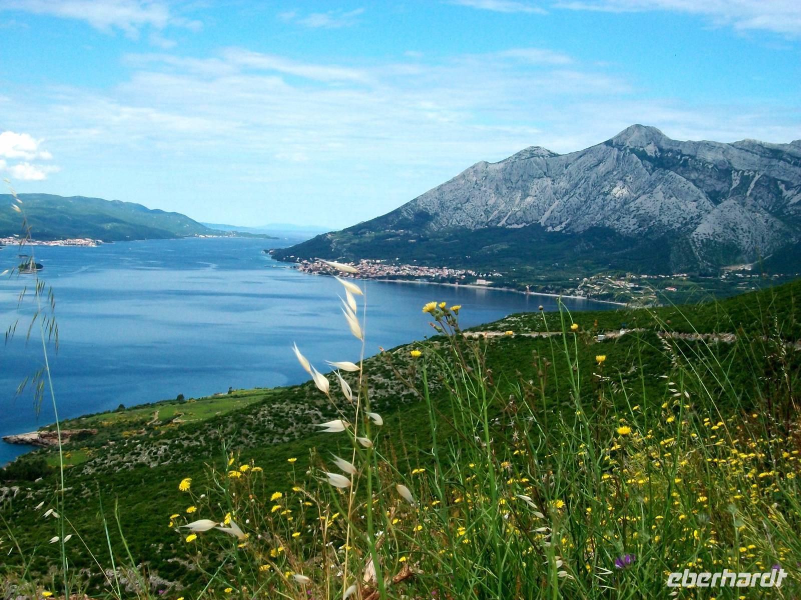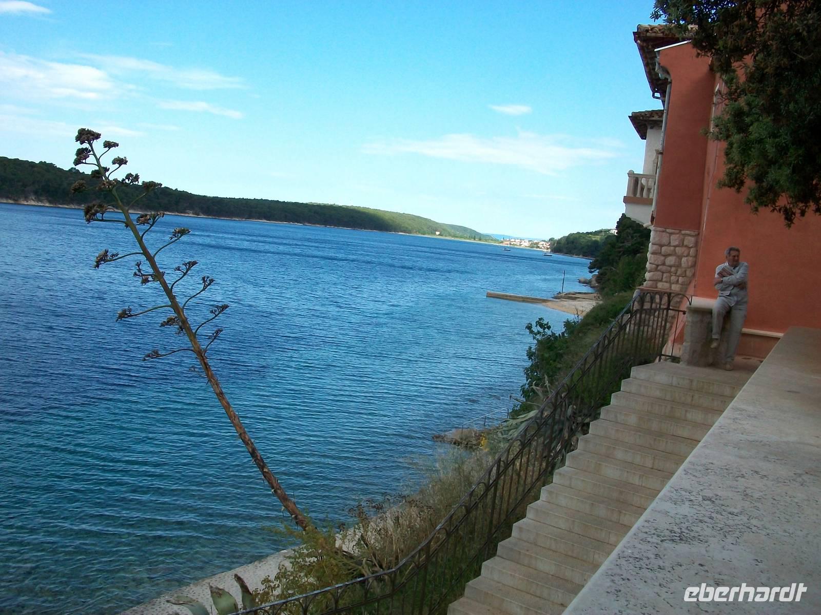 Bei der nachmittäglichen Fahrt erwarten uns nun neue schöne Eindrücke; waren wir am Vormittag im Hinterland unterwegs, so fahren wir nun entlang der Küstenstraße mit dem Blick auf die Adria und die grünen Inseln gegenüber. Mal tief unten am Wasser, dann wieder in atemberaubender Höhe über den zahlreichen Buchten- das Auge kann sich gar nicht satt sehen an den vielen schönen Motiven.