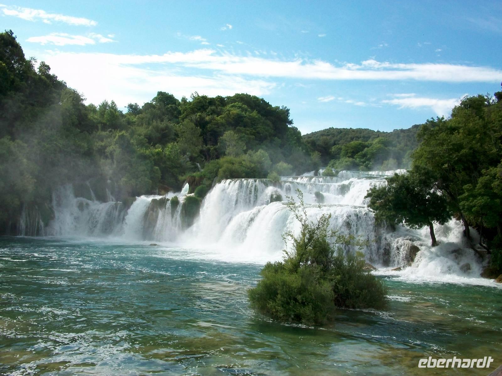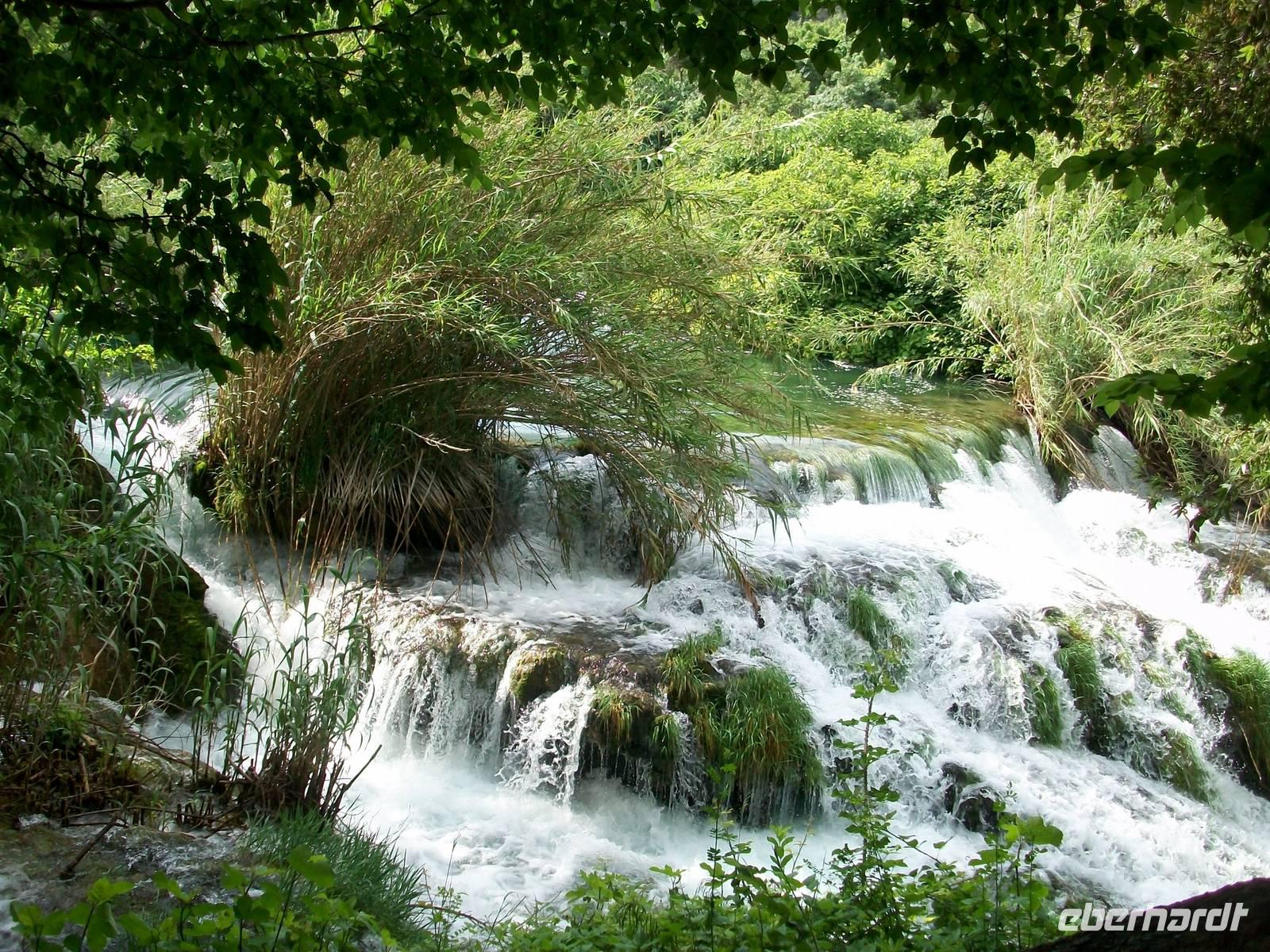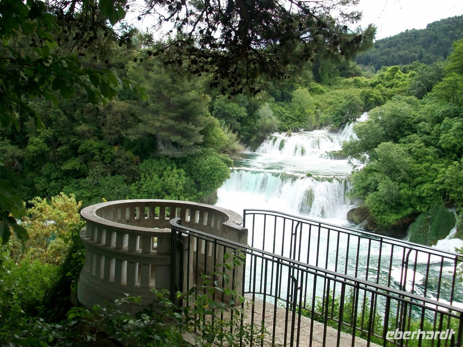 Unten werden wir vom mächtigen Brausen des Wassers begrüßt; es ist der Skradinski Buk, der eindrucksvolle Wasserfall der in vielen Kaskaden das Wasser nach unten sendet- einfach atemberaubend.