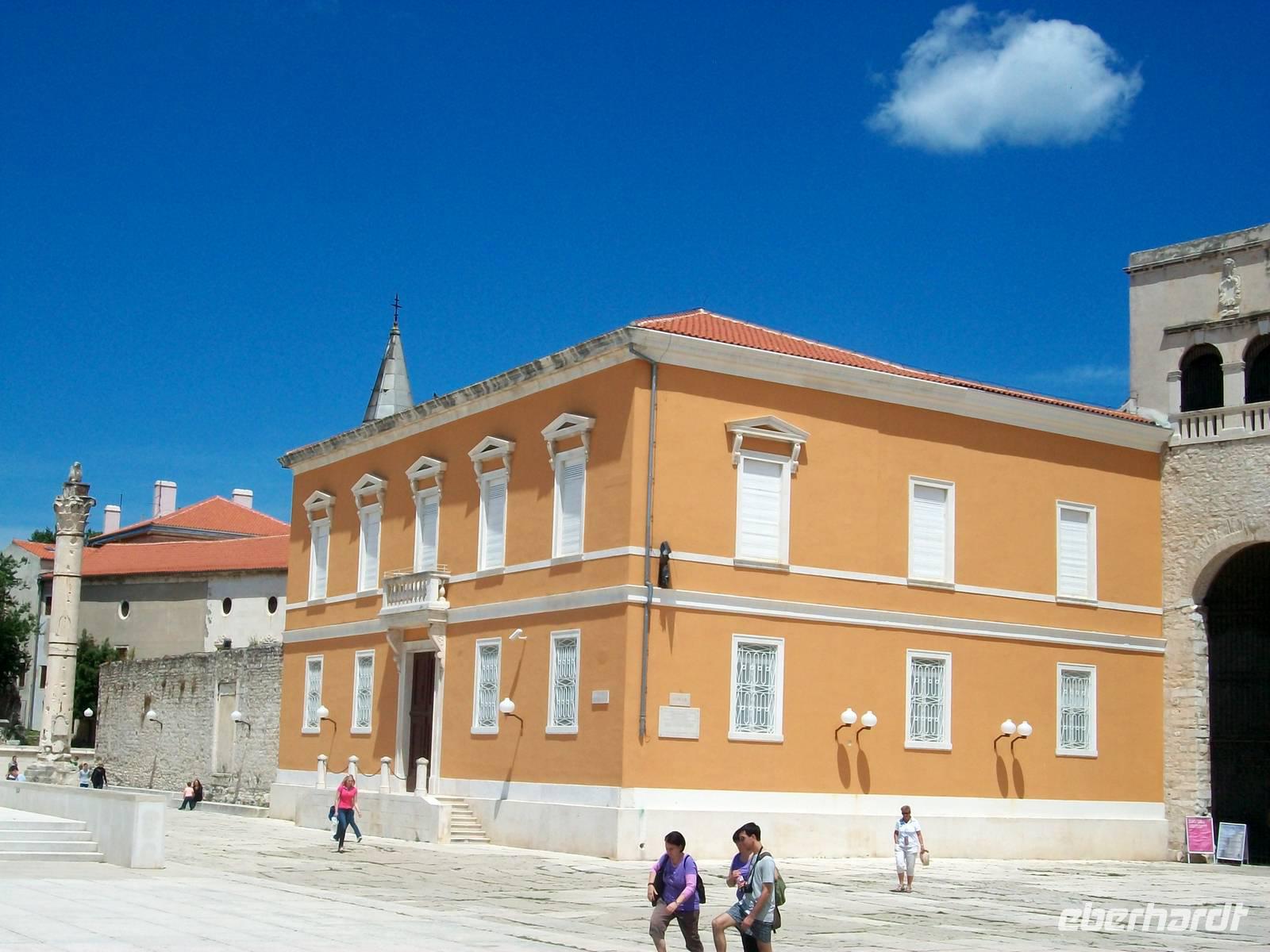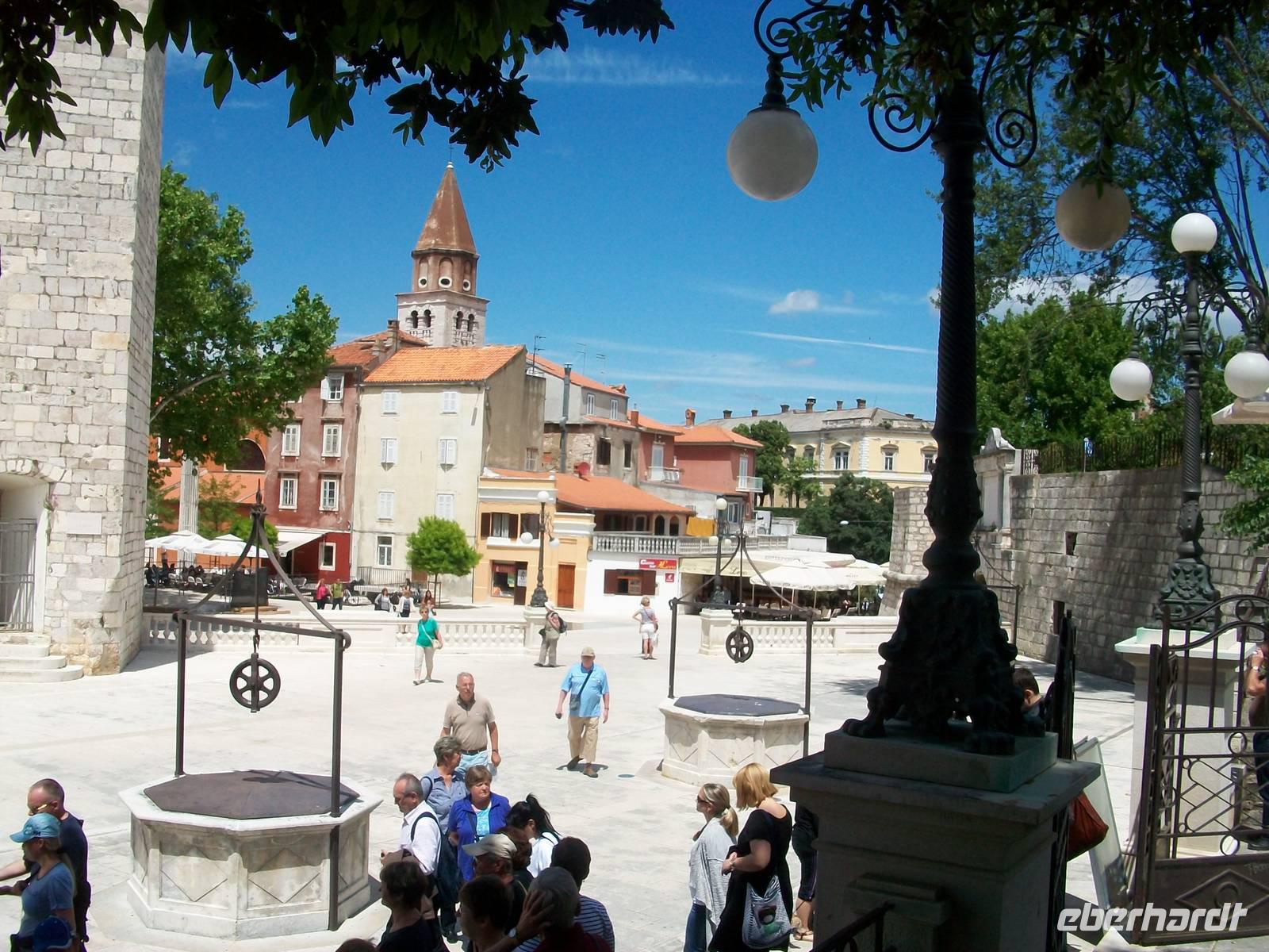 Danach bringt uns der kroatische Bus nach Zadar. Es ist eines der interessantesten Orte in Dalmatien und hat eine lange Geschichte die bis in griechische Zeiten zurückgeht. Hier werden wir schon von Edi unserem Stadtführer erwartet. Wir kennen uns schon viele Jahre und die Qualität seiner Führungen ist immer exzellent, kein Wunder, als studierter Kunsthistoriker steckt er sozusagen direkt im interessanten Metier drin.