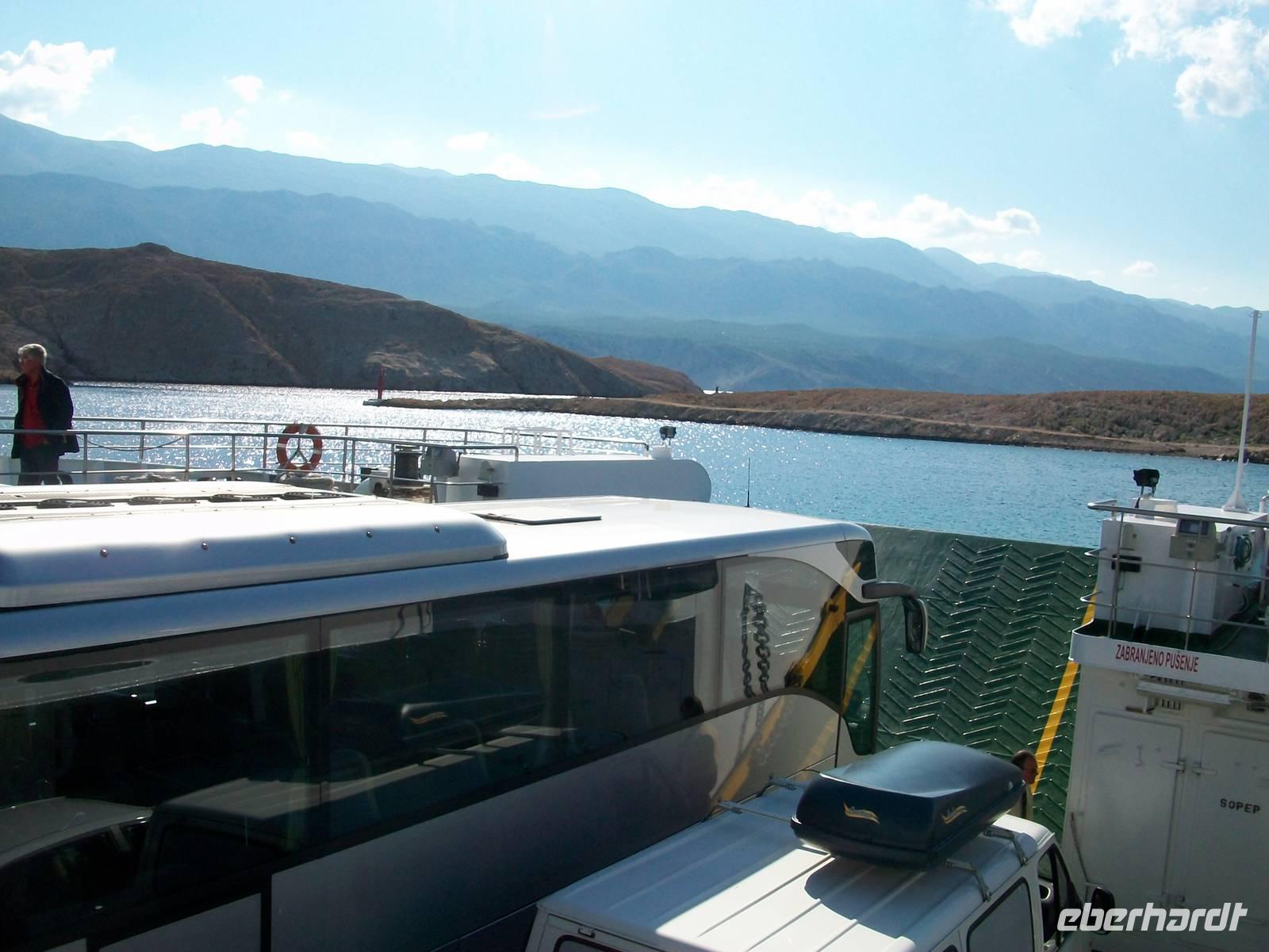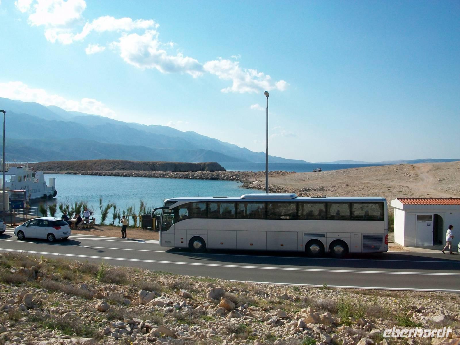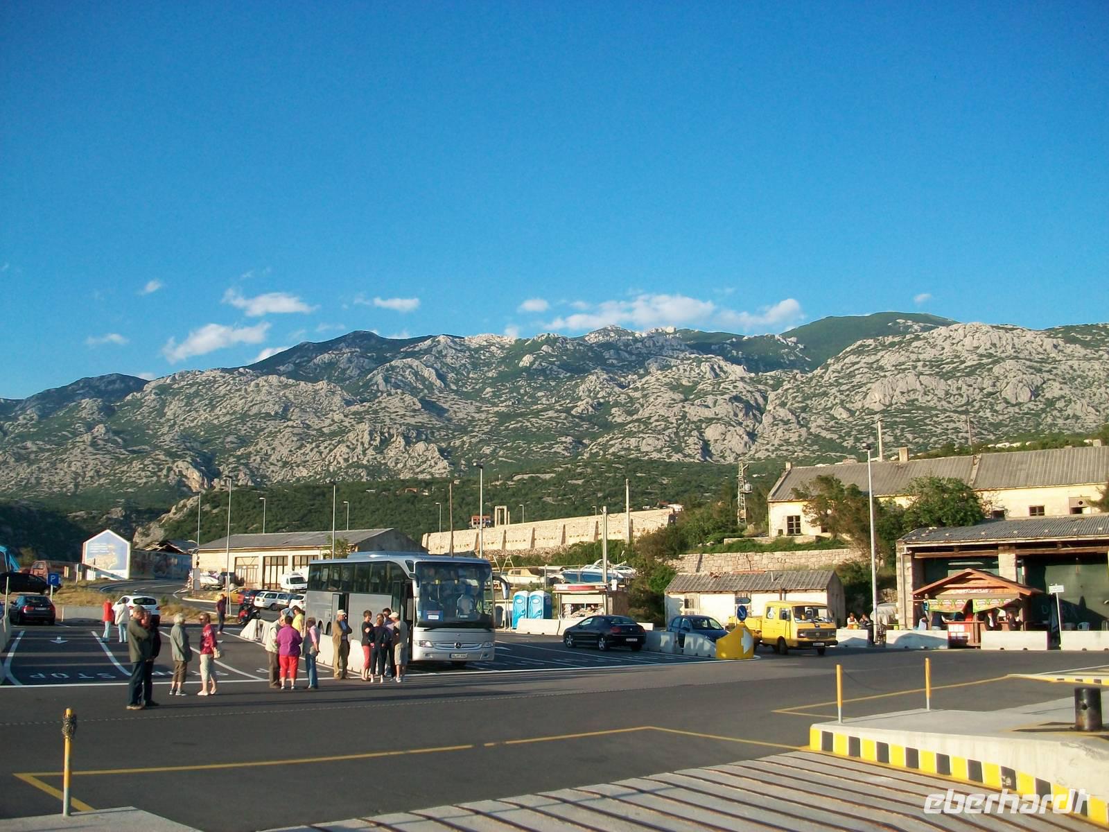 Als wir von Rab starten werden wir noch einmal von der Sonne verwöhnt. Pünktlich können wir mit der Fähre ans Festland übersetzen und entlang des Velebitgebirges geht es in nördlicher Richtung. Abermals einen überwältigenden Eindruck können wir auf dieser Fahrt genießen: das dunkelblaue Wasser der Adria steht im Kontrast zu den kahlen Inseln und deren heller Kalkstein wird von der Morgensonne beschienen.
