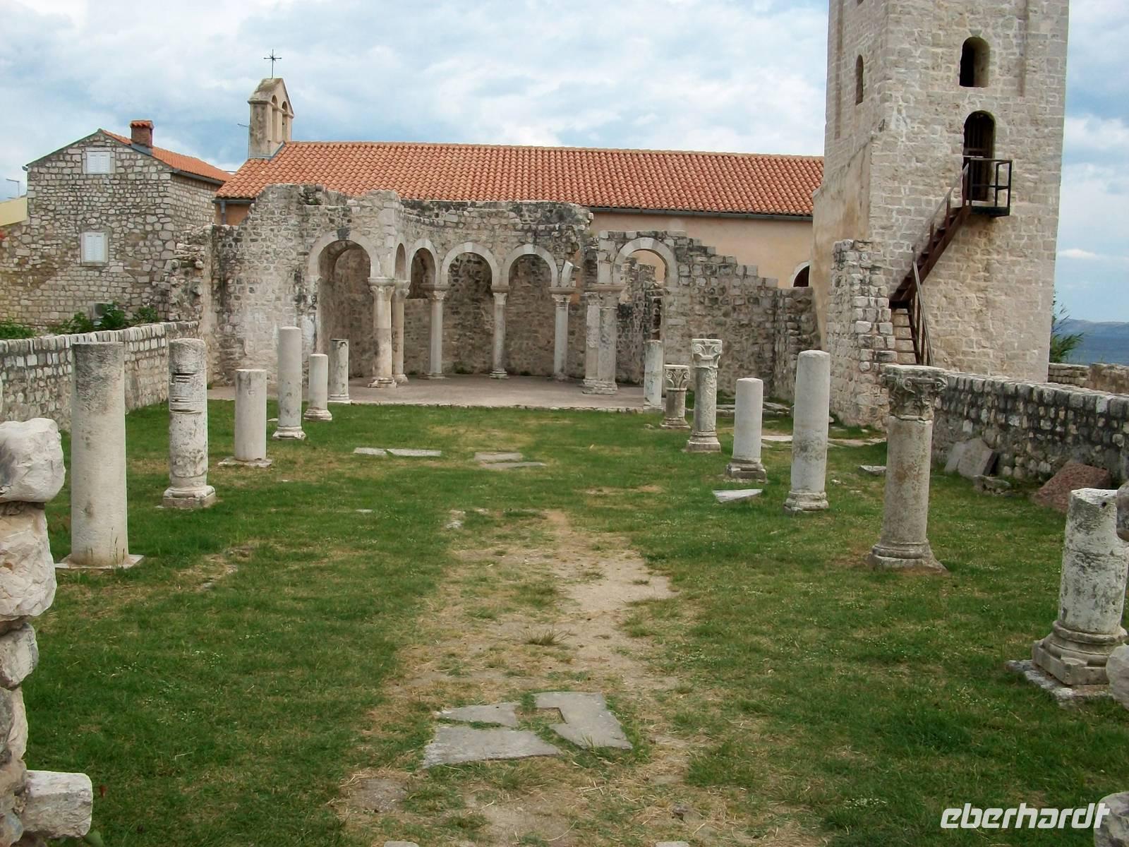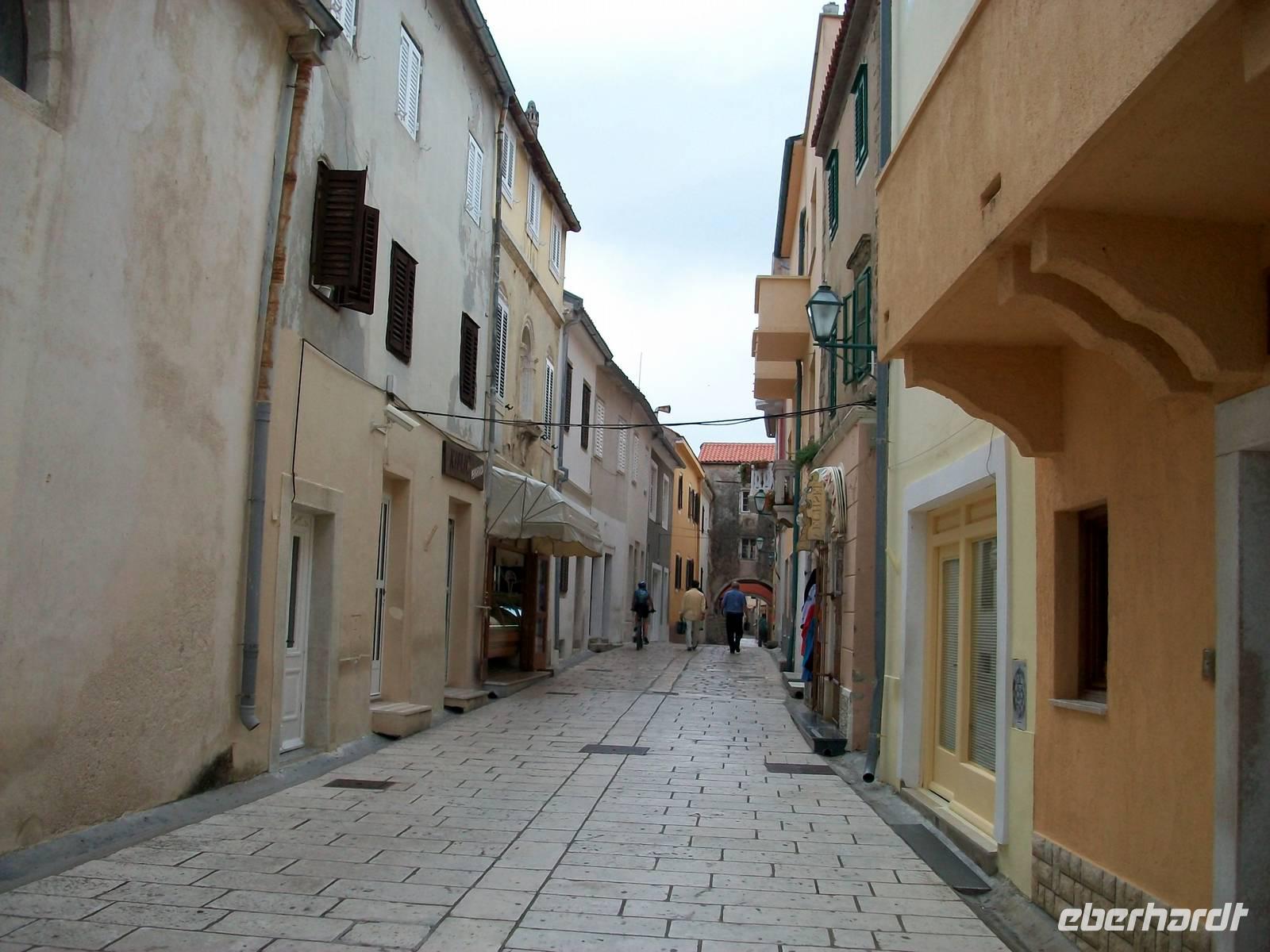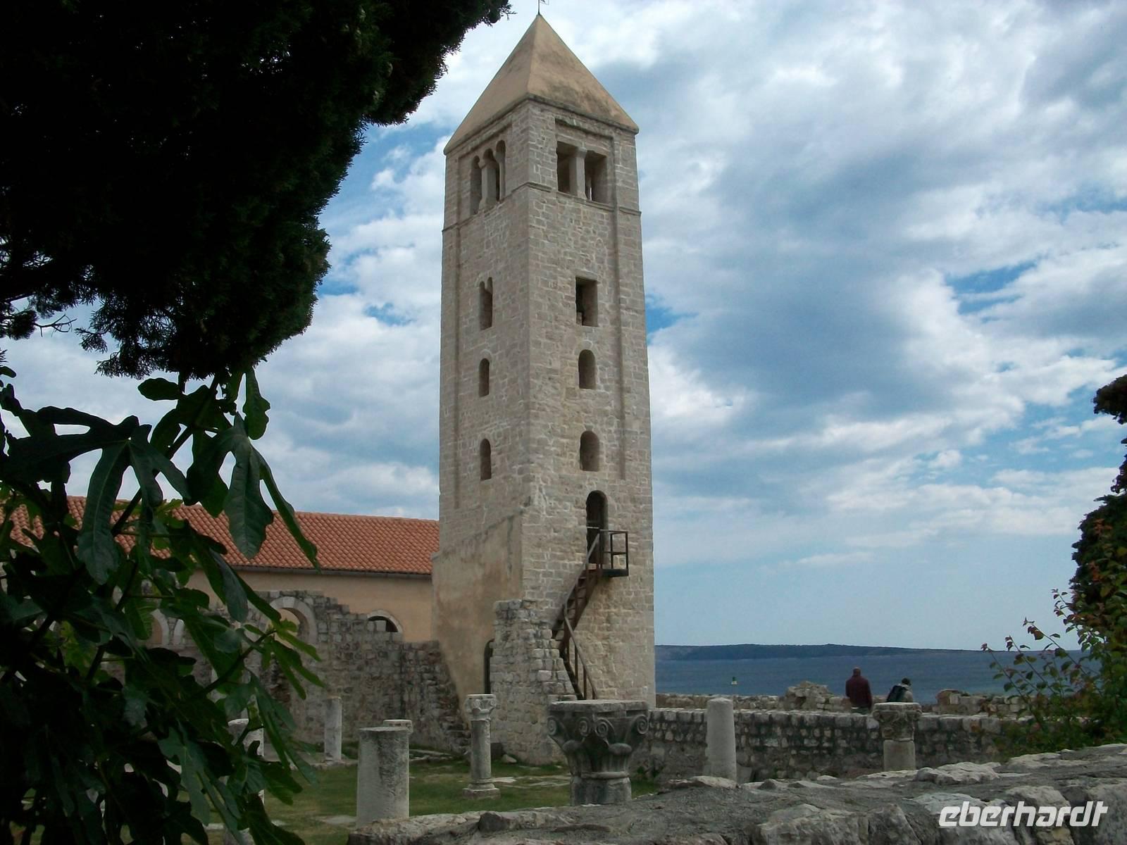 Wir gelangen über die Stufen die vom Hotel hinunter führen an das Hafenbecken von Rab. Hier sind viele Ausflugsboote festgemacht, unser Weg führt aber hinauf zur Altstadt. Entlang der unteren Gasse führt uns der Spaziergang entlang zahlreicher Souvenirbuden, schön ist aber auch hier die Architektur anzuschauen. Am hinteren Ende der Stadt sehen wir das Denkmal von Marin, er begründete einst den Ort San Marino, er stammt von hier. Der Weg führt uns aufwärts; wir kommen an den Klöstern vorbei, erblicken die Kathedrale und da heute Sonntag ist, sehen wir die Gläubigen zur Heiligen Messe gehen. Am Aussichtspunkt mit der Freiheitseiche schauen wir auf das Meer und die Inseln und erleben solcherart einen schönen Vormittag.