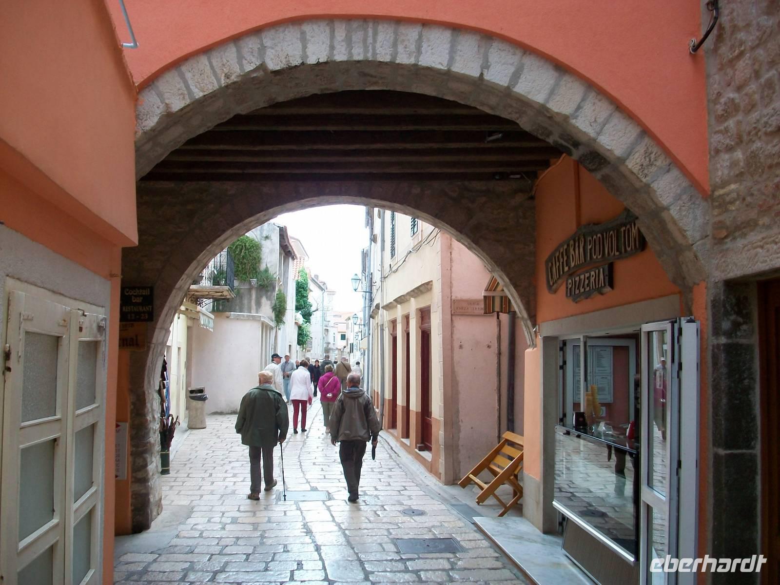 1.6.2014. Über Nacht ist die wilde Bora erwacht, sie heult und bläst in Sturmesstärke um das Hotel. Doch das stört uns nicht, nach dem stärkenden Frühstück hat sich unsere Reisegruppe versammelt um mit einem Spaziergang die Altstadt von Rab zu erkunden. Auch heute haben wir einen örtlichen Reiseleiter, es ist mein Kollege Viktor der uns nun auf ganz eigene und authentische Art seine Heimat näher bringen wird.