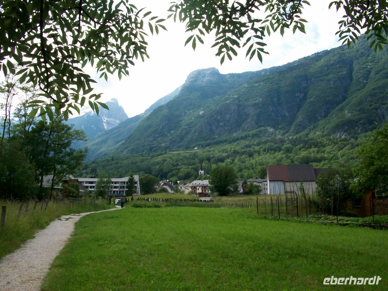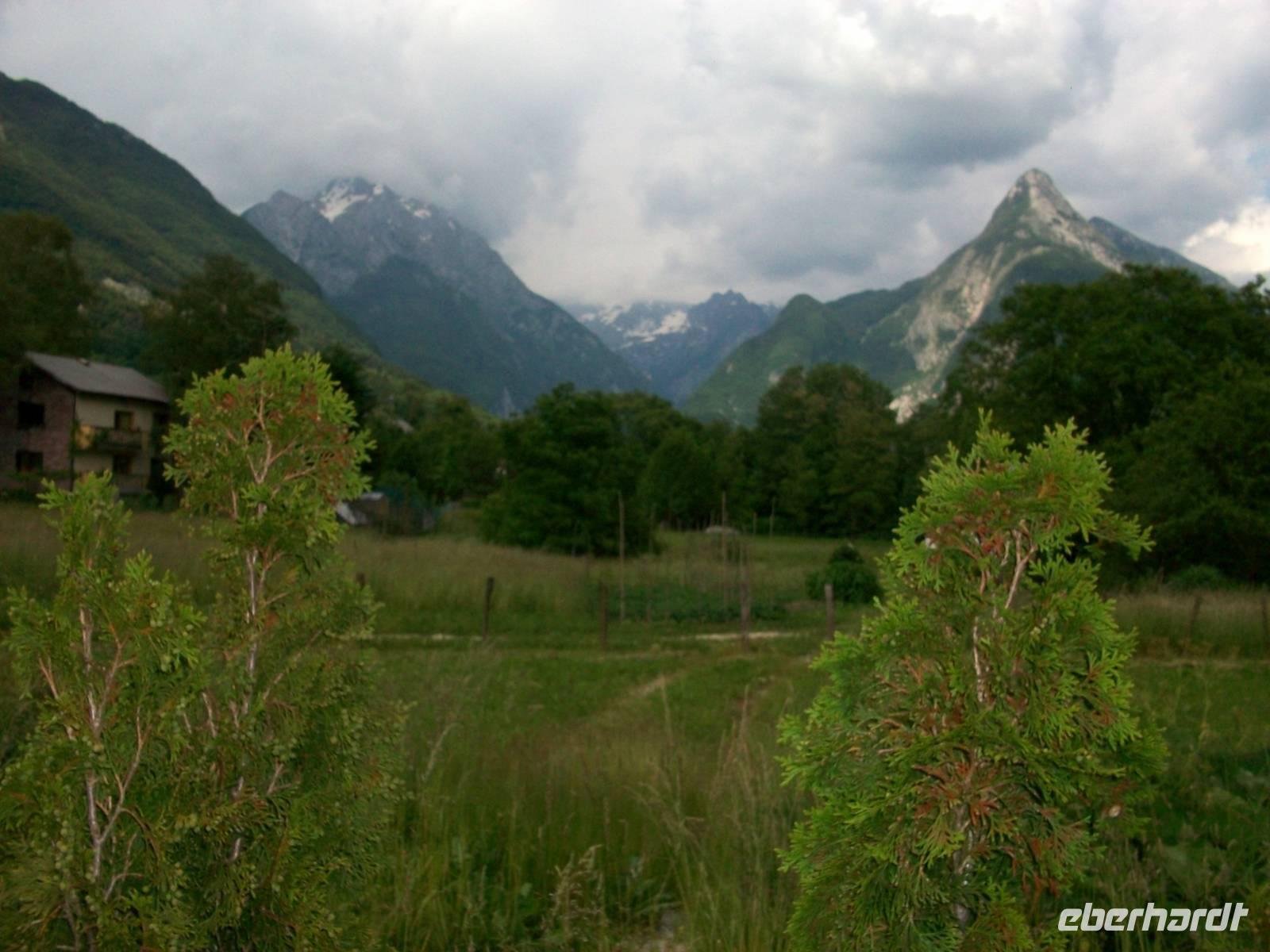 Bald öffnet sich das Tal zu einem breiten Talkessel und wir kommen in Bovec an, unserem heutigen Ziel. Vor dem Abendessen haben wir nun noch genügend Zeit diesen reizvollen Ort zu erkunden der umgeben ist von den mächtigen 2 000ern der Julischen Alpen.
