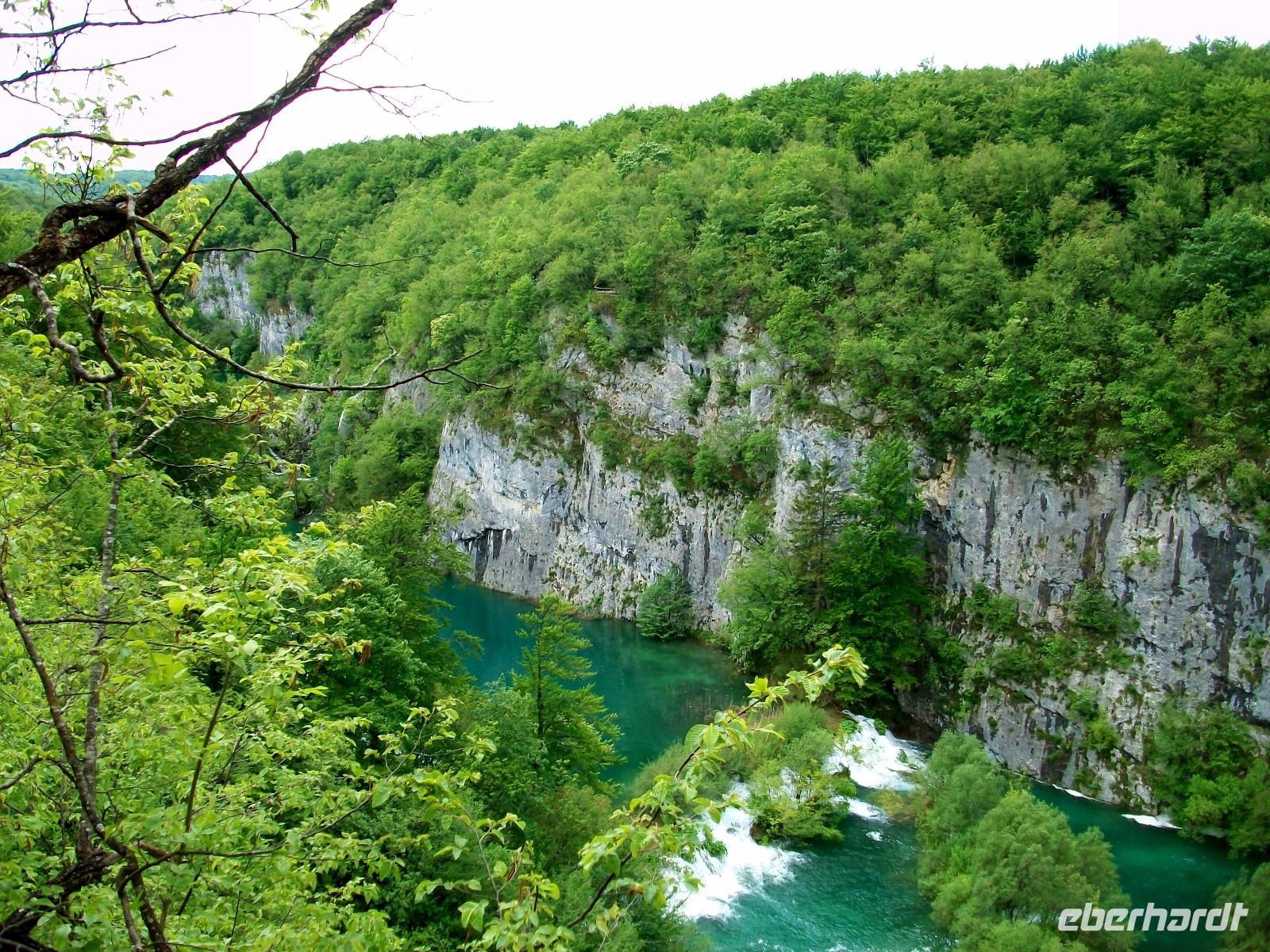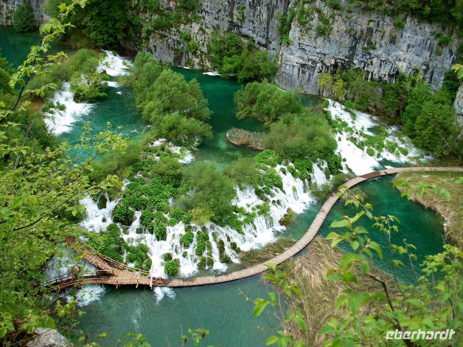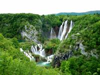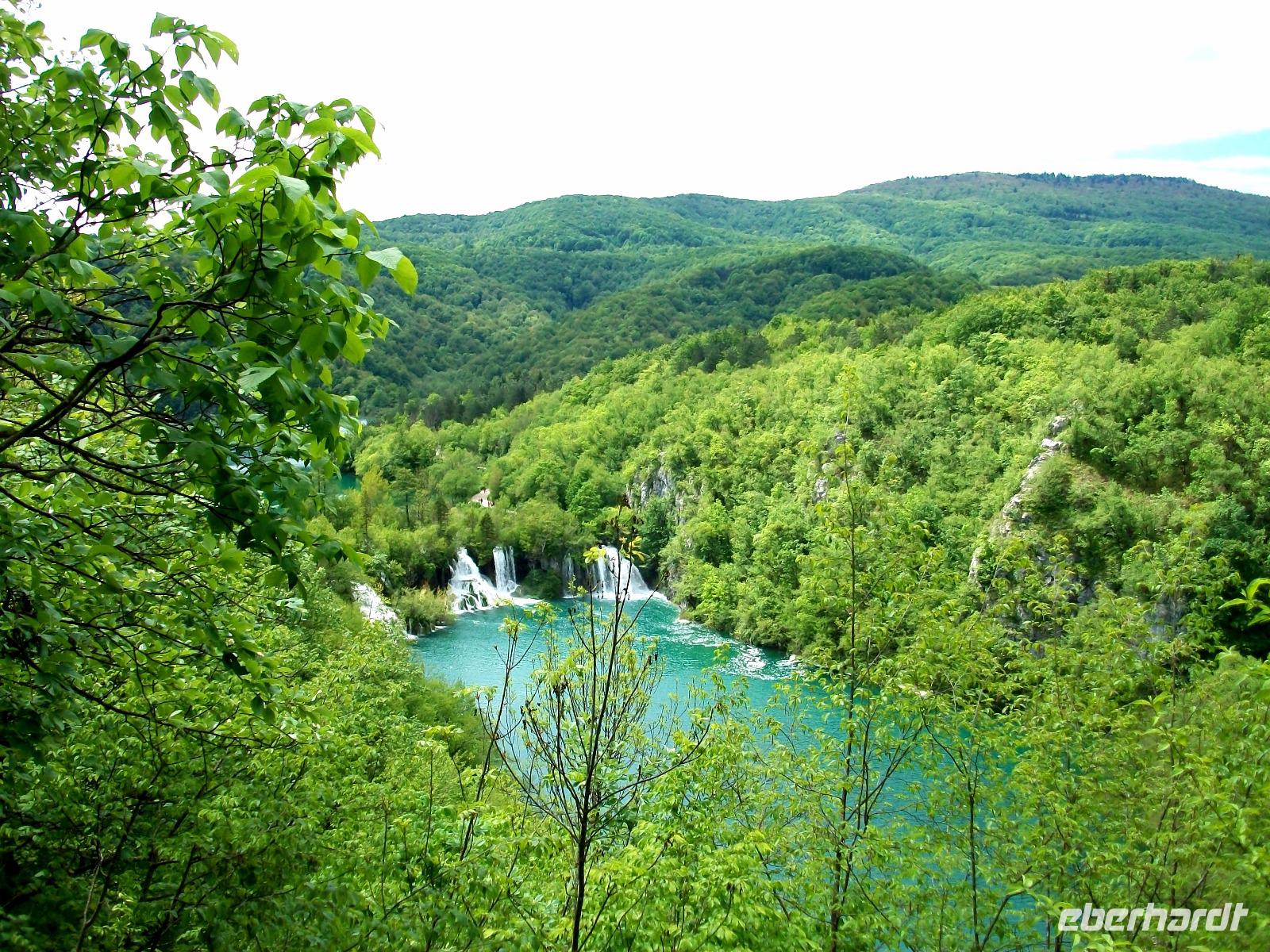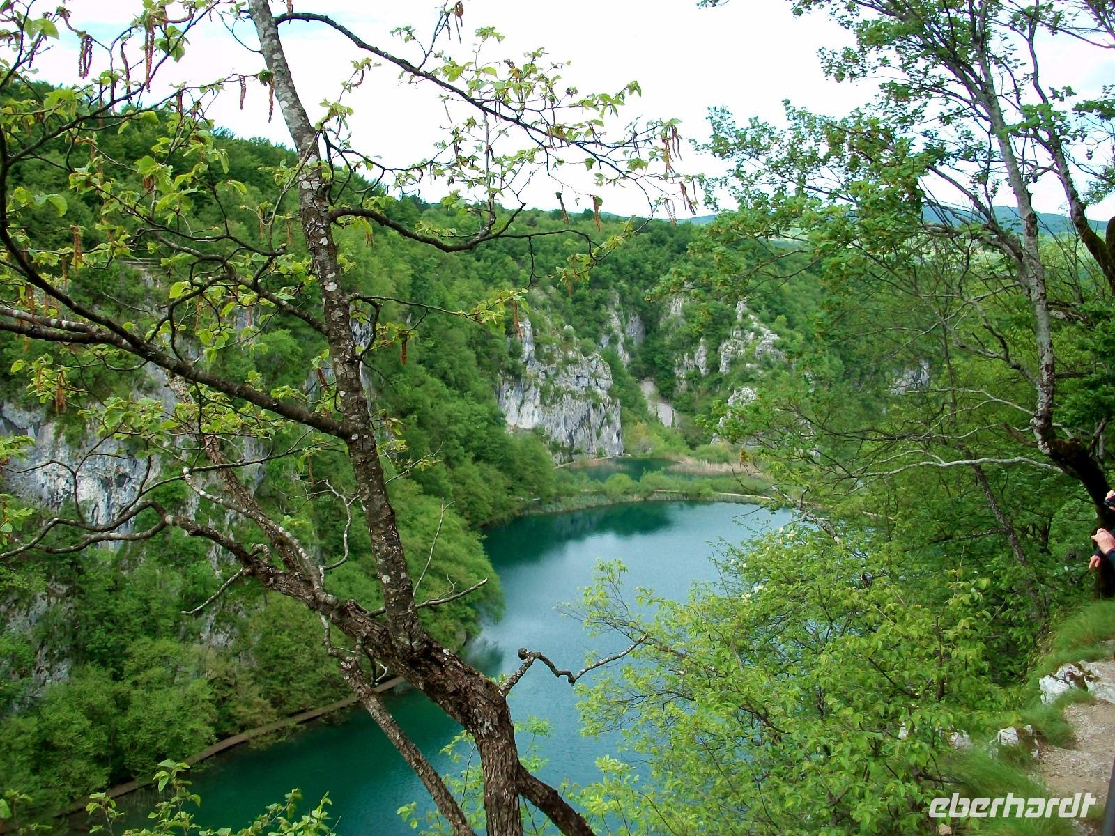 Nach einem kleinen Mittagsimbiss werden wir von Helena, unserer Parkführerin abgeholt und mit ihr werden wir nun das UNESCO - Weltnaturerbe der Plitwitzer Seen erkunden. Zunächst geht es oben entlang, die Wege im Tal sind wegen des Hochwassers gesperrt, aber von hier haben wir dennoch grandiosen Aussichten auf die türkisfarbenen Seen mit den zahlreichen Kaskaden und hier hoch über dem Tal ist auch das mächtige Rauschen des Großen Wasserfalls zu hören.