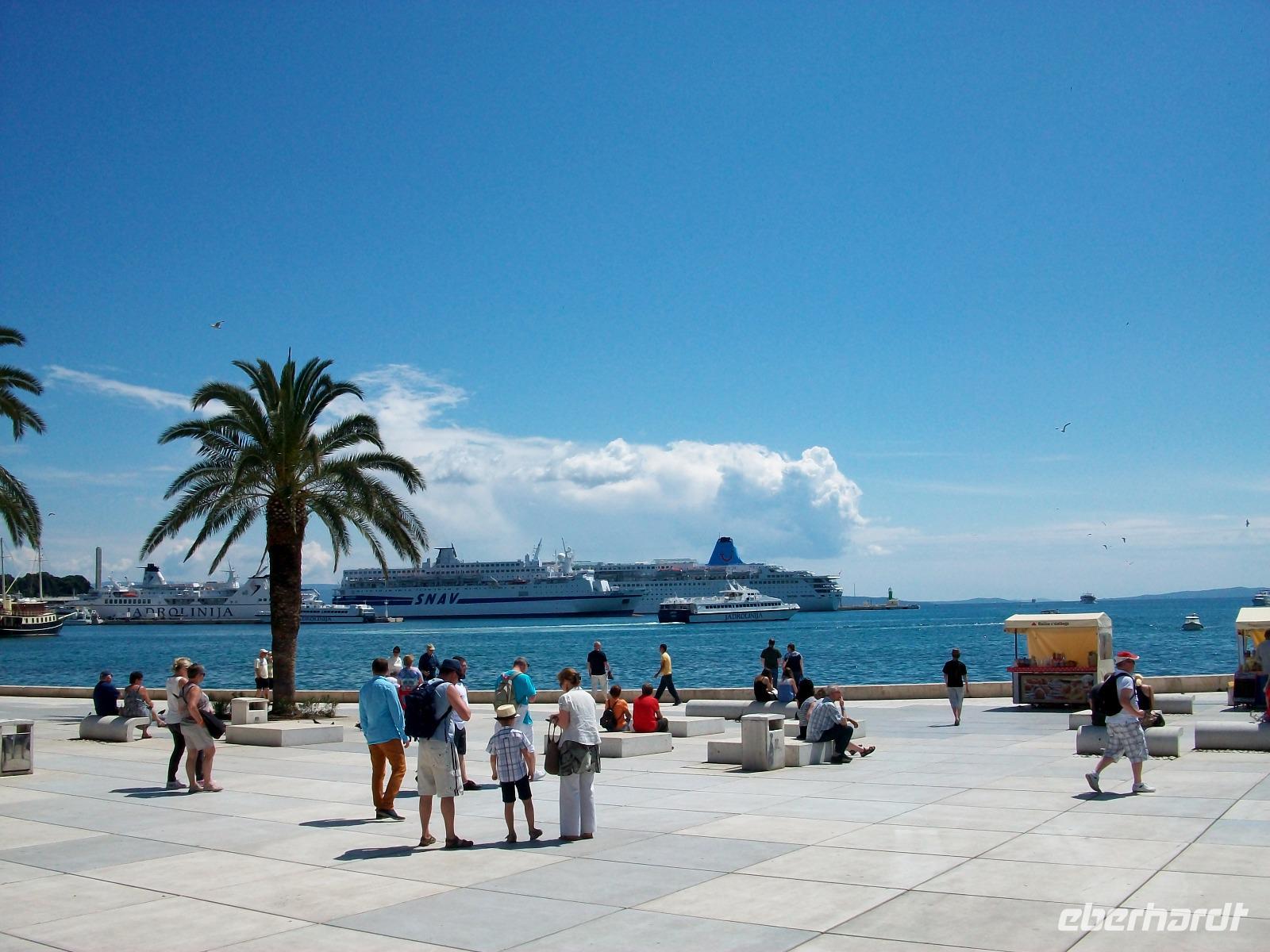 Unser erstes Ziel heißt Split; hier baute sich einst der Römische Kaiser Diokletian seinen Palast, auf seinen Spuren wandeln wir und drehen dabei die Zeit um runde 1 700 Jahre zurück. Mächtige Kalksteine sind hier verbaut und oben, in den historischen Häusern einer anderen Zeitepoche, herrscht ein munteres Treiben an diesem Frühsommertag.