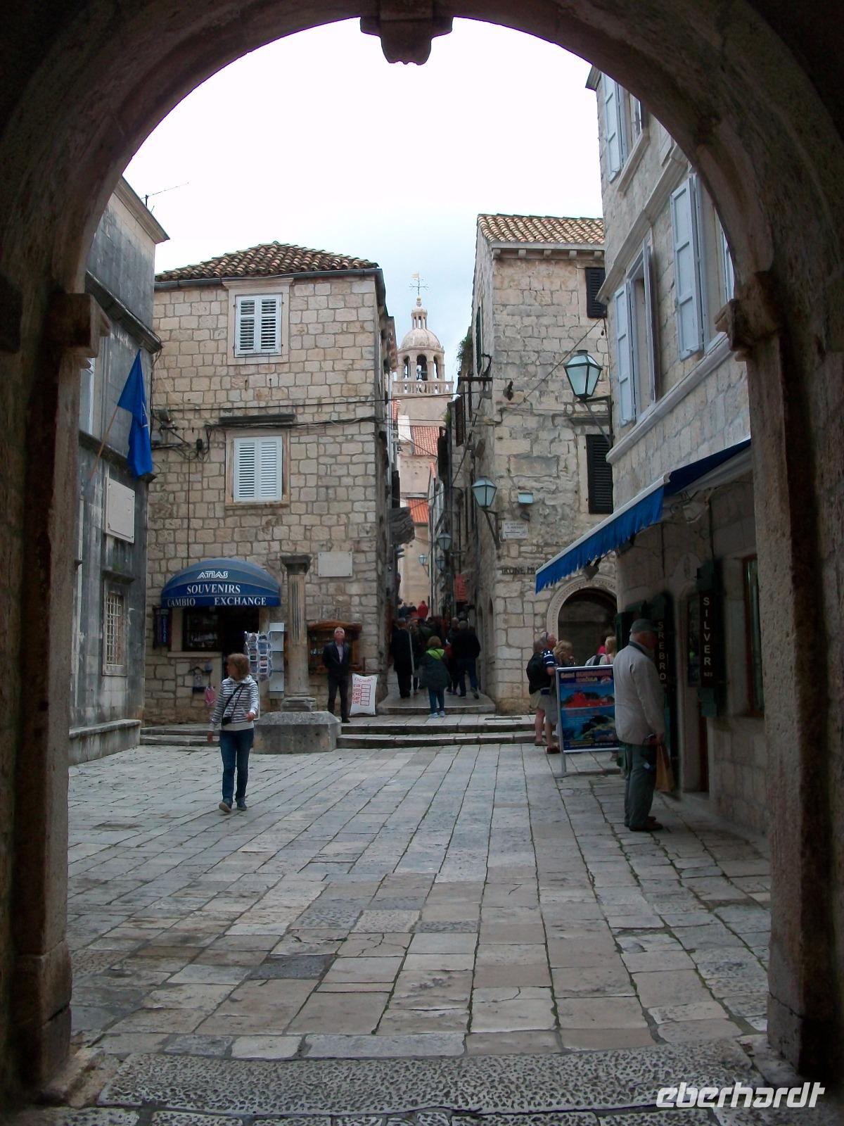 Dann gelangen wir entlang der sehr üppigen mediterranen Vegetation und den Weingärten nach Orebic, hier setzen wir dann gegen halb zwölf mit der Autofähre über, unserem Ziel entgegen, der Insel Korcula. Im Ort Korcula selbst werden wir von unseren Stadtführer Lujo in Empfang genommen und mit ihm erkunden wir in sehr origineller Art diesen einmaligen Ort mit seinen schmalen Gassen, der Kathedrale und nähern uns dem historischen und alltäglichen Leben hier in den schön eingerichteten Museen.