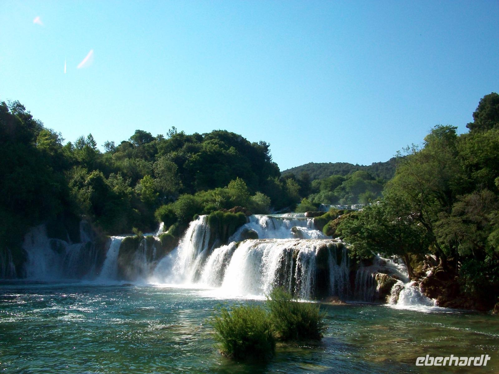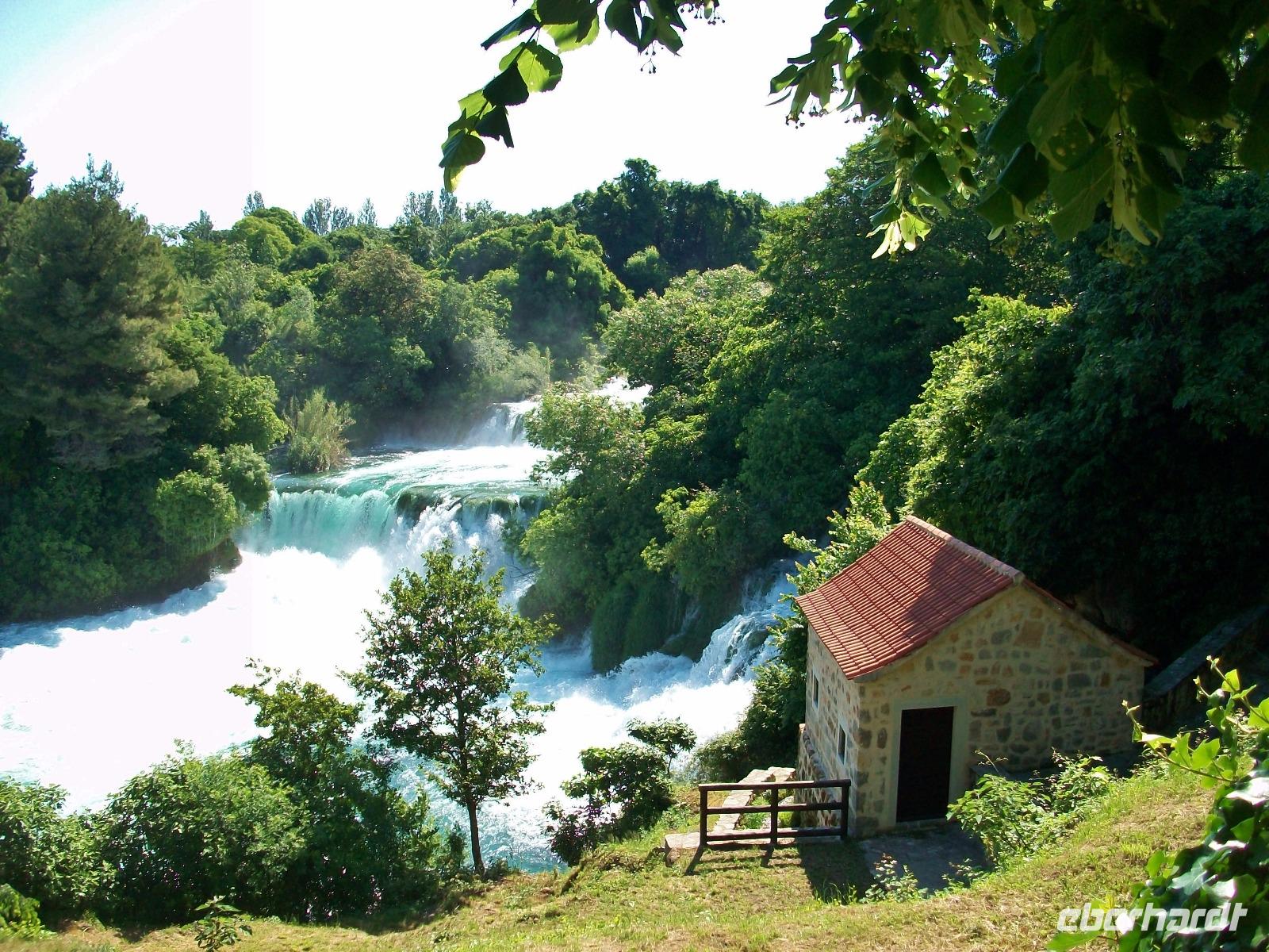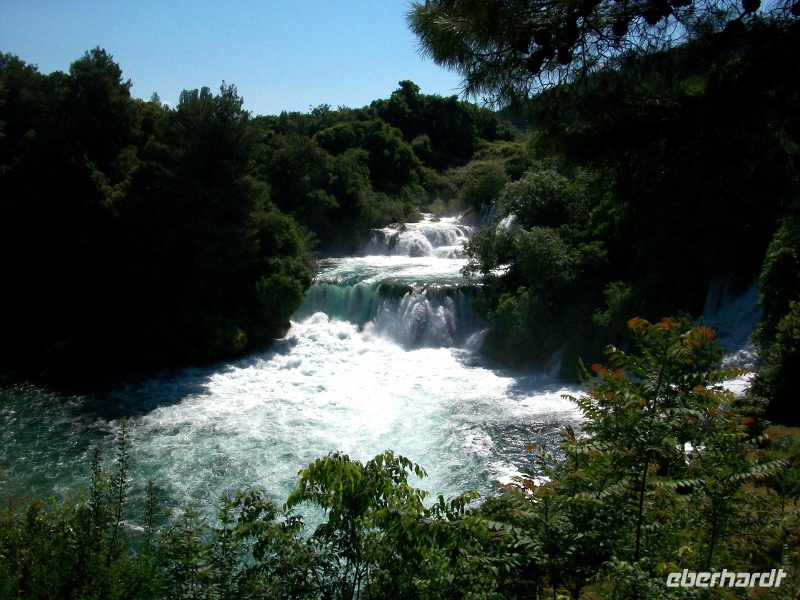 Wir starten früh und liegen dabei goldrichtig; im Park ist es noch ganz ruhig und wir beginnen ohne Hektik unseren Rundgang. Nach einem kleinen Abstieg stehen wir unterhalb des Skradinski Buk, von der Brücke sehen wir wie uns die Wassermassen entgegendonnern, feiner Niesel netzt unsere Haut und wir staunen über dieses Naturwunder. Über Wege und Knüppeldämme umrunden wir den Fall und sind dabei immer mittendrin im rauschenden Element. Nach einer guten Stunde stehen wir wieder am Ausgangspunkt und in der individuellen Freizeit entstehen weitere schöne Bilder.