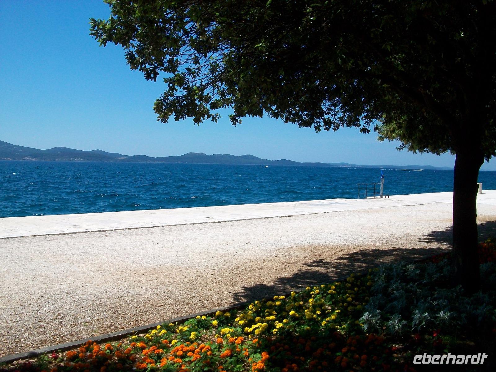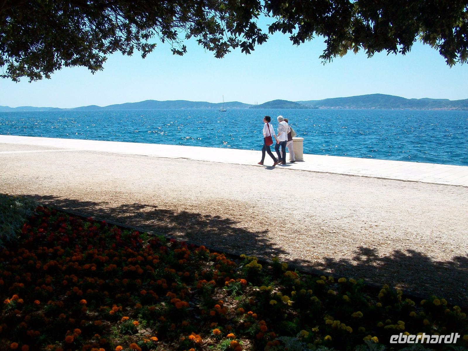 Über Mittag gelangen wir durch das Hinterland nach Zadar. Wir besuchen erneut auf unserer Tour eine besondere Stadt und nun hat uns Petrus auch den Frühsommer zurück gebracht. Kein Wölkchen trübt den blauen Himmel als wir mit Maja, unserer Stadtführerin, aufbrechen und bald entlang der schönen Promenade all die Sehenswürdigkeiten bewundern können für die der Ort so berühmt ist.