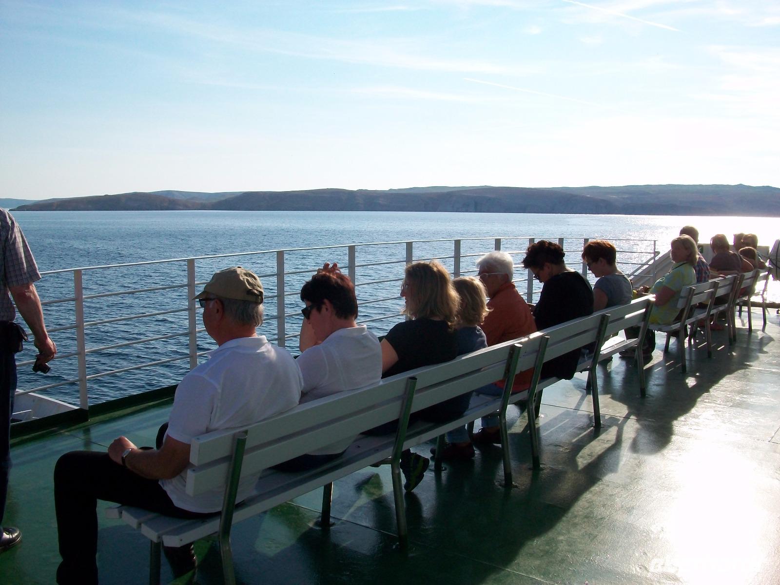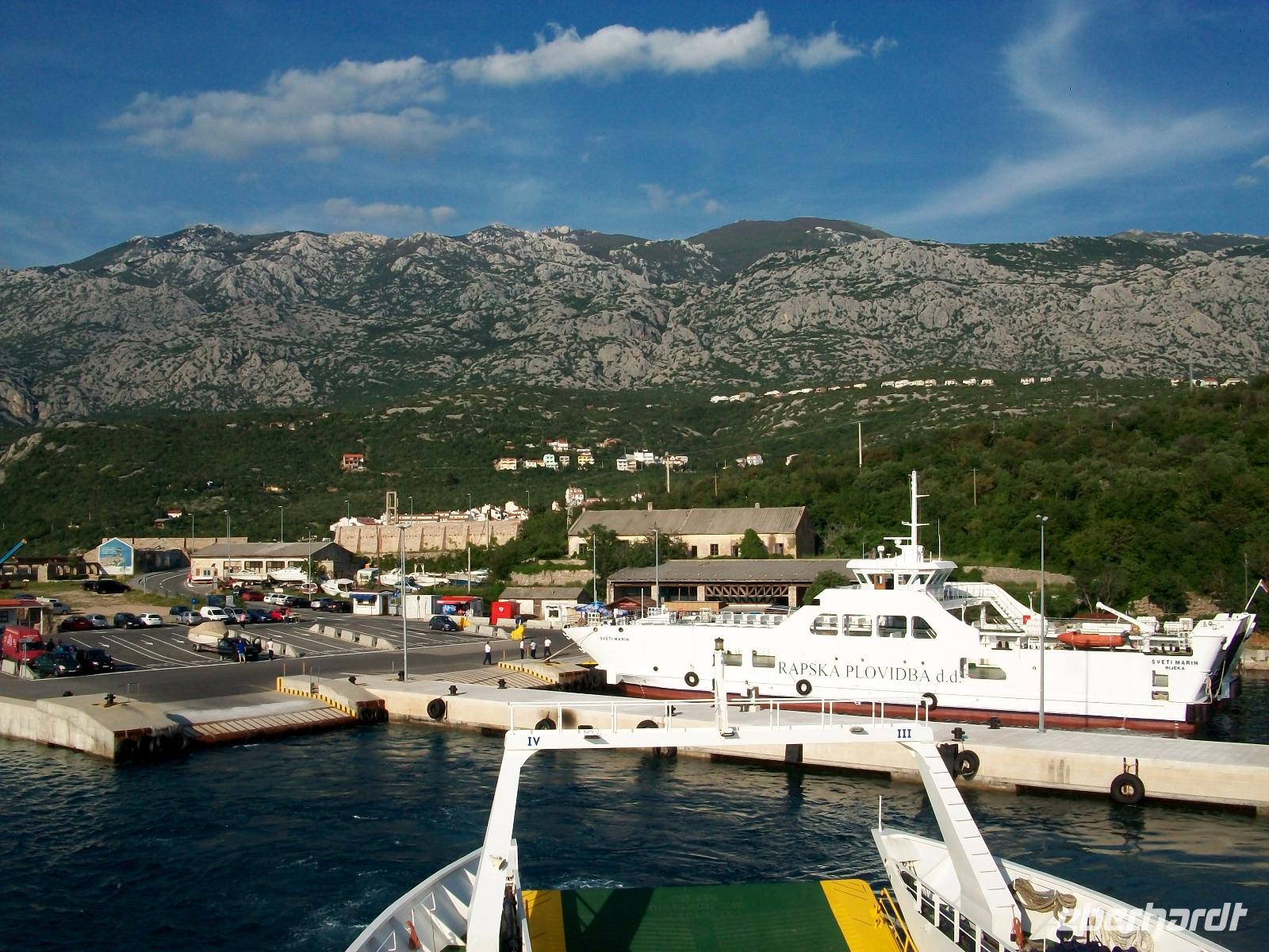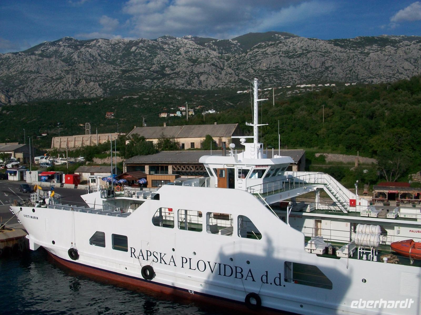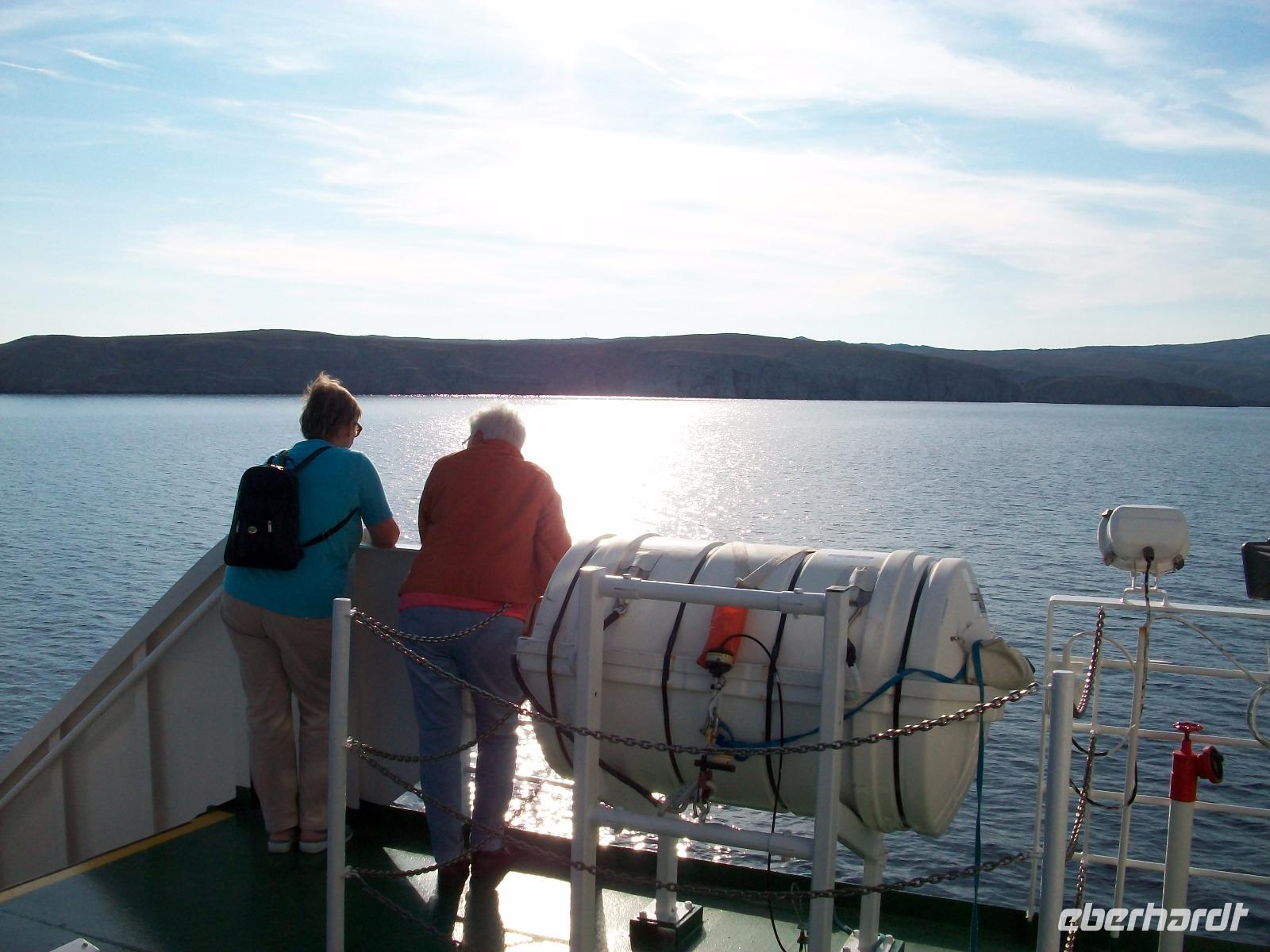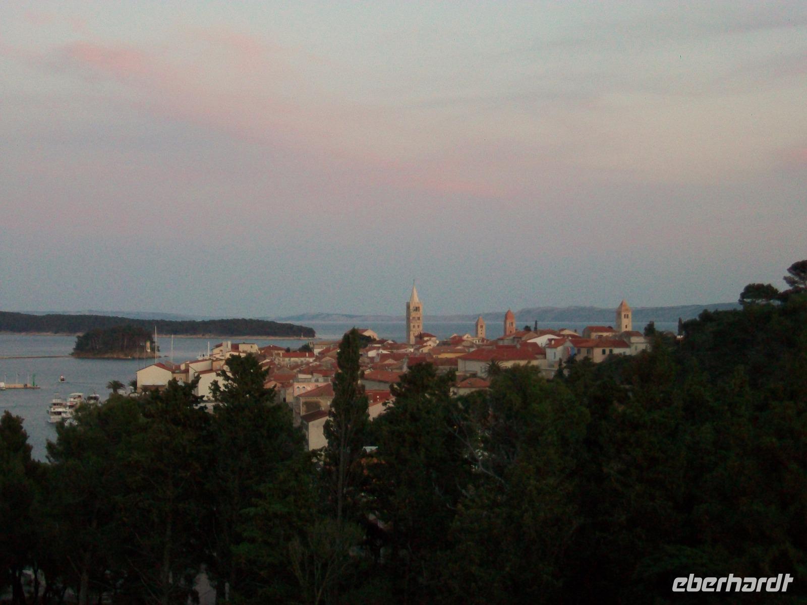15.15 Uhr. Nun müssen wir aber starten; entlang des mächtigen Velebitgebirges gelangen wir bald zur Fähre die uns auf die Insel Rab bringen wird. Die Überfahrt wird zum Genuss und kurz nach halb sieben gelangen wir zu unserem Hotel, welches unmittelbar über der Altstadt von Rab liegt.