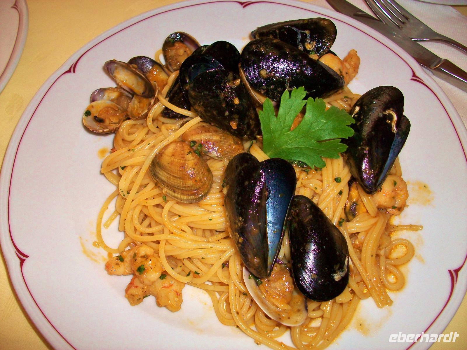 Wenig später haben wir im Bus Platz genommen und schauen uns in der nächsten guten Stunde Teile der Insel mit ihrem üppigen Grün an. Dann sind wir im Restaurant „Dionis" eingeladen; hier verbringen wir eine schmackhafte Mittgaspause mit frischem Fisch aus der Adria - unwiderstehlich lecker!