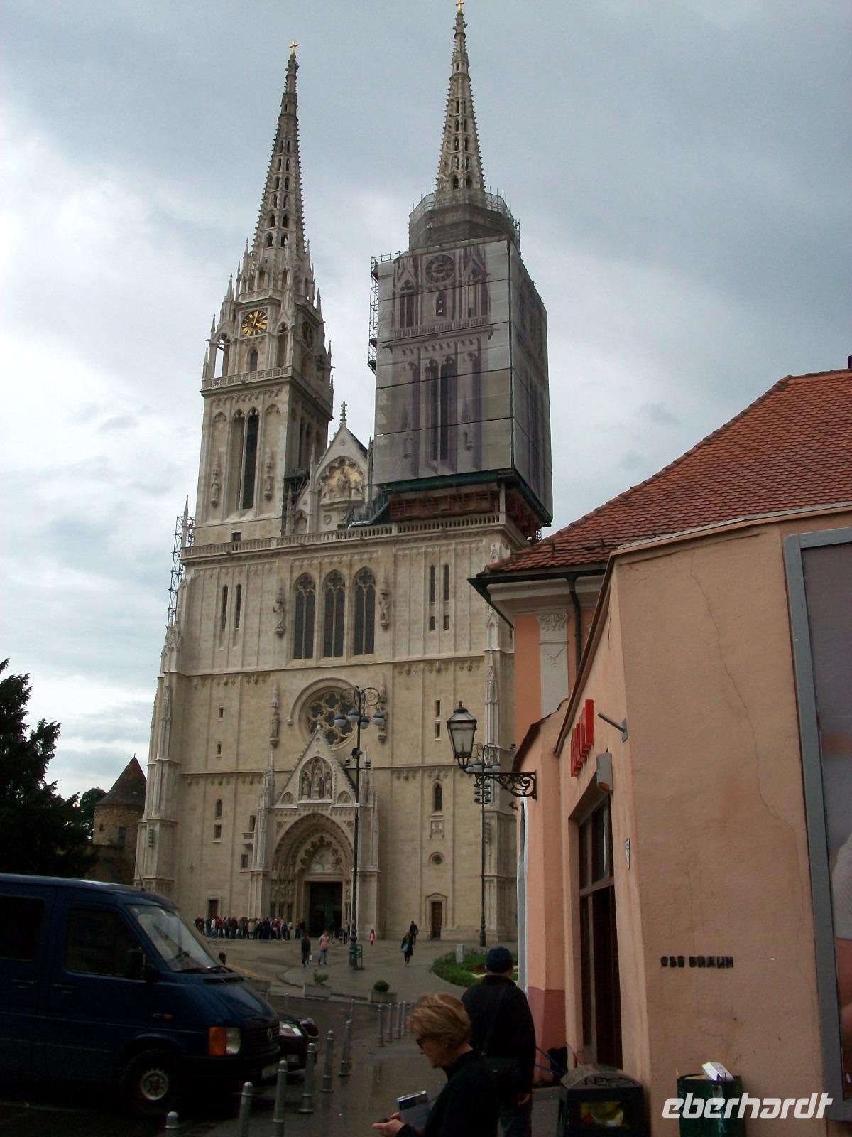 Gegen neun starten wir; unser Weg führt uns bald in flacheres Land und hinüber nach Slowenien. Hier in der südlichen Steiermark wird Wein angebaut; als wir an Maribor vorbei fahren sehen wir die Weinberge und wenig später die junge Saat die auf dem Draufeld grünt. Dann ist die Grenze zu Kroatien erreicht und wir müssen uns einigen Kontrollen unterziehen, aber das geht doch recht schnell. Ohne größeren Zeitverlust gelangen wir nach Zagreb und zum vereinbarten Treffpunkt mit der Stadtführerin. Hier, an unserem Hotel, können wir auch die Gäste begrüßen die mit dem Flugzeug angereist sind und nunmehr komplett, beginnen wir mit der Erkundung der kroatischen Hauptstadt.