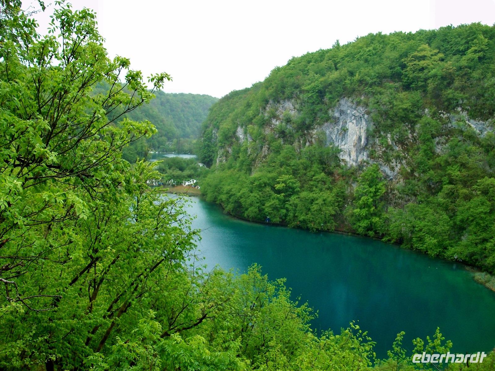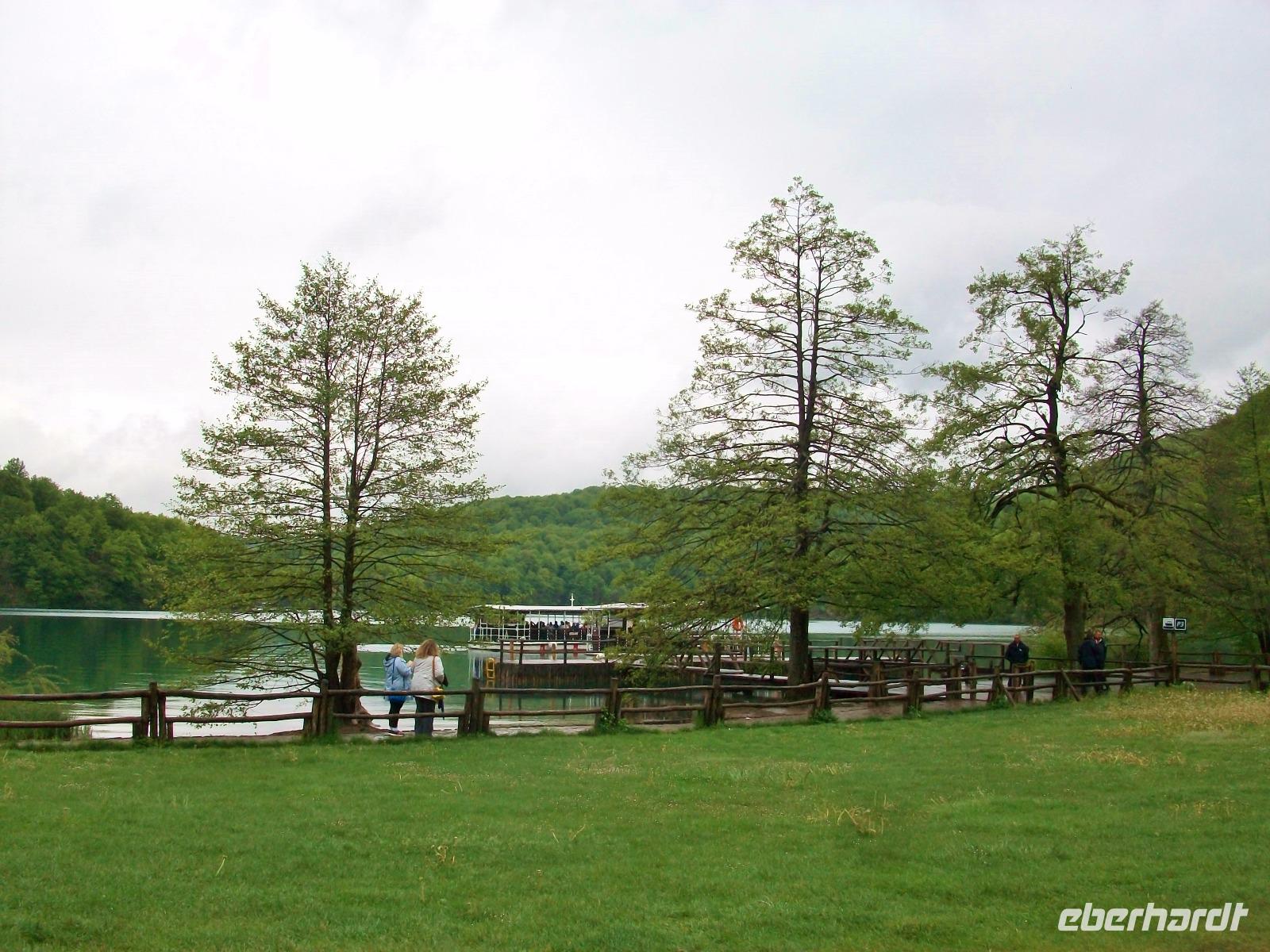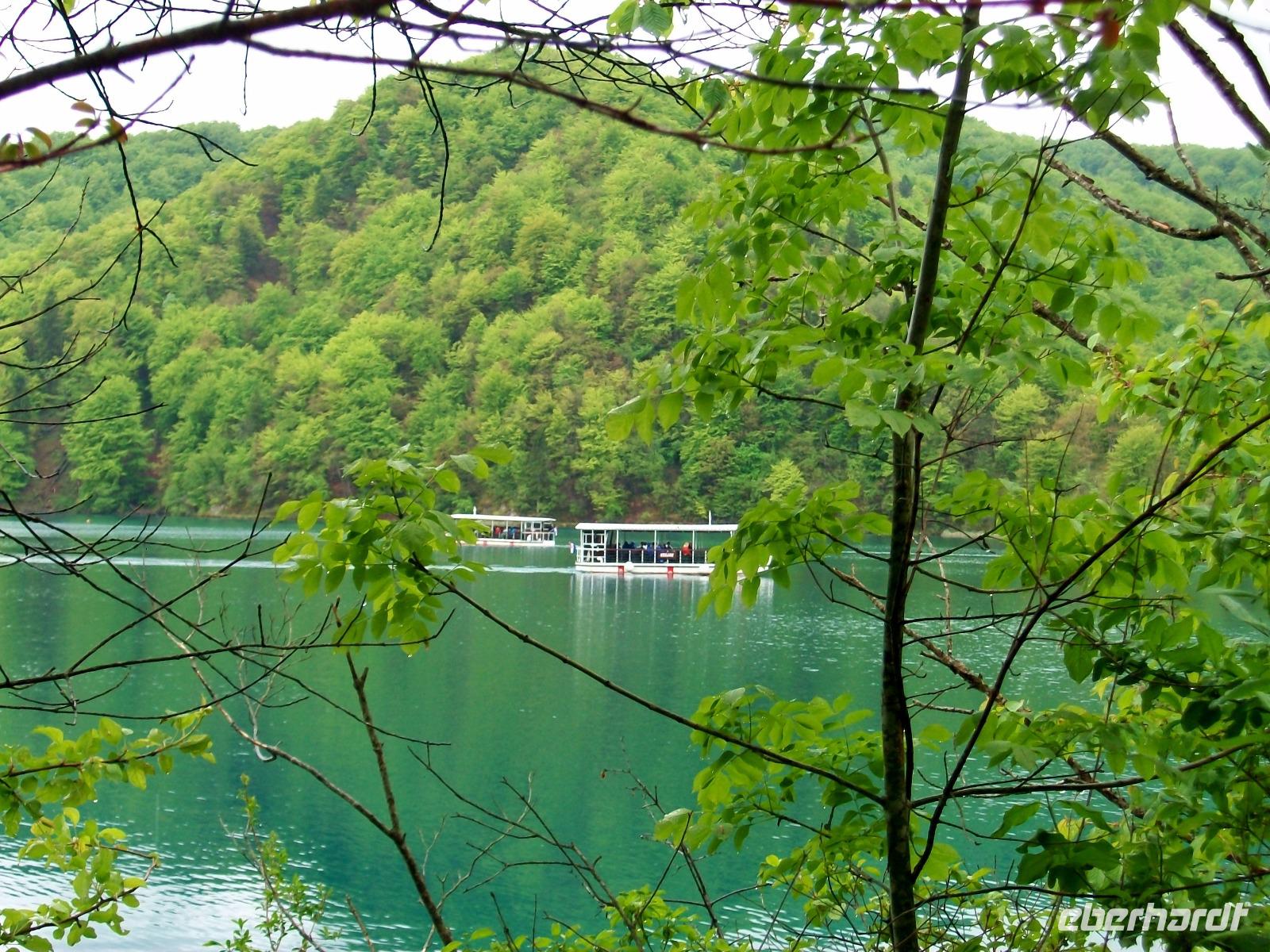 Dann beginnt der langsame Aufstieg; die Seen sind verbunden mit zahlreichen Kaskaden, leider kommt auch von oben noch etwas Regen. Als wir aber an der Bootsanlegestelle anlangen, hat es fast aufgehört und wir können die Bootsfahrt auf dem Koziak - See mit vollen Zügen genießen. Danach trennt sich unsere Gruppe; die einen gehen zum Hotel zurück, die anderen wagen den Aufstieg zu den oberen Seen und zum Abendessen sind wir alle wieder vereint. Es gibt viel zu erzählen, trotz des regnerischen Wetters war es doch ein erlebnisreicher Tag.