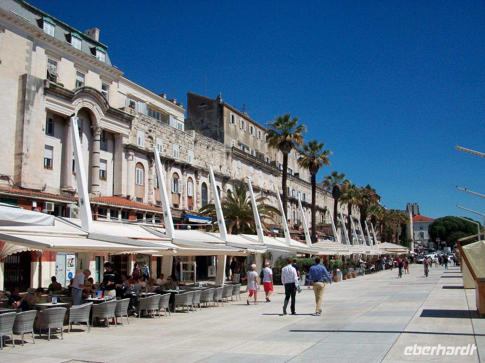 Bald jedoch gelangen wir hinunter zur Adria und in den bekannten Ort Split. Hier schauen wir uns den Palast des römischen Kaisers Diokletian an und stehen staunend vor den monumentalen Zeugnissen einer längst untergegangenen Zeitepoche die besonders in den Kellerräumen offenbar wird. Oben wurde eine mittelalterliche Stadt auf die römischen Fundamente gebaut, ein interessanter und einmaliger Mix. An diesem sonnigen Nachmittag gönnen wir uns noch ein wenig Freizeit, einen Kaffee auf der Promenade und den Bummel zum Hafen, Split hat viel zu bieten.
