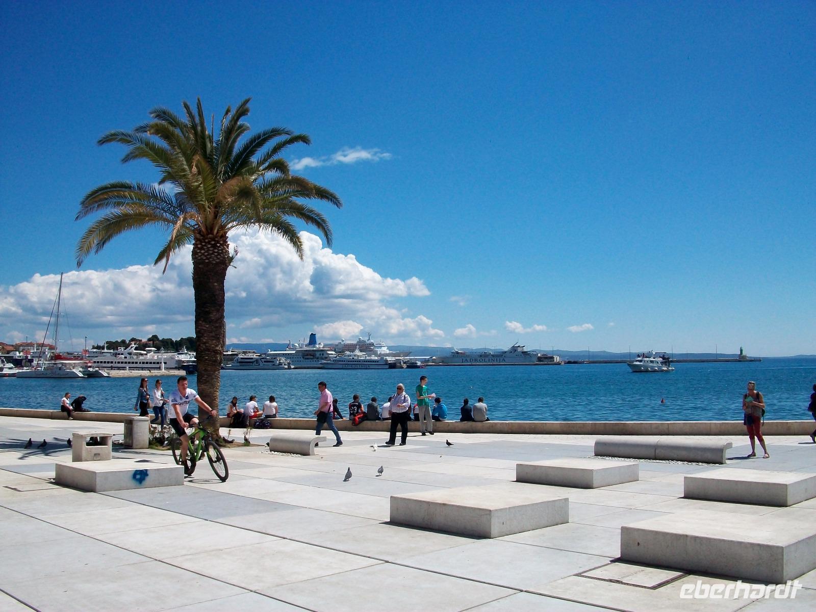 Aber wir sind unterwegs um neuen beeindruckenden Zielen im Traumland Kroatien entgegen zu fahren, gegen Mittag gelangen wir nach Zadar. In diesem einmaligen Ort haben uns die Bewohner aus mehr als 2 000 Jahren ihre Spuren hinterlassen. Wir beginnen aber im modernen Teil; vor gut zehn Jahren wurde direkt an der Promenade die Meeresorgel in Betrieb genommen, hier macht die Adria mit ihren Wellen Musik, faszinierend!