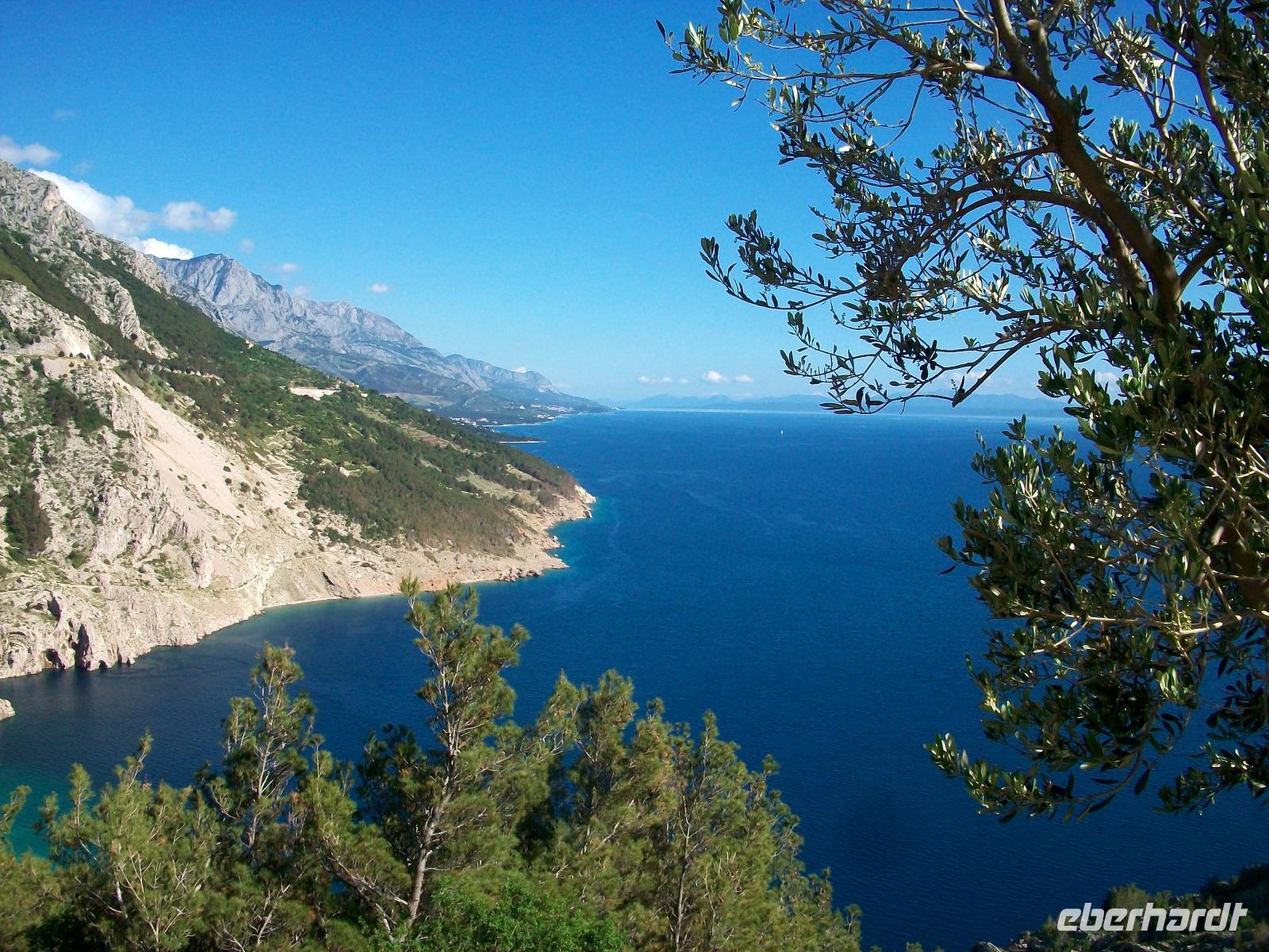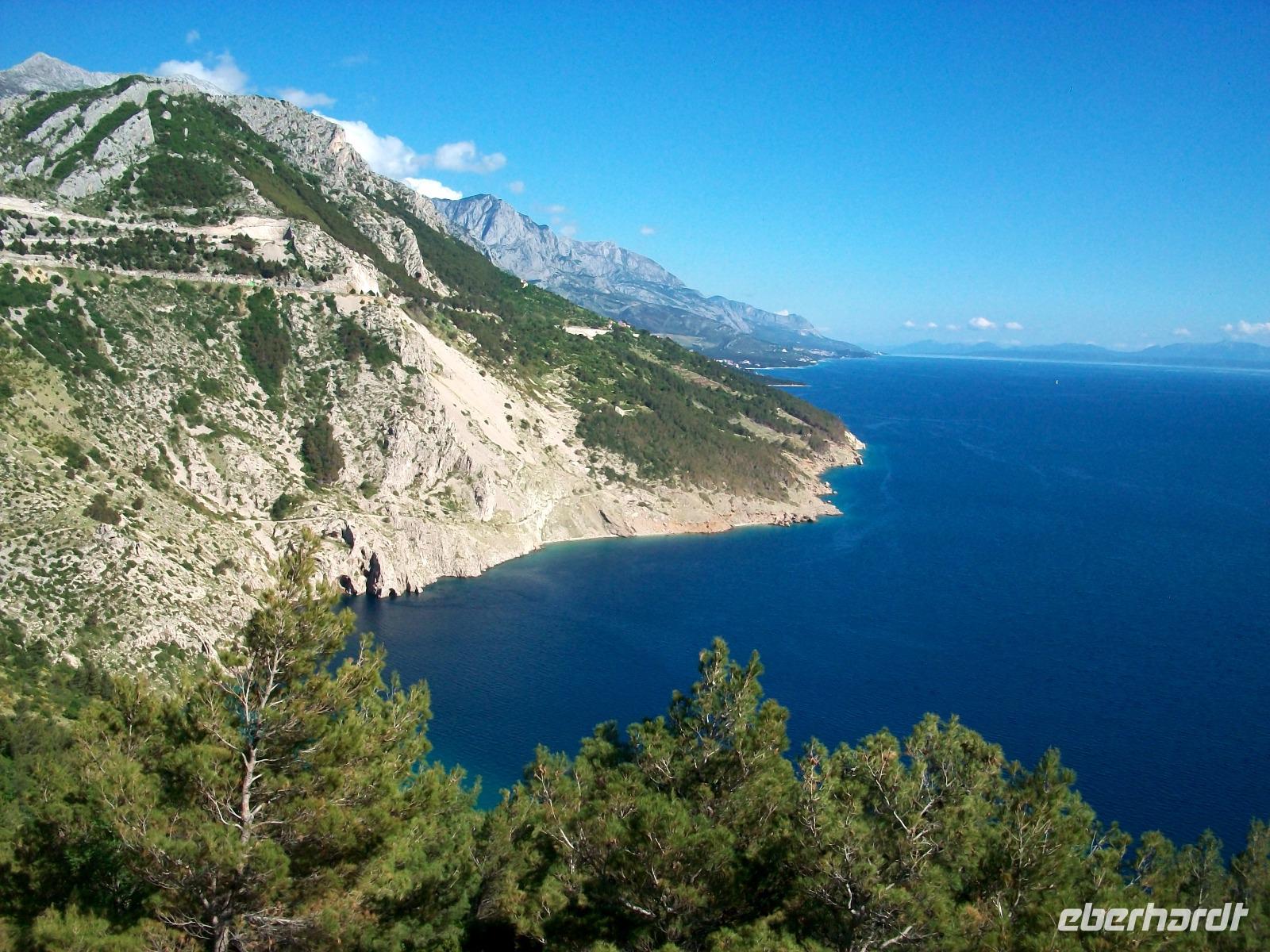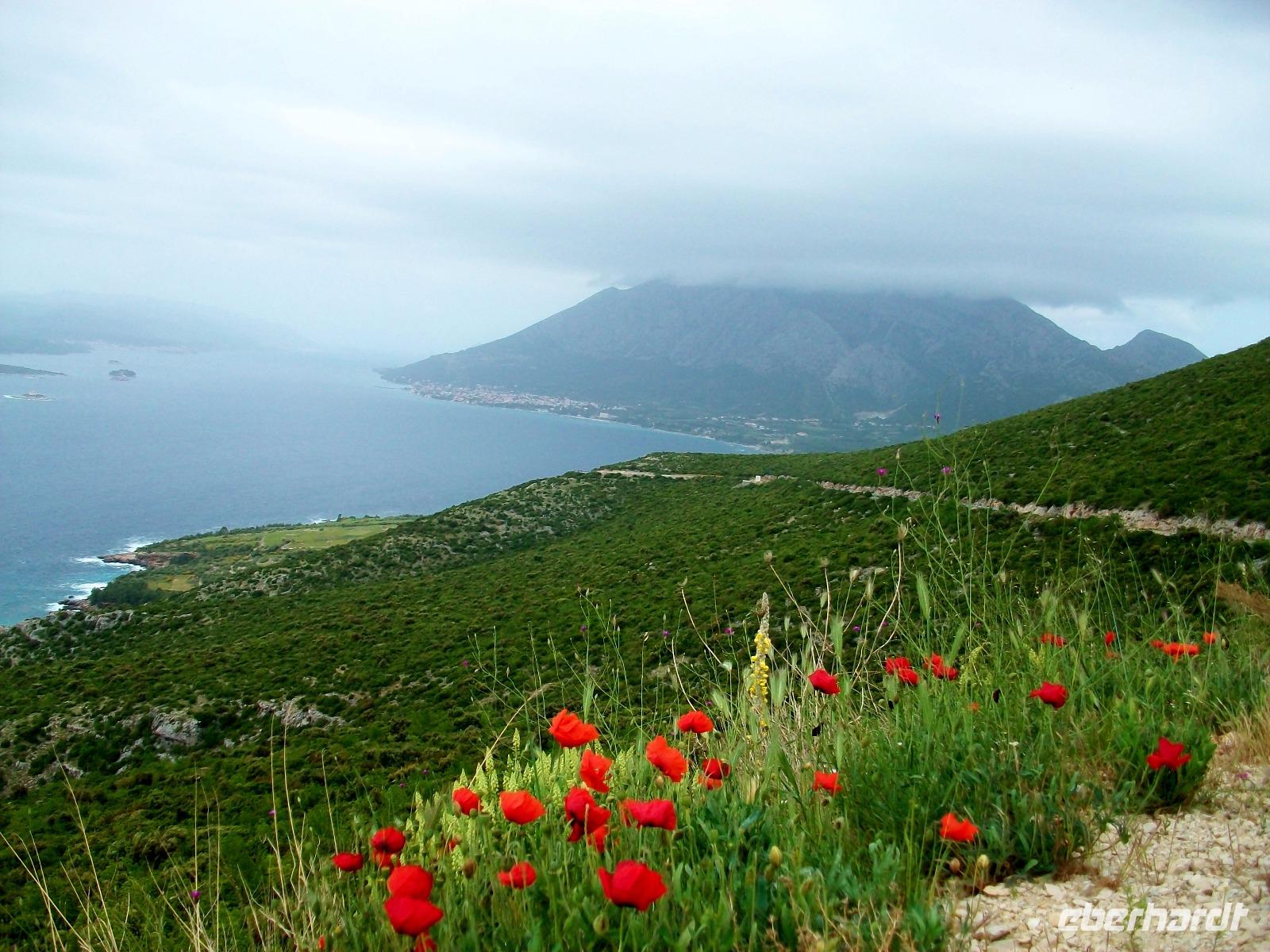 13.5.2017. Heute haben wir uns wieder eine etwas längere Strecke vorgenommen, doch zunächst soll uns die Fähre wieder hinüber zur Halbinsel Pelješac bringen. Mal schauen was uns Petrus heute für Wetter beschert; als wir gegen neun starten scheint die Sonne nur der sveti Ilija hängt voller Wolken, ein typisches Wetterphänomen. Sonnenschein begleitet uns auf unserem weiteren Weg. Noch einmal geht es längs über die Halbinsel Pelješac mit ihren Weingärten, wiederholt sehen wir die fruchtbare Ebene des Neretvatals und später die Erhebungen des Biokovogebirges nur von der anderen, der östlichen Seite aus.