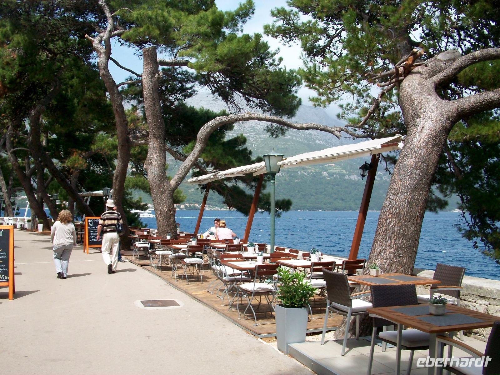 Gegen drei nehmen wir aber die Fahrt wieder auf um nunmehr, immer entlang der dalmatinischen Küste, die atemberaubenden Eindrücke der zahlreichen Buchten und Badestrände zu genießen. Im Hintergrund begleiten uns die grünen Inseln der kroatischen Adria. Dann gibt es doch noch einige Verzögerungen und etwas später als geplant aber dennoch rechtzeitig zum Abendessen, erreichen wir unser Hotel in Dubrovnik.