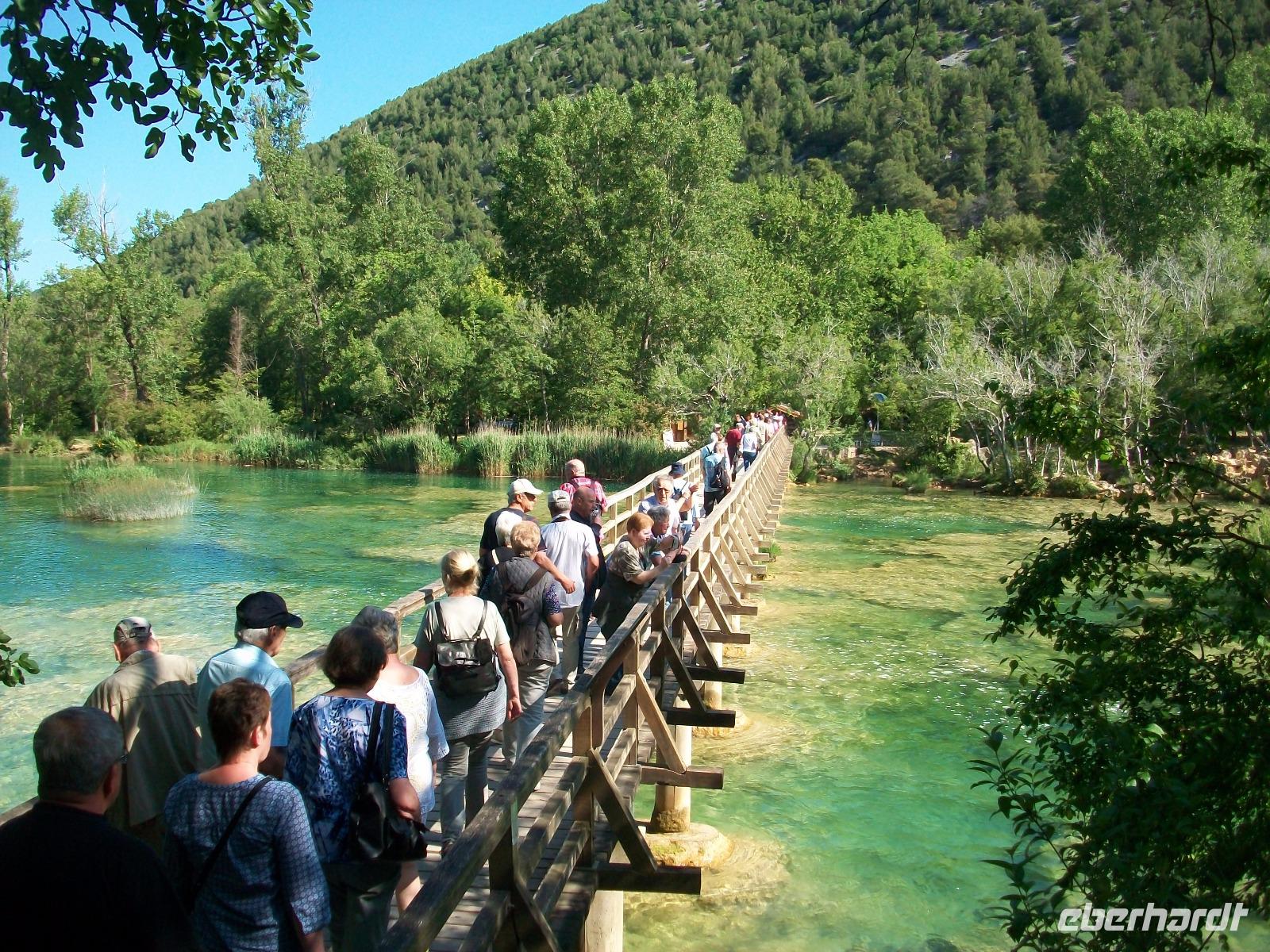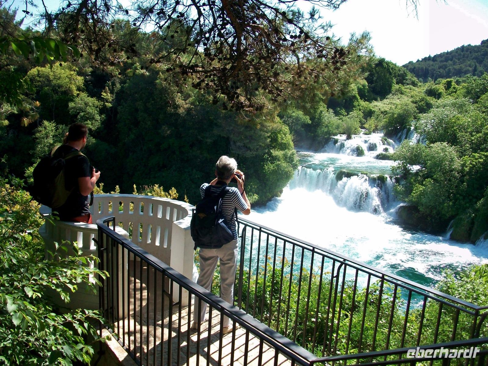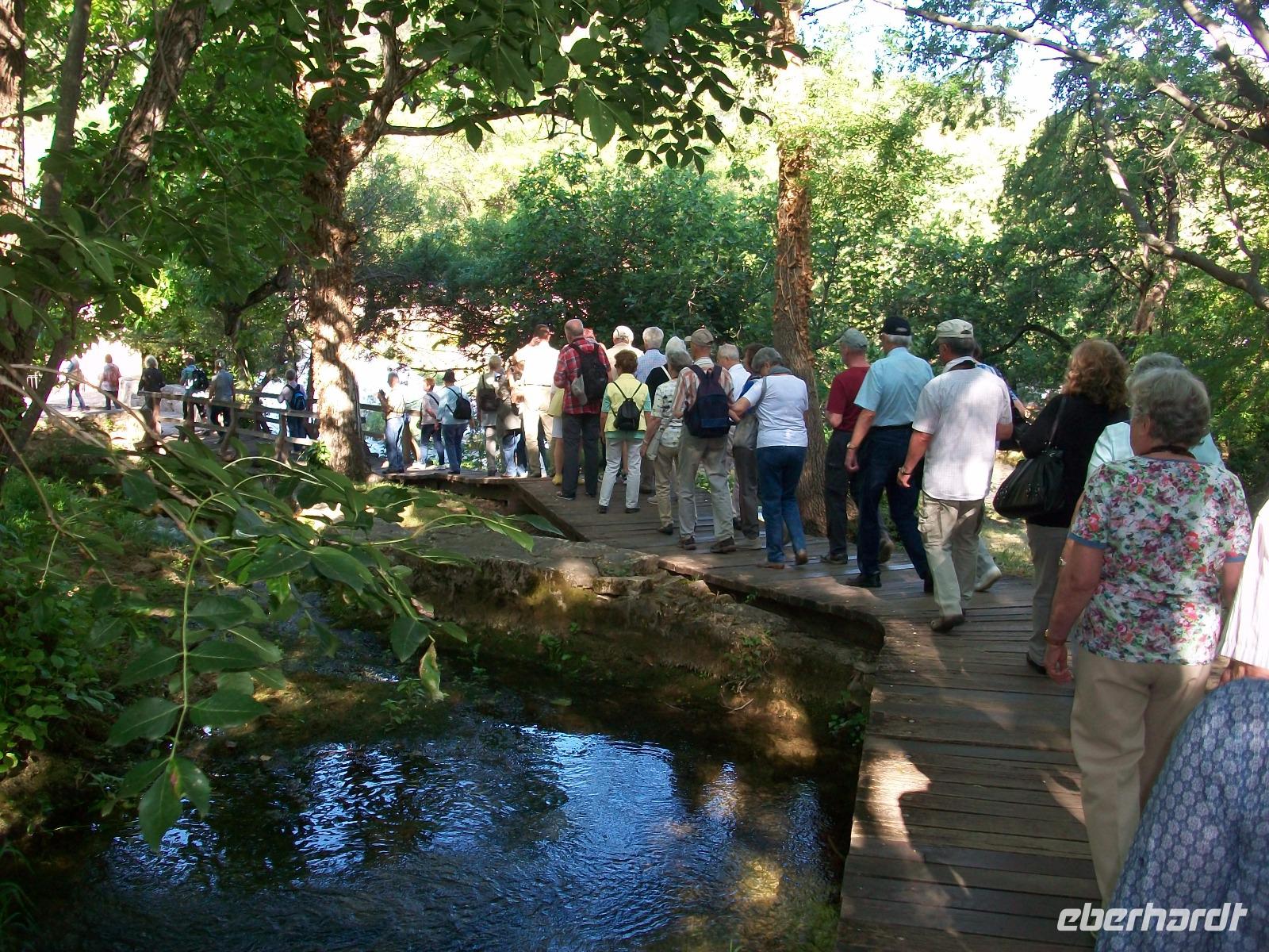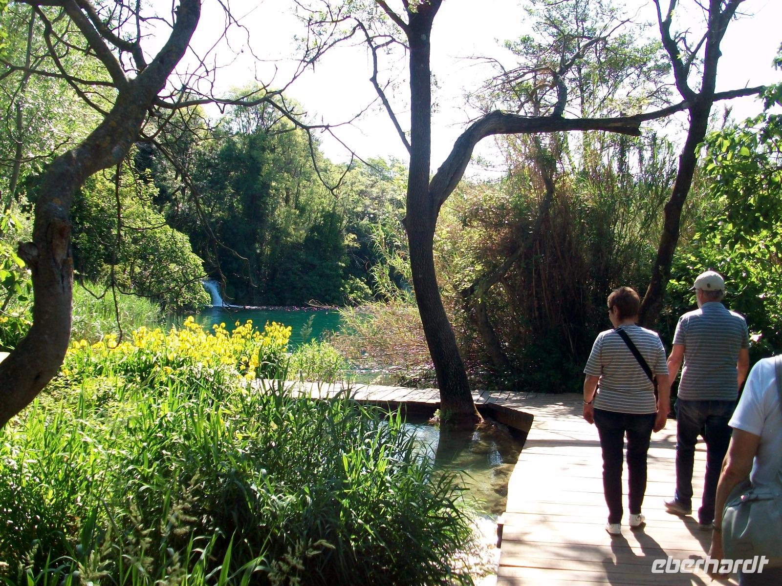 14.5.2017. Die Sonne steht am wolkenlosen, blauen Himmel als wir kurz nach acht auf dem Weg sind ein weiteres Naturwunder Kroatiens zu besuchen. Der Karstfluss Krka kommt aus dem Landesinneren und bildet unweit von Šibenik mehrere grandiose Wasserfälle. Wir wollen an diesem ruhigen Vormittag den beeindruckendsten dieses Nationalparks besuchen: den Skradinski Buk. Ein wunderschönes Panorama begleitet uns als wir abwärts fahren; der Fluss bildet östlich einen großen See und unten angelangt, beginnt die Wanderung um den Wasserfall. Über Wege und Knüppeldämme umrunden wir das Naturspektakel; um uns rauscht es allerorten und wir selbst werden Teil der natürlichen Macht des Wassers. Mal von oben, mal zwischendrin, das Auge kann sich gar nicht satt sehen an diesen Wundern und als wir dann wieder mit dem Bus unterwegs sind, hallen diese Impressionen noch lange nach.