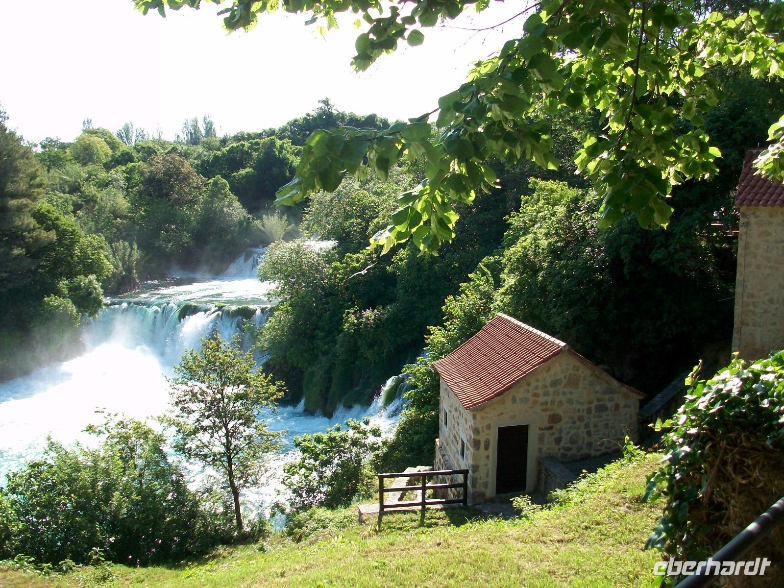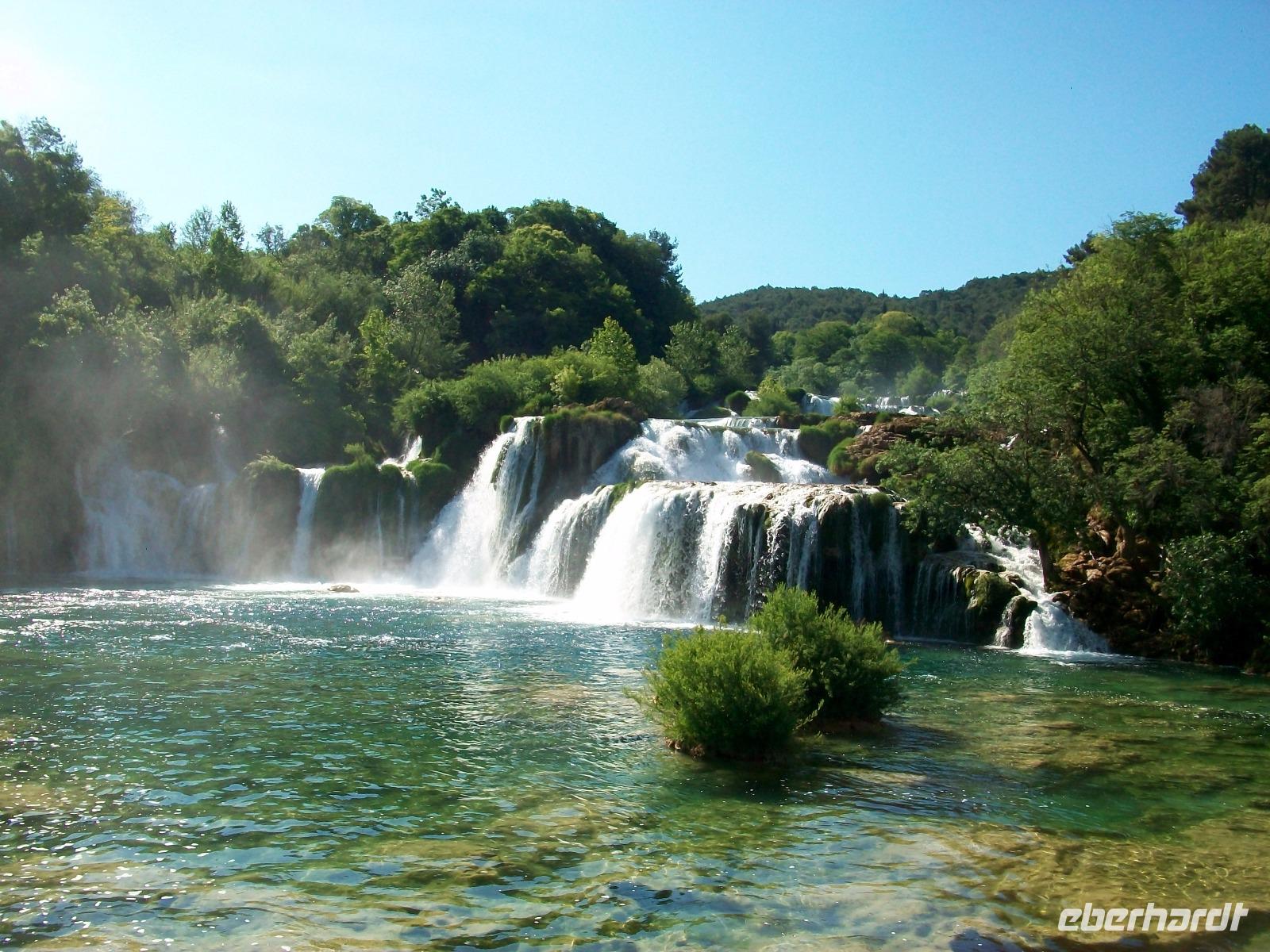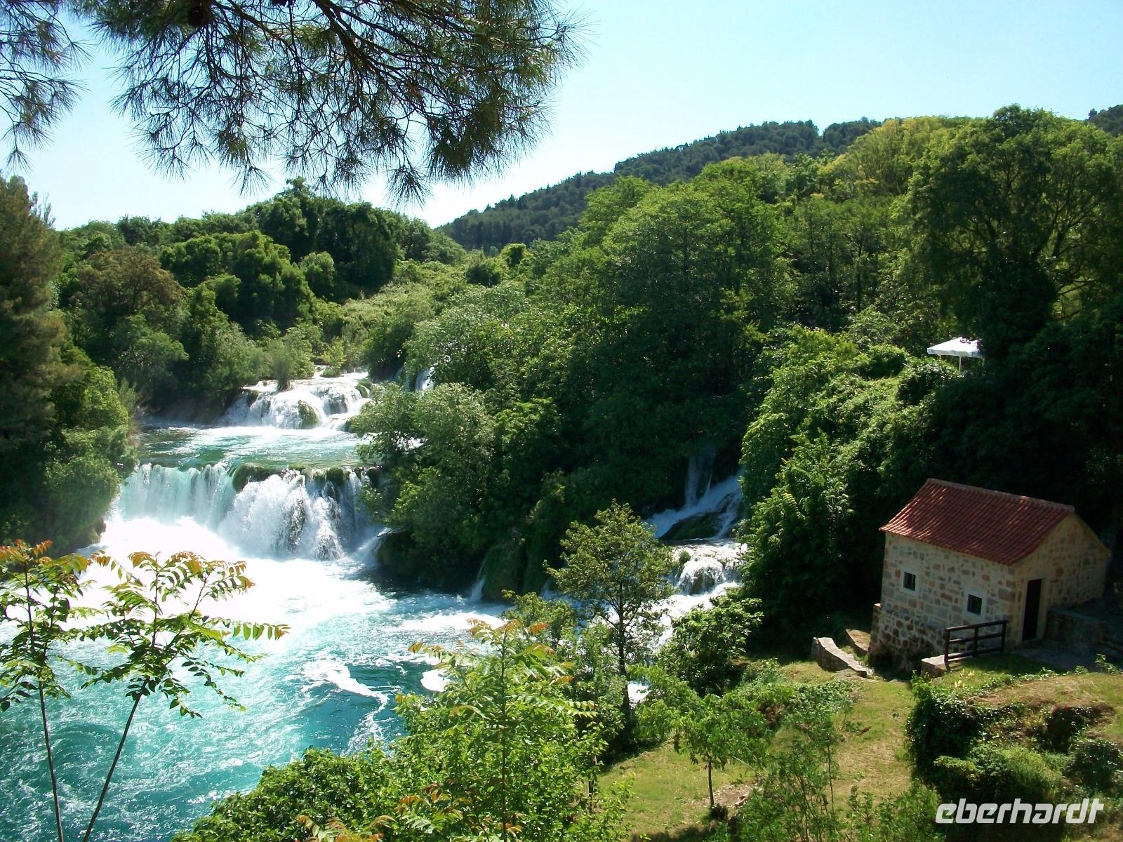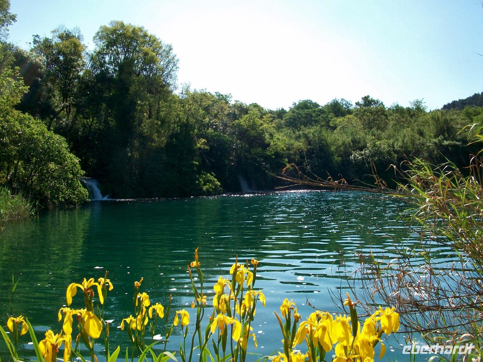 14.5.2017. Die Sonne steht am wolkenlosen, blauen Himmel als wir kurz nach acht auf dem Weg sind ein weiteres Naturwunder Kroatiens zu besuchen. Der Karstfluss Krka kommt aus dem Landesinneren und bildet unweit von Šibenik mehrere grandiose Wasserfälle. Wir wollen an diesem ruhigen Vormittag den beeindruckendsten dieses Nationalparks besuchen: den Skradinski Buk. Ein wunderschönes Panorama begleitet uns als wir abwärts fahren; der Fluss bildet östlich einen großen See und unten angelangt, beginnt die Wanderung um den Wasserfall. Über Wege und Knüppeldämme umrunden wir das Naturspektakel; um uns rauscht es allerorten und wir selbst werden Teil der natürlichen Macht des Wassers. Mal von oben, mal zwischendrin, das Auge kann sich gar nicht satt sehen an diesen Wundern und als wir dann wieder mit dem Bus unterwegs sind, hallen diese Impressionen noch lange nach.