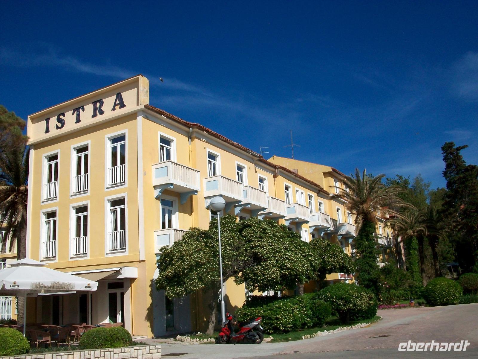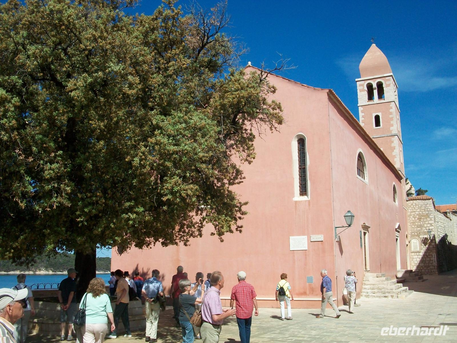 Nur wenige Schritte vom Hotel entfernt und wir gelangen durch den schönen Park hinunter zum Hafenbecken. Der Weg führt uns dann in die Altstadt um hier erneut das Rad der Zeit um Jahrhunderte zurückzudrehen. In der unteren Gasse, die von vielen schmalen Seitengassen gekreuzt wird, gelangen wir zum hinteren Teil der Stadt. Zahlreiche Klöster und kleine Kirchen können wir dabei bewundern; auf der oberen Gasse wird der Blick frei auf das Wasser der Eufemijabucht und die Inseln im Hintergrund. Gemütlich verläuft der Spaziergang und Bobana hat so manch interessante Geschichte zu erzählen. Dann geht es mit dem Bus auf Inselrundfahrt; malerische Orte wechseln sich mit Stränden und Buchten ab, sie machen Lust auf Badeurlaub. Allerdings ist das Wasser der Adria zu diesem Zeitpunkt noch recht kühl, währenddessen die Lufttemperatur an diesem sonnigen Tag doch schon sommerliches Potential hat.