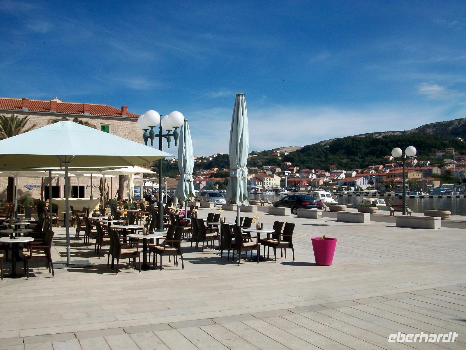 15.5.2017. Ein weiterer Tag voller Entdeckungen, begleitet von viel Sonne, steht uns bevor. Im Velebitgebirge haben sich Wolken festgehangen die es aber nicht bis zur Insel schaffen. Gegen neun werden wir von Bobana begrüßt, sie wird uns zunächst die Altstadt von Rab zeigen.