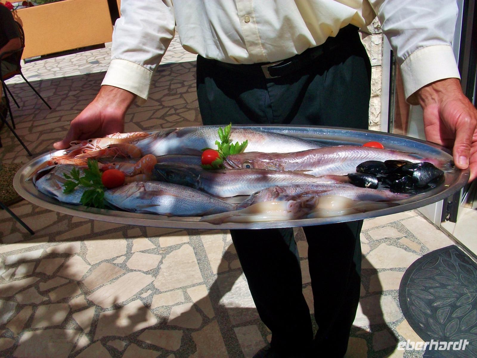 Im Restaurant DIONIS werden wir zum Mittagessen erwartet; Josip der Wirt stellt uns seine Speisen vor, ein Teller mit frischen Fischen aus der Adria macht Appetit. Auf der Terrasse des schönen Hauses genießen wir bei einem guten Glas Wein ein kulinarisches Mahl welches keine Wünsche offen lässt, begleitet von Josips sympathischen Humor.
