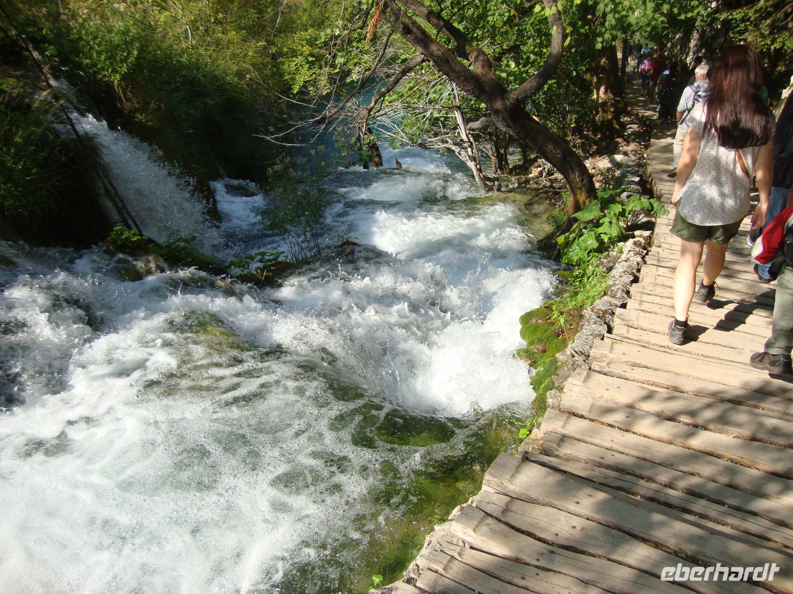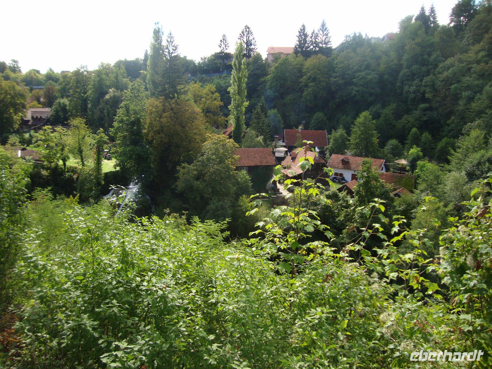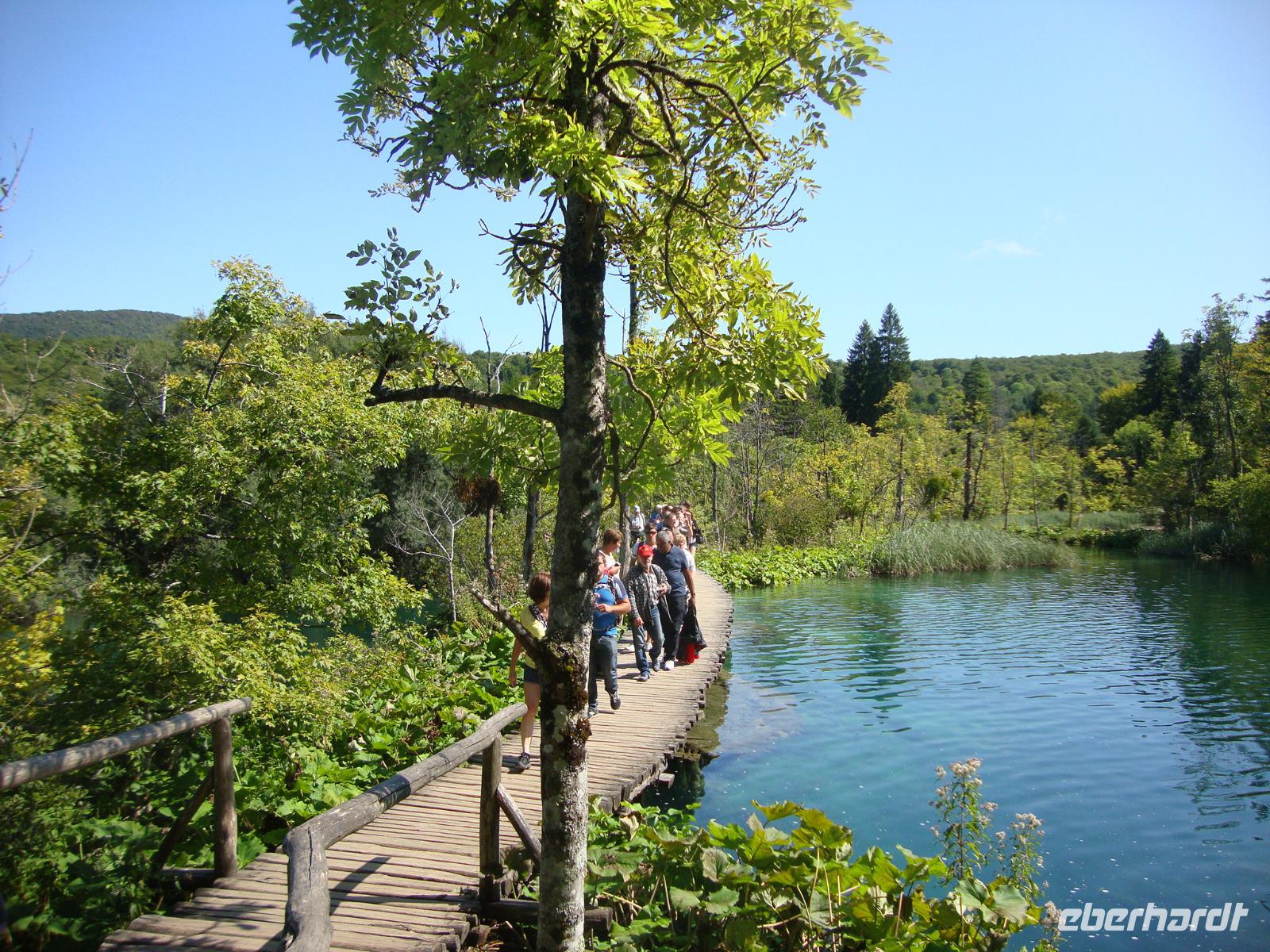 Da wir im "grünen Gürtel" um Zagreb für diese Nacht wohnten, gelangten wir ganz schnell auf die Autobahn A1 Richtung Süden, bis Karlovac. In Rastoke, dort w1.Tag, Montag, 11.09.17 Reise in die Steiermark 845 kmo der Fluß Korana den Nationalpark verlassen hat, konnten wir das Mühlendorf nur von oben kurz betrachten. Für einen längeren Aufenthalt fehlte uns doch die Zeit, denn wir wurden im Hotel "Jezero" von unserem Parkbegleiter, Stefan, erwartet. Bei schönstem Sonnenschein, also Superwetter, begannen wir unseren Rundgang am Eingang 2. Türkisfarbene Seen, ungezählte große und kleine Wasserfälle, das Grün von Kräutern, Büschen und Bäumen, das sich mit dem Wasser vermischt, Kalkfelsen und bemooste Steine, sprudelnde Gischt und ruhige Wasserfächen - der Nationalpark Plitwitzer Seen, ältester in Kroatien, wurde zu Recht schon 1979 in die Liste der Unesco-Welterbe-Standorte aufgenommen. Die konkurrenzlose Korana (sie mündet bei Karlovac in die Kupa) löst besonders viel Kalk aus dem Untergrund. Dadurch entstehen Dämme über die sich die zahlreichen Wasserfälle, in die insgesamt 16 Seen ergießen. Insgesamt fünf Stunden waren wir mit Stefan zu Fuß, auf dem Schiff und mit der Bahn unterwegs. Viele Treppen und Hänge waren zu überwinden, aber alle Gäste hielten tapfer durch. Nach einer stärkenden Rast liefen wir bis zum unteren, größten Wasserfall und machten dort unser erstes Gruppenfoto. Wir sahen die Bärenhöhle und den Silbersee. Als wir uns ganz herzlich am Hotel "Jezero" von Stefan verabschiedeten, waren wir erschöpft, aber sehr beeindruckt von der Schönheit der Natur, welche wir bei Sonnenschein pur erlebten. Stefan hat das alles großartig erklärt und wir bedankten uns bei ihm ganz herzlich.Nach einem guten Abendessenmußten wir uns alle ausruhen. Zuvor hatte unser Chauffeur Frank, die Koffer alle vor unseren Zimmern abgestellt, so das wir diese ganz schnell beziehen konnten.