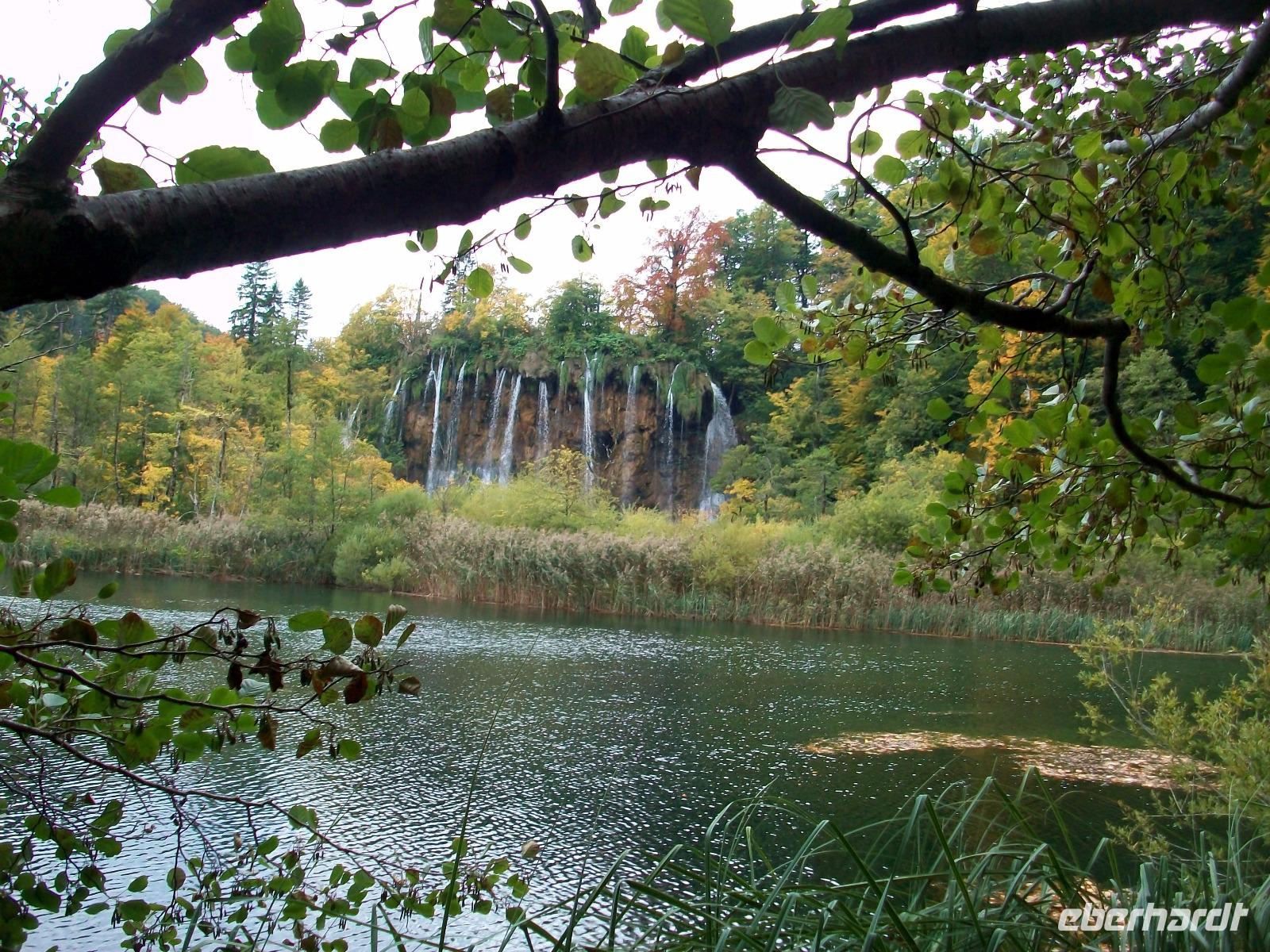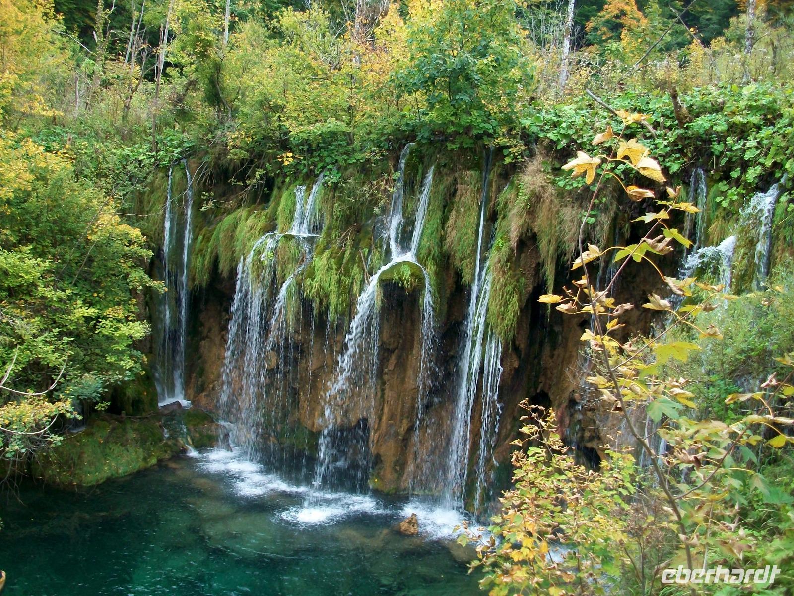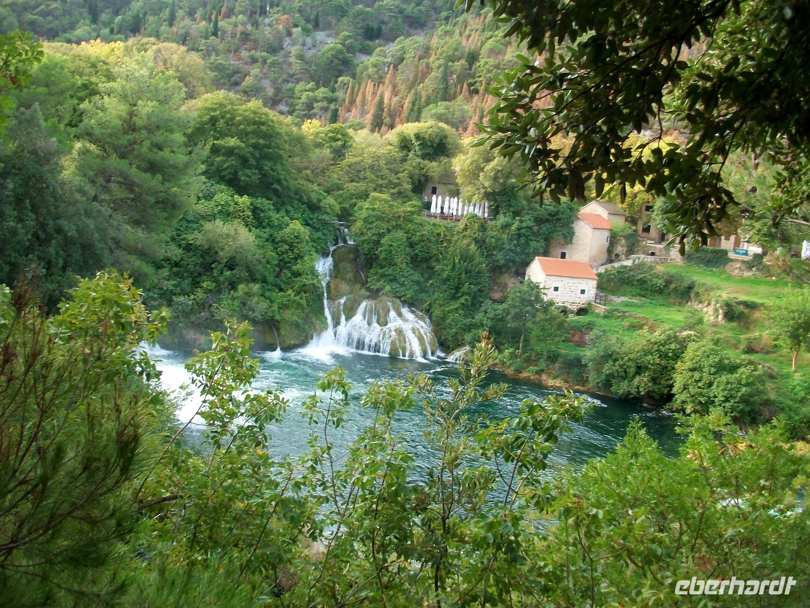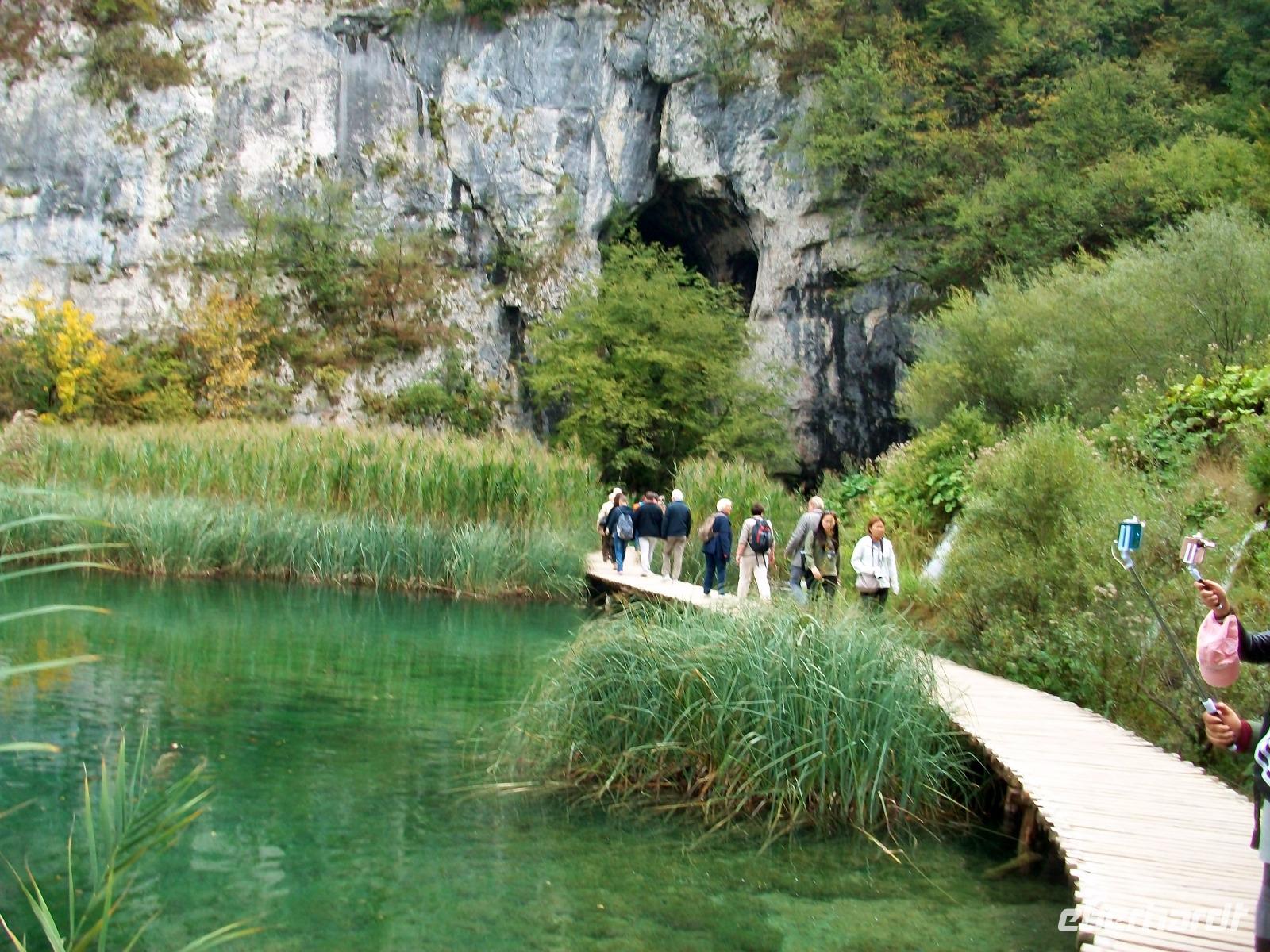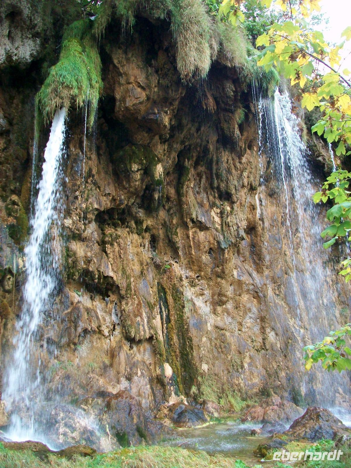Nach einem kleinen Mittagsimbiss geht es los und mit Nikolina haben wir eine vorzügliche Parkführerin die uns nun durch dieses Karstphänomen begleiten wird. Von hoch oben schauen wir auf den großen Wasserfall dem unser erster Besuch gilt. Unten angelangt staunen wir über seine Wucht, fast 80 Meter sendet er das rauschende Nass zu uns herab.
