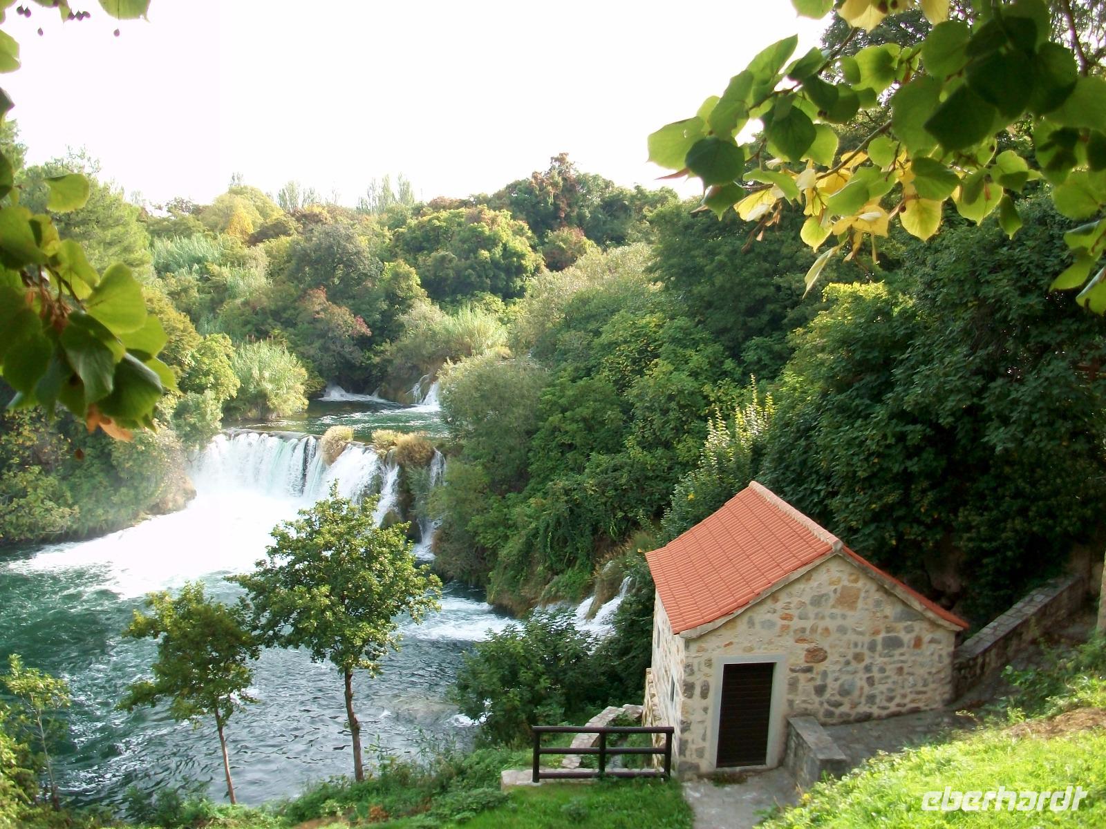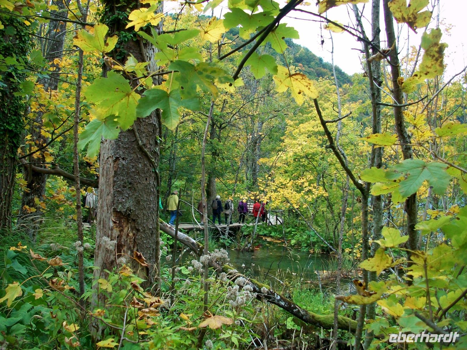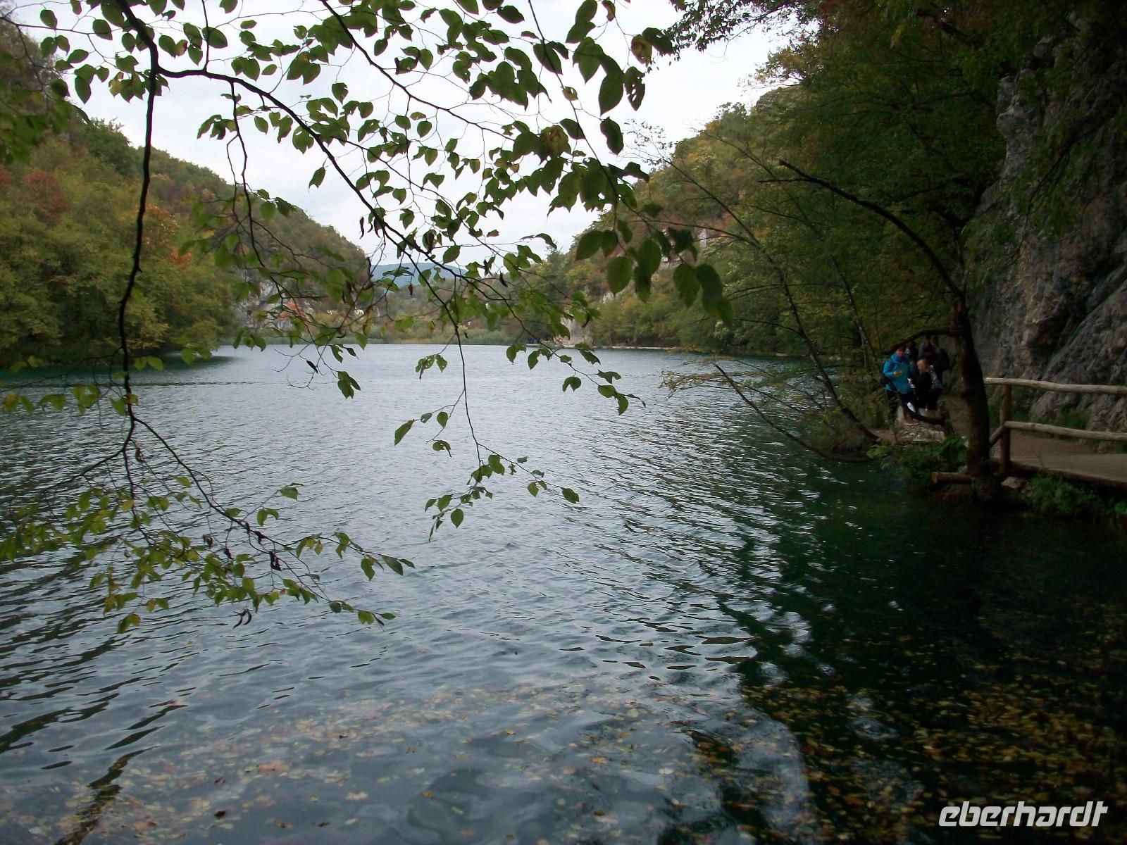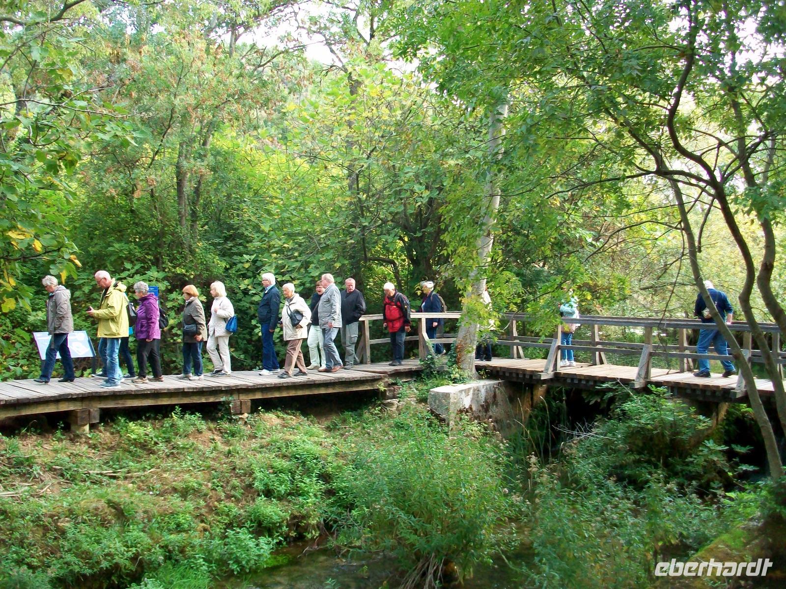 Nach einem kleinen Mittagsimbiss geht es los und mit Nikolina haben wir eine vorzügliche Parkführerin die uns nun durch dieses Karstphänomen begleiten wird. Von hoch oben schauen wir auf den großen Wasserfall dem unser erster Besuch gilt. Unten angelangt staunen wir über seine Wucht, fast 80 Meter sendet er das rauschende Nass zu uns herab.