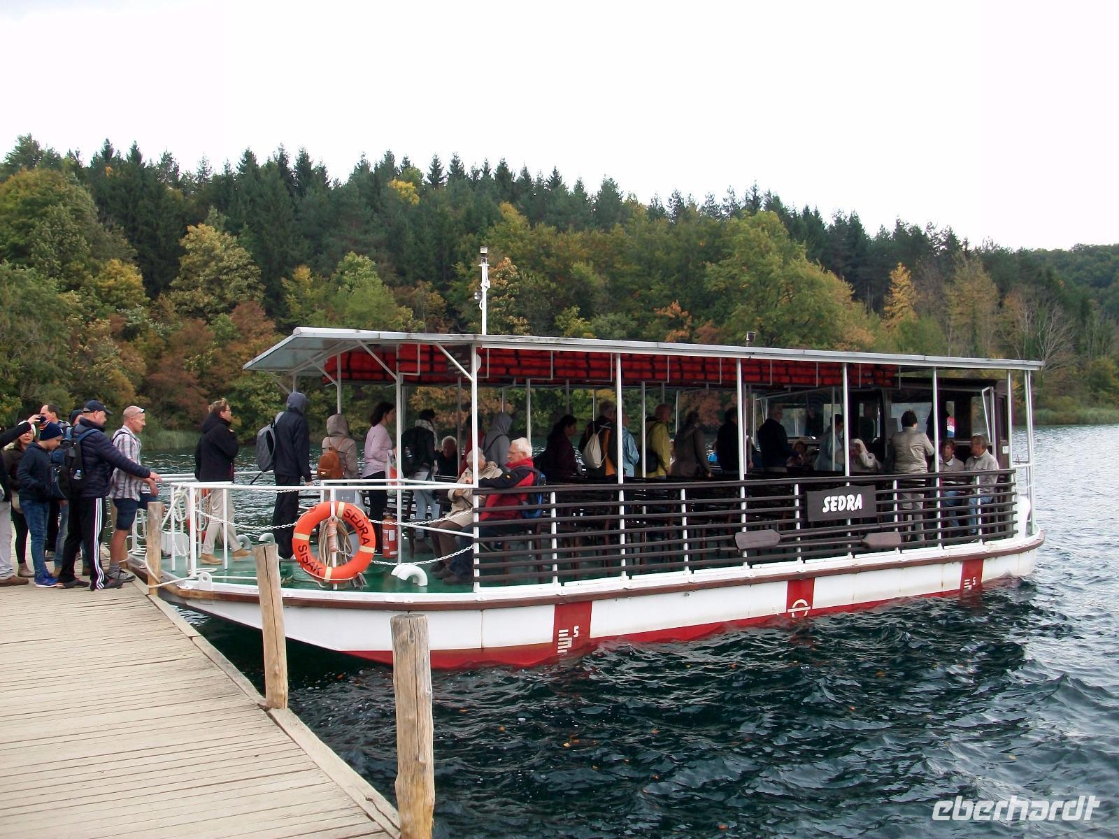 Am Koziak - See angelangt gönnen wir uns eine kurze Pause, dann beginnt eine romantische Schifffahrt über diesen See die auch sehr erholsam ist. Unterdessen hat sich der Himmel bezogen, vorerst bleibt es aber trocken.